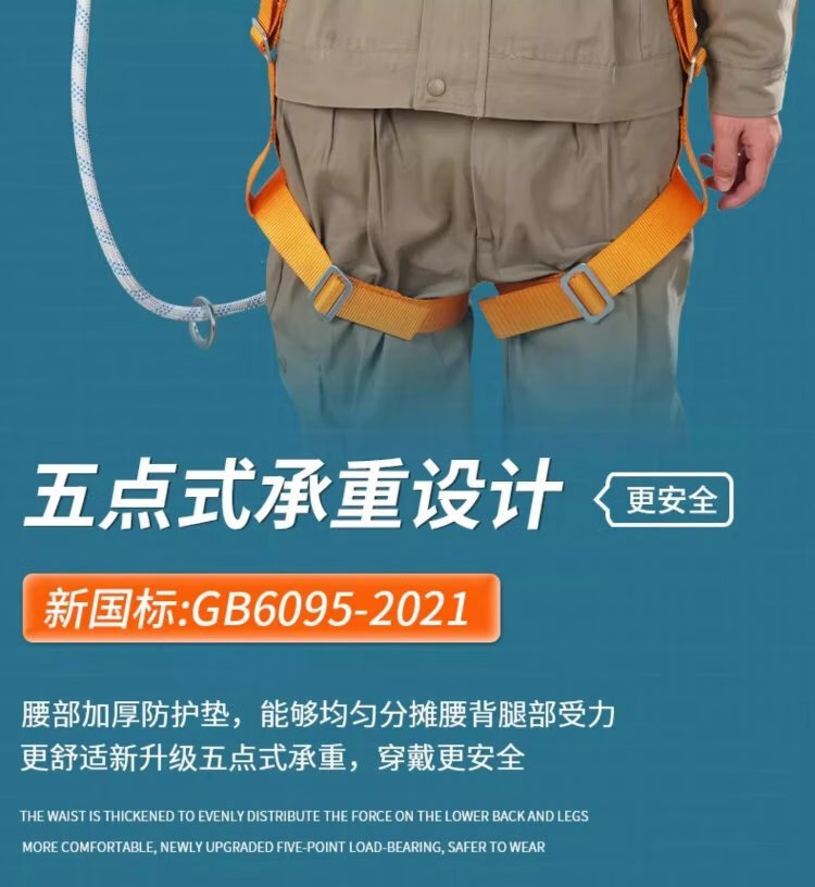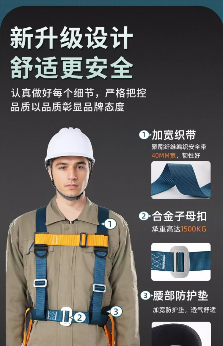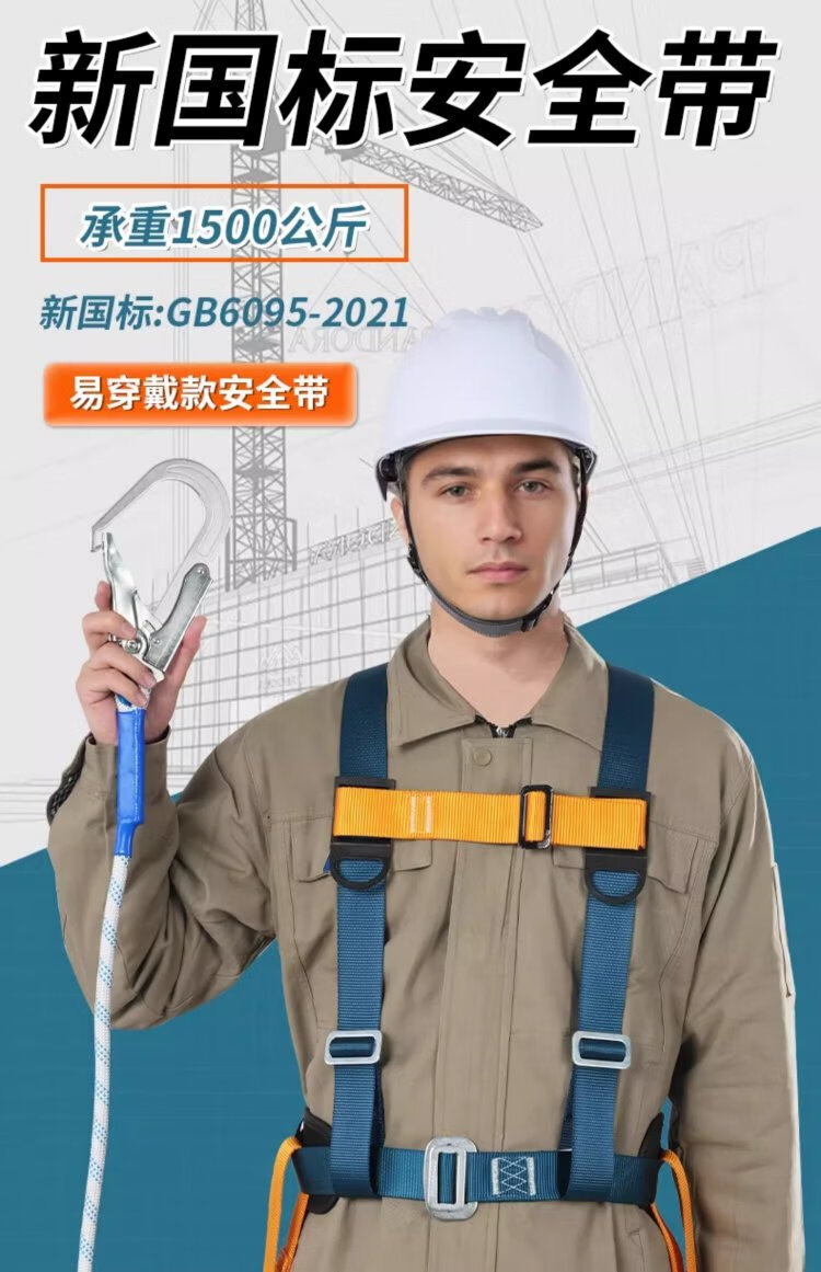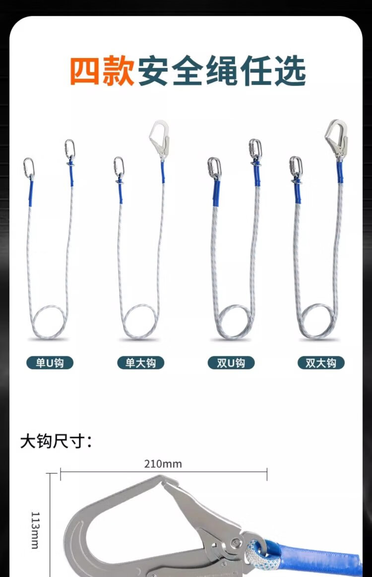 Shoudun five-point safety belt safety belt electrician's belt construction wear-resistant outdoor safety rope new national standard full body waist protection single large hook 2 meters one size