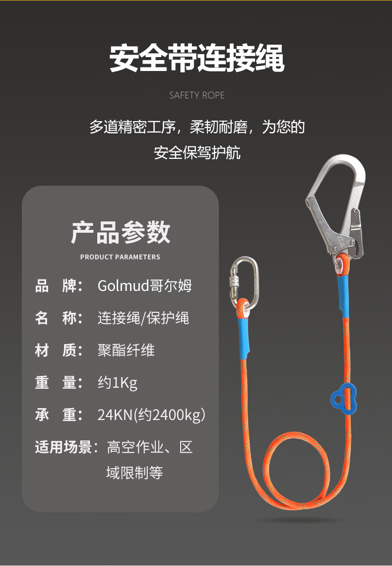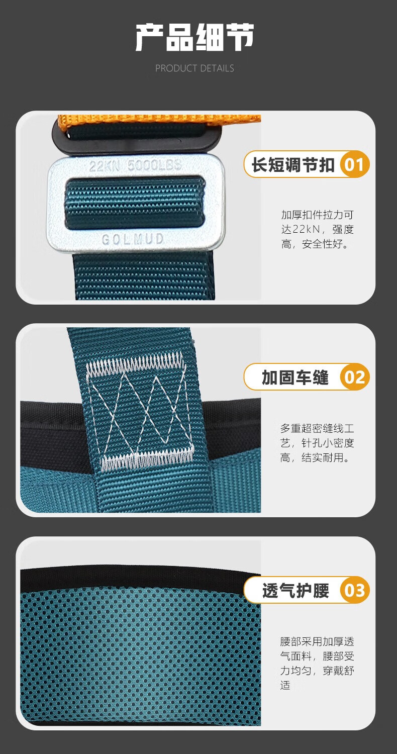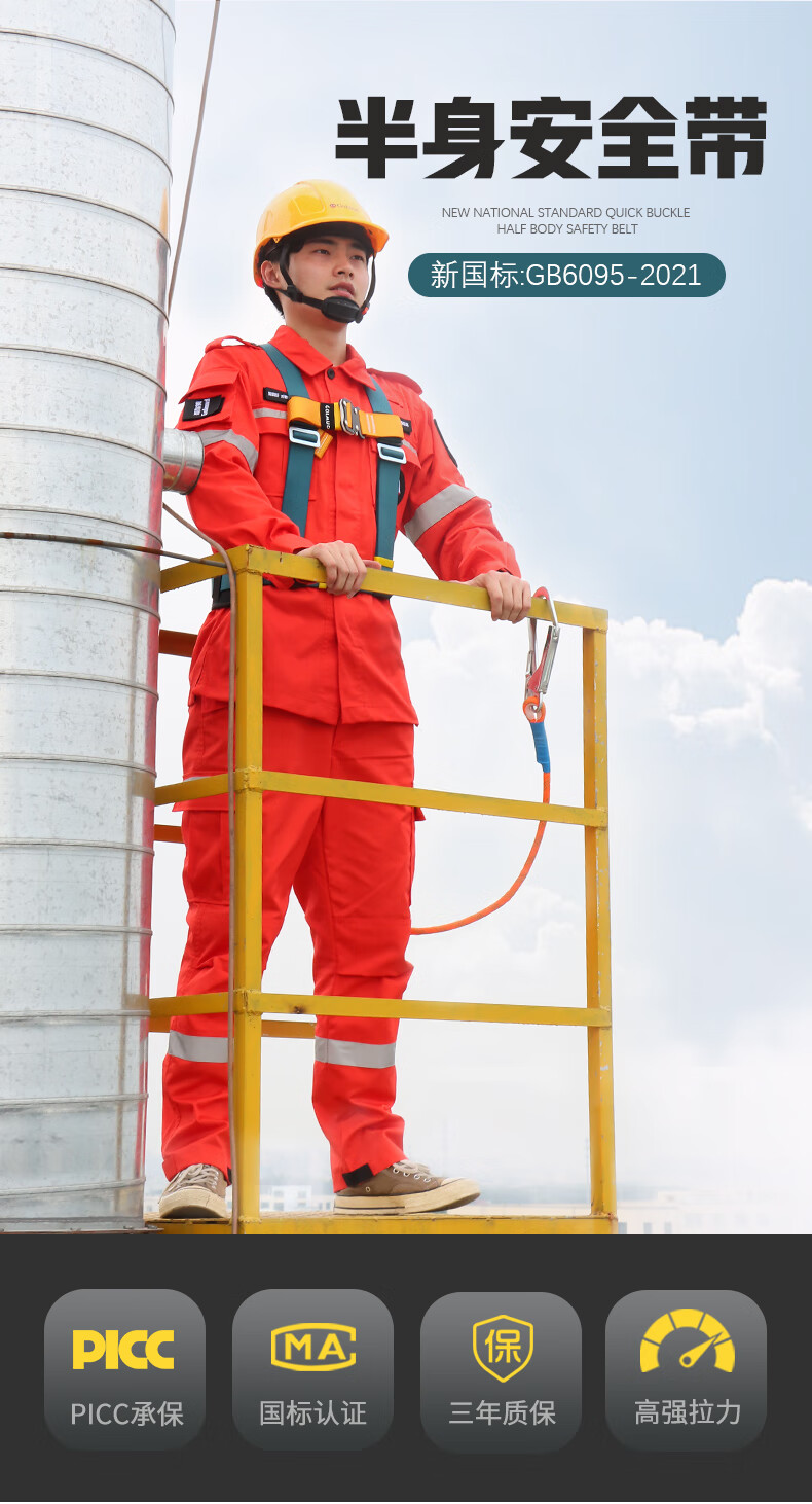 Gorm three-point safety belt, half-body safety belt, new national standard, air-conditioned construction site, high-altitude operation, safety rope set, double buckle quick buckle style, double buckle style GM3722, single small hook 3 meters