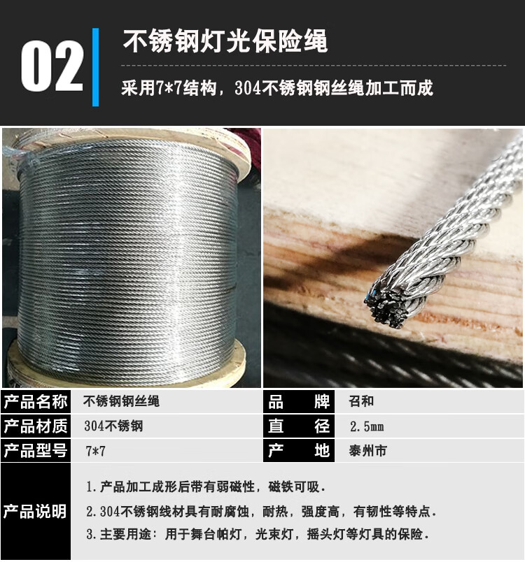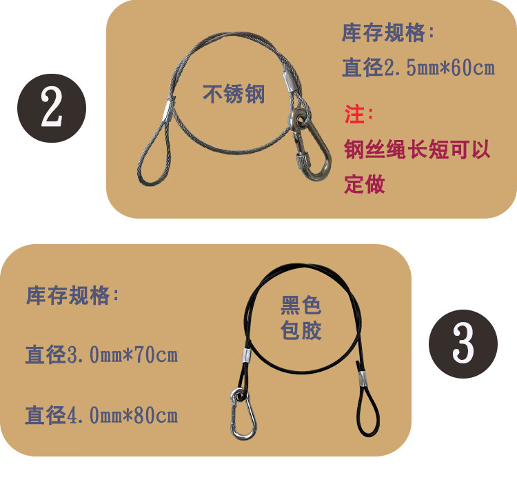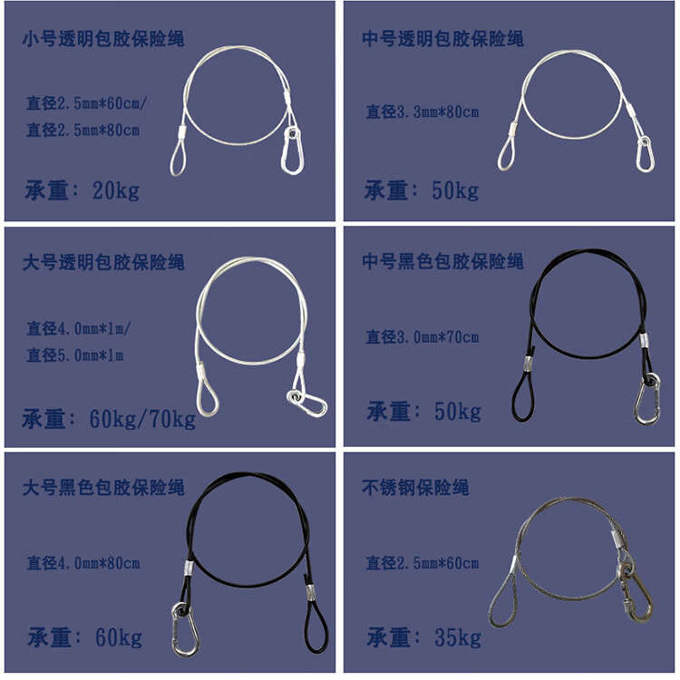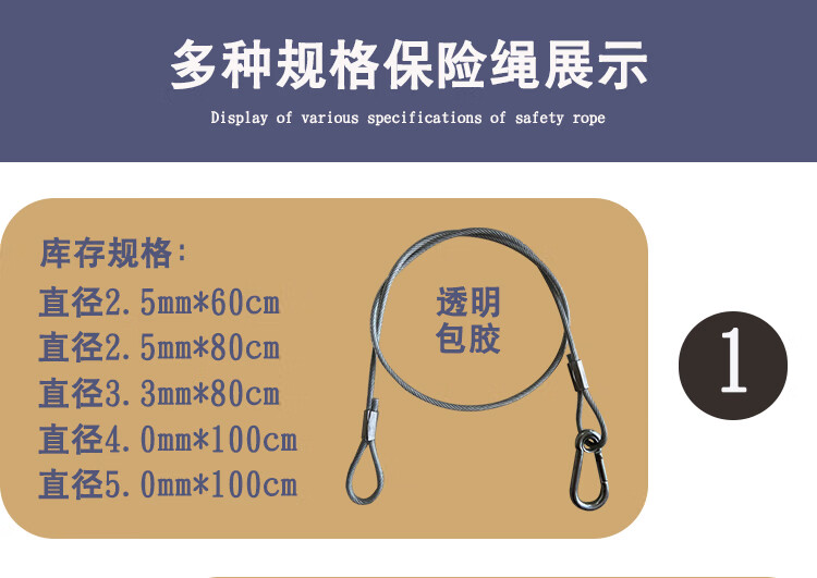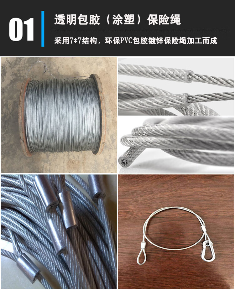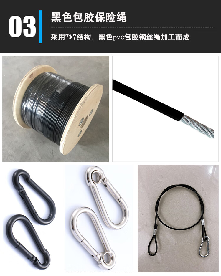 Stage light hook safety rope lighting accessories safety rope rubber-coated stainless steel safety chain steel wire rope black safety rope small transparent rubber-coated 2.5mm*60cm