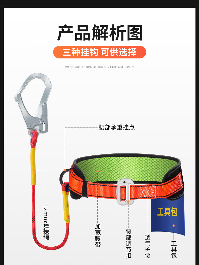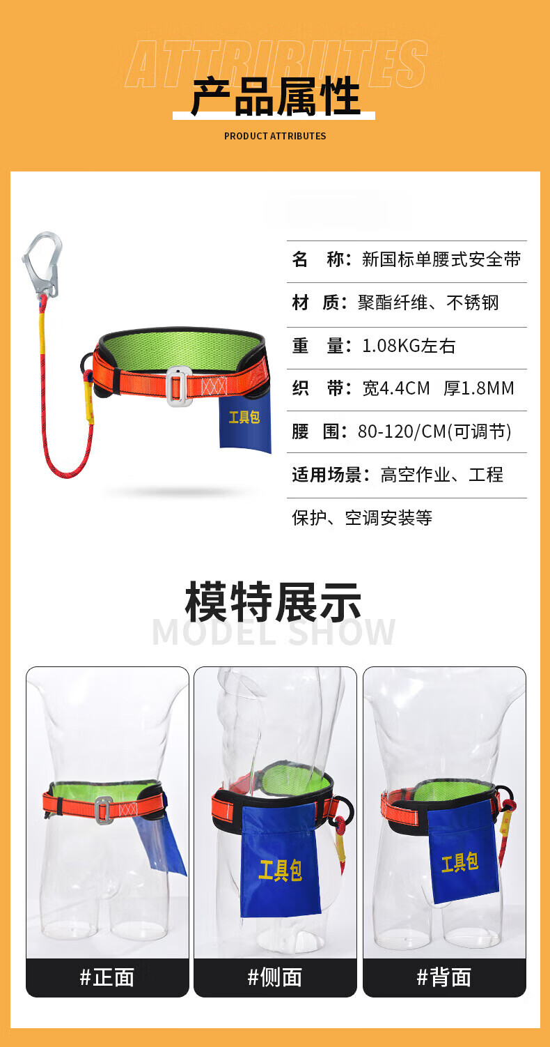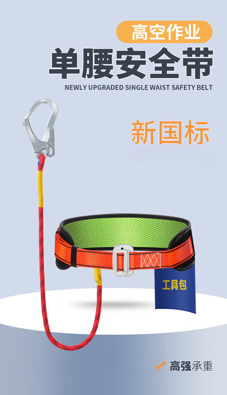 Single-waist safety belt belt for high-altitude work electrician safety rope safety rope anti-fall belt hook set national standard single-waist safety belt 2-meter small hook set