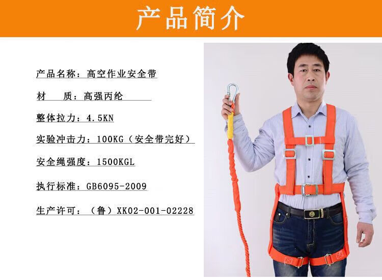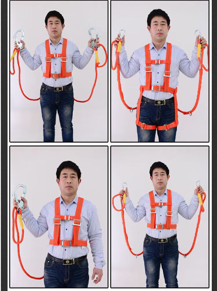 High-altitude working safety belt, outdoor construction safety belt, full body five-point air conditioning installation safety rope, electrician belt, European style, single small hook 3 meters