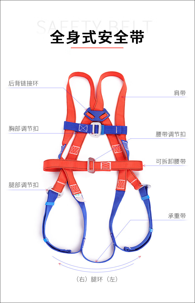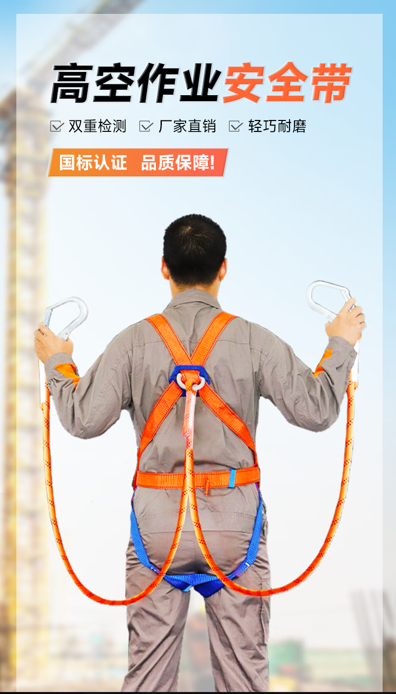 2-meter safety belt, five-point double hook, full-body protection for high-altitude operations, anti-fall safety belt, buffer belt, outdoor construction protection, O-buckle optional, 14mm diameter double rope - 2 meters + big hook + buffer bag