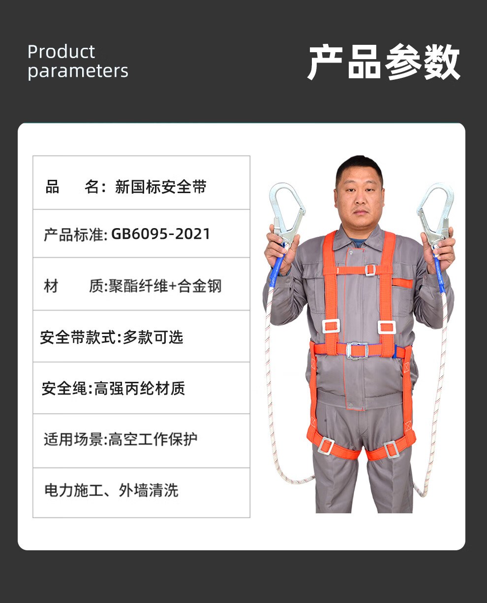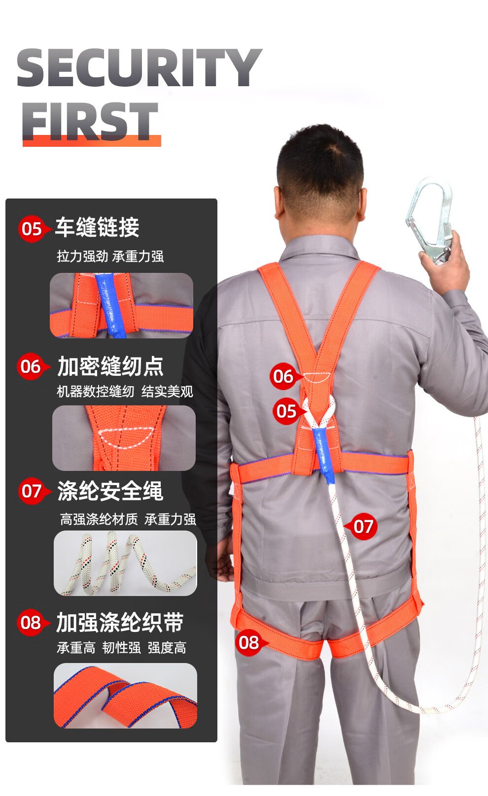 Xinbaolin high-altitude work safety belt, outdoor construction safety belt, safety rope, anti-fall upper body, national standard safety belt, large quantity, please consult customer service, national standard safety belt, five-point single small hook 2 meters