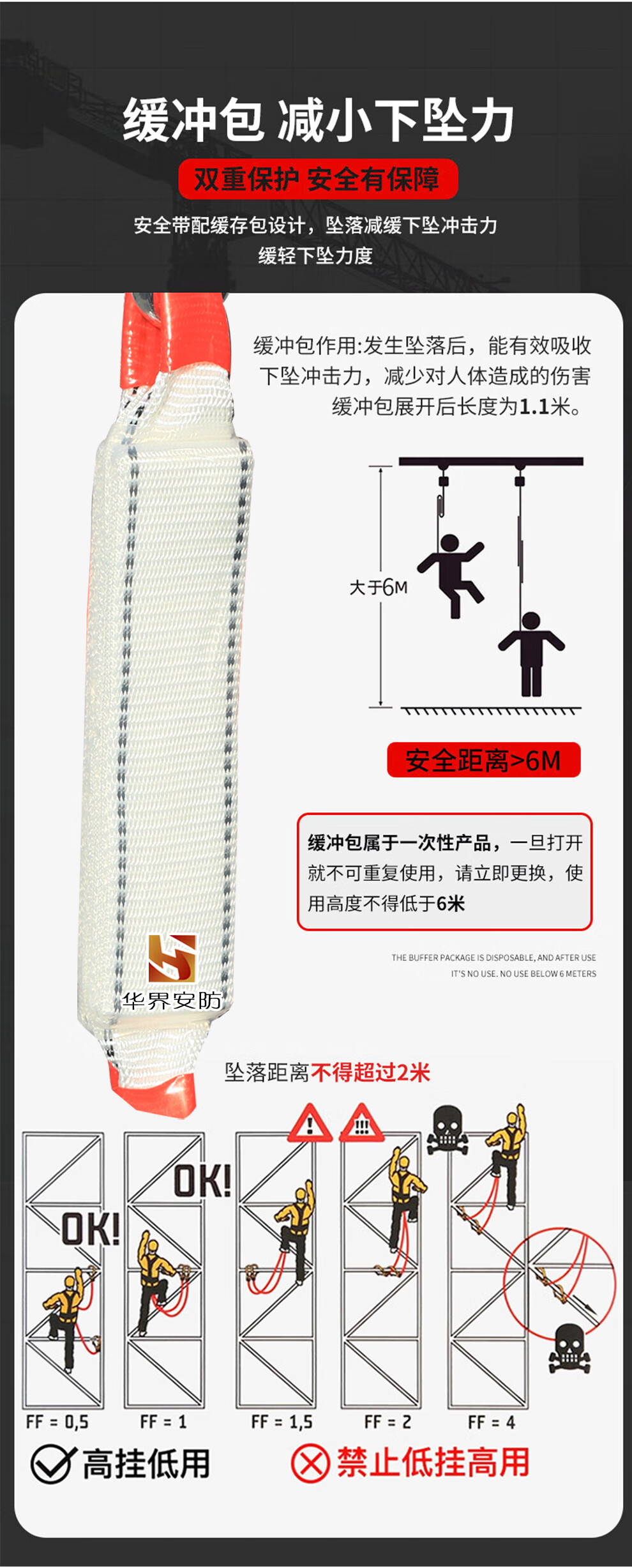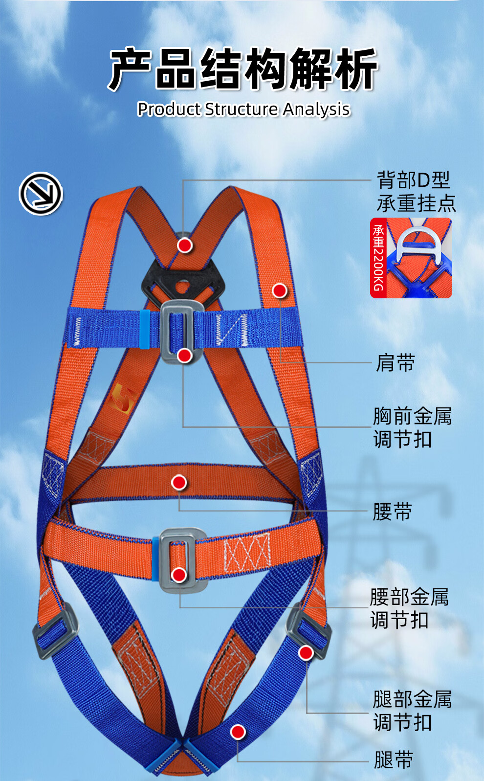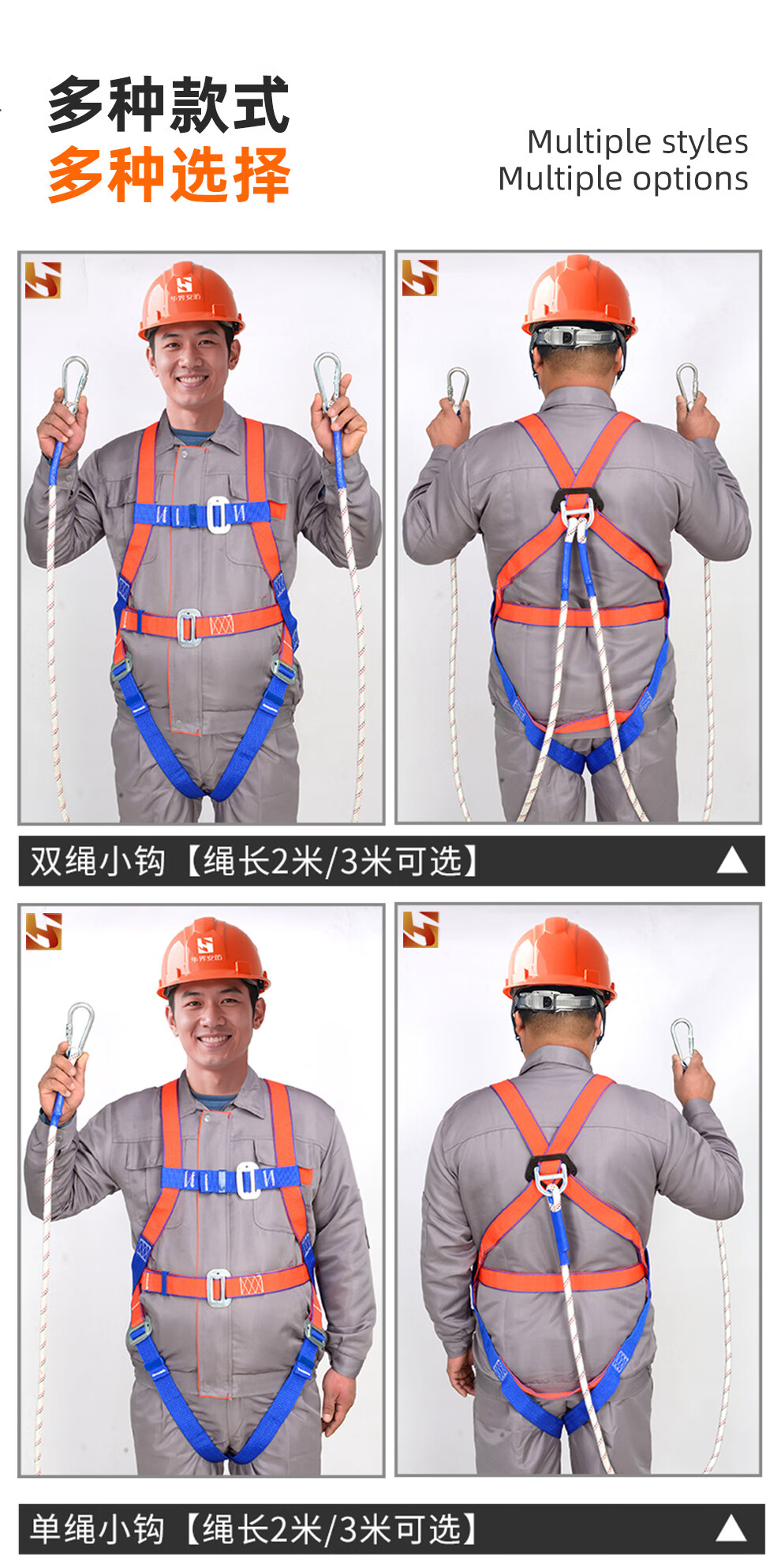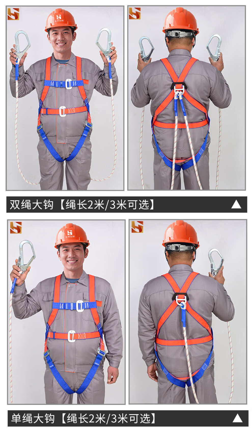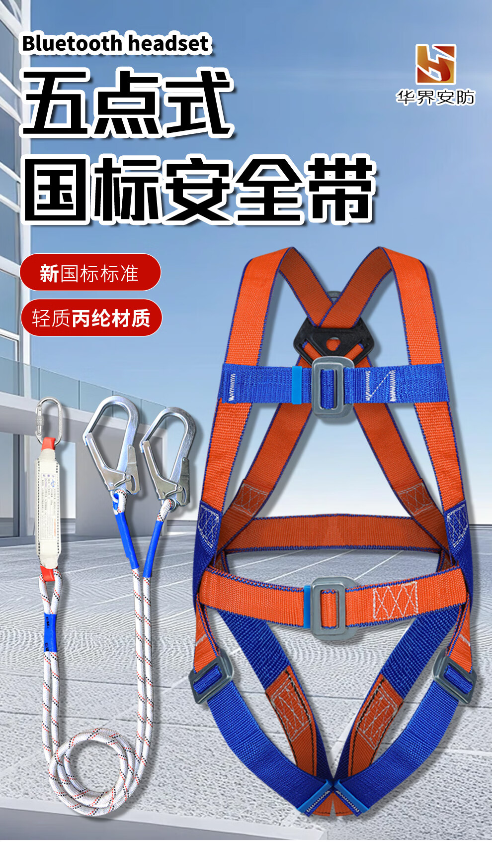 Huajie's new national standard five-point safety belt anti-fall suspension safety rope high-altitude work safety belt fall protection European five-point single small hook 2 meters rope