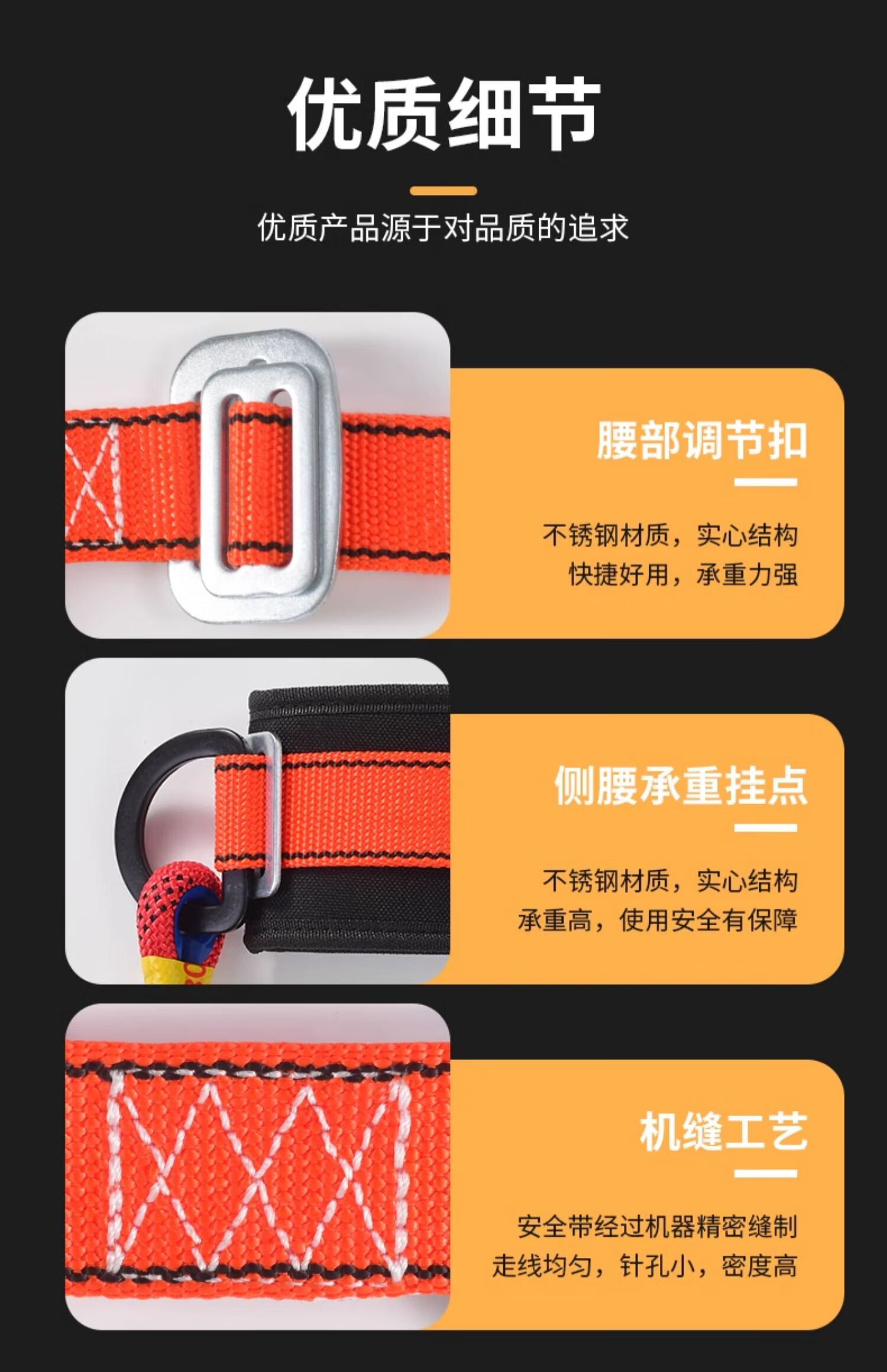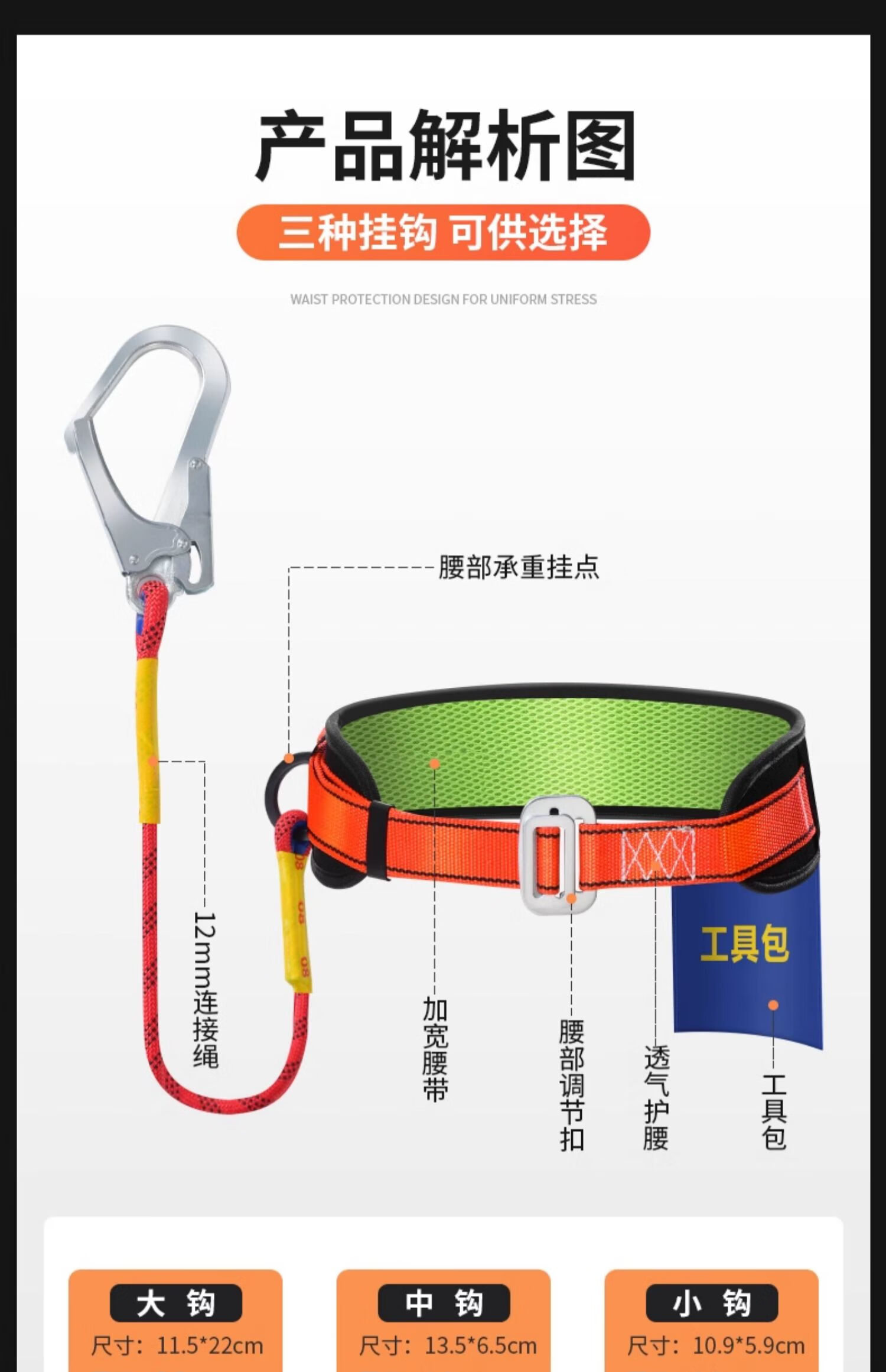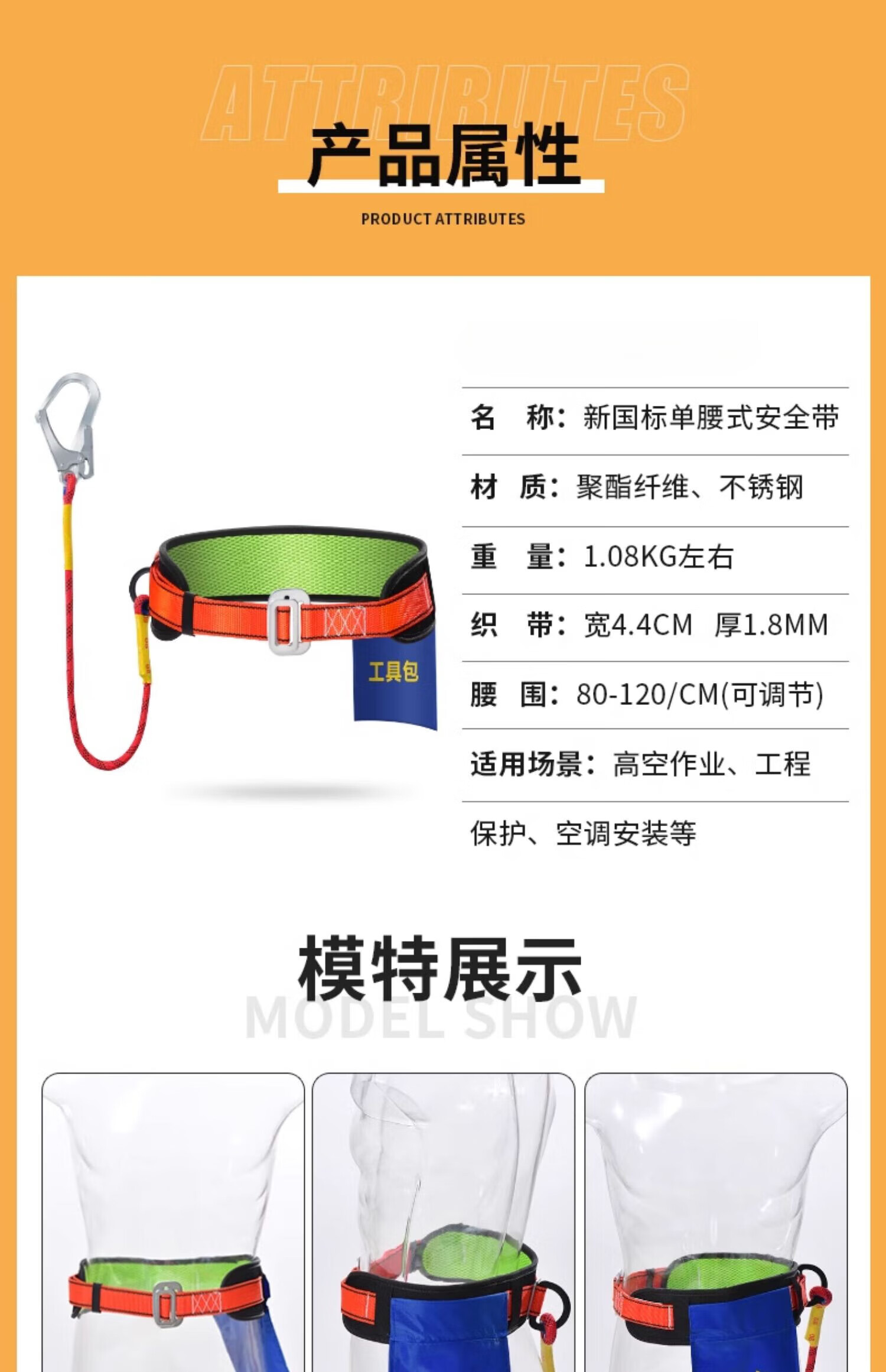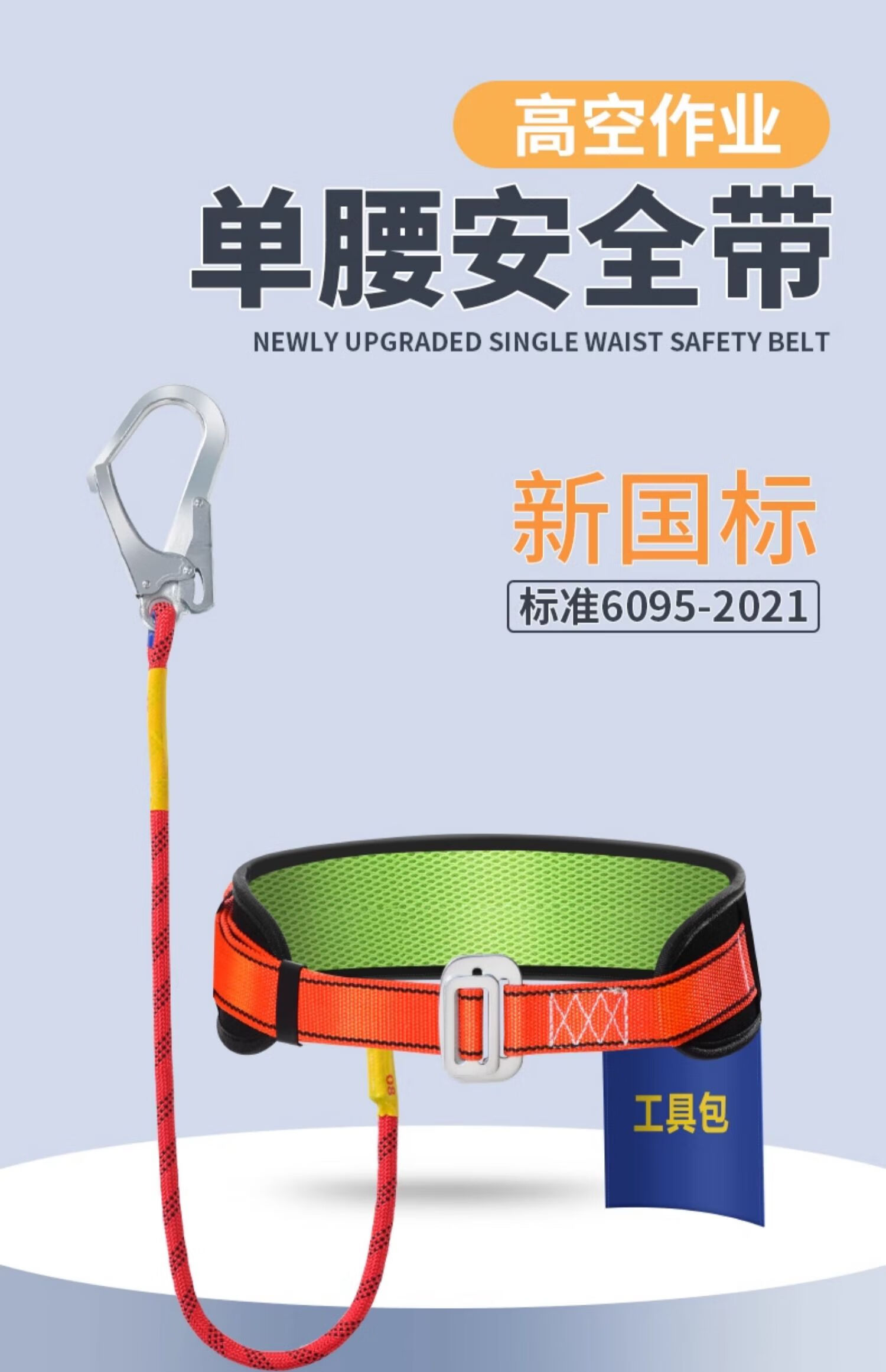 Quick-plug single-waist safety belt, electrician belt for high-altitude work, safety belt, anti-fall construction site construction, outdoor rock climbing, single-waist safety belt, 2-meter large hook set (with tool bag)