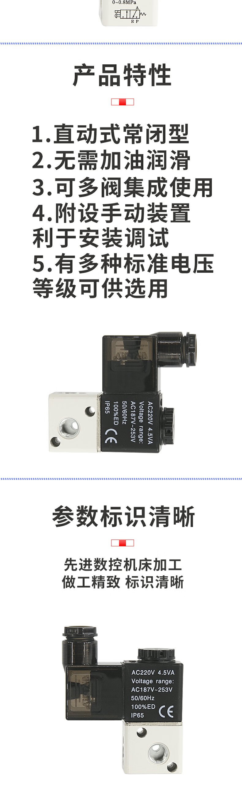 Yadeke solenoid valve two-position three-way solenoid valve 3V1-06B integrated valve 3V106B2F-3F-5F-8F-10F 3V1-06A AC220V