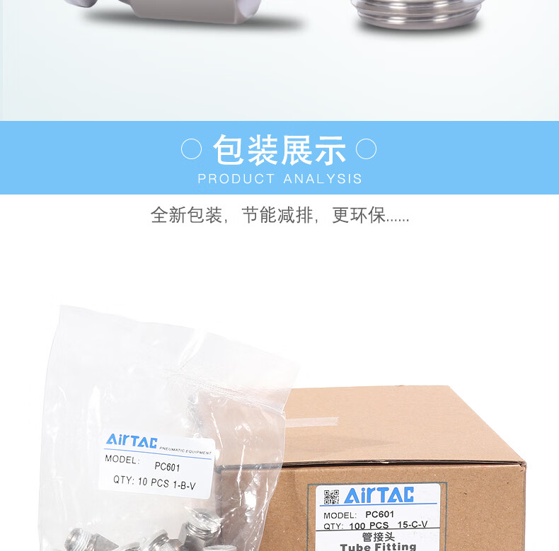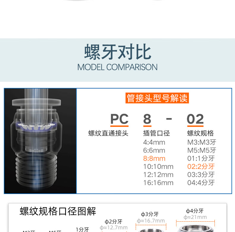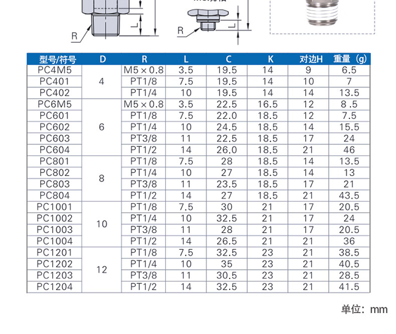 Air pipe quick connector AirTAC PC quick plug thread straight through PC4M5/PC601/PC802/PC1204 series APC802