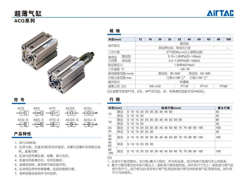 AirTac/Airtac ACQ series ultra-thin cylinder ACQ12X10/ACQ20X15/ACQ40X10/ACQ5 ACQ16X25S