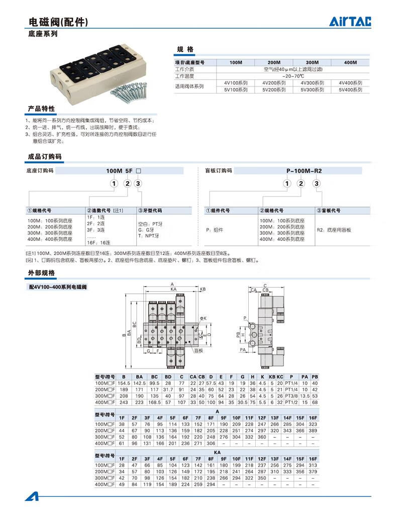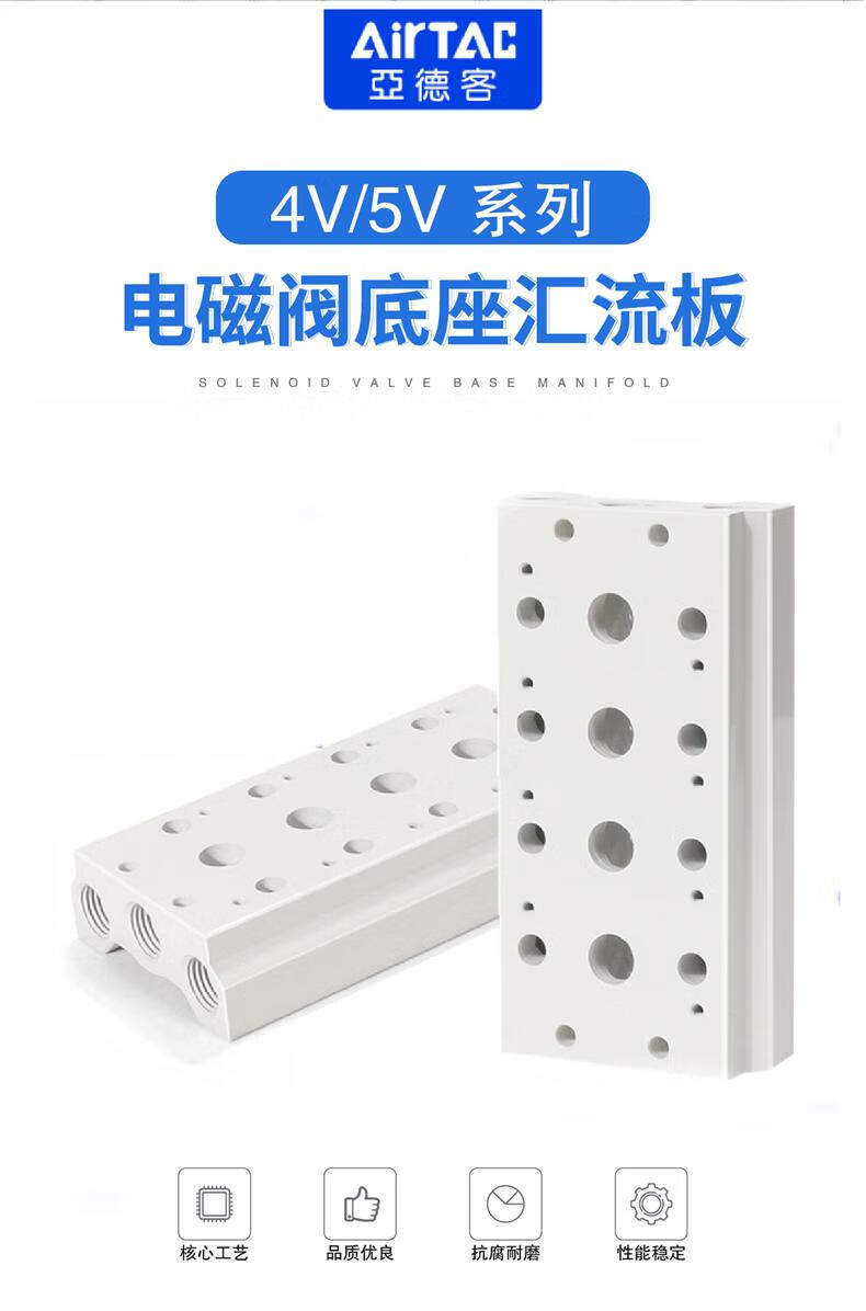 AirTac 4V/5V series solenoid valve base manifold 100M200M300M400 4V200M-2F