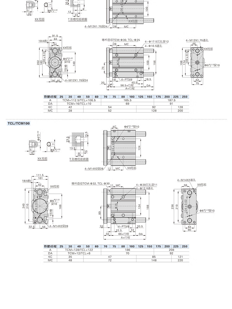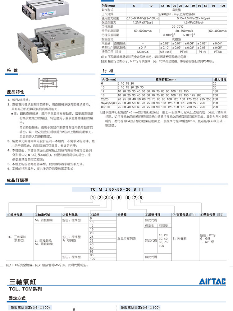 Airtac three-axis three-rod cylinder with guide rod TCM20/25/32/40*10X20X25X30X40X50X75S TCM20X40S