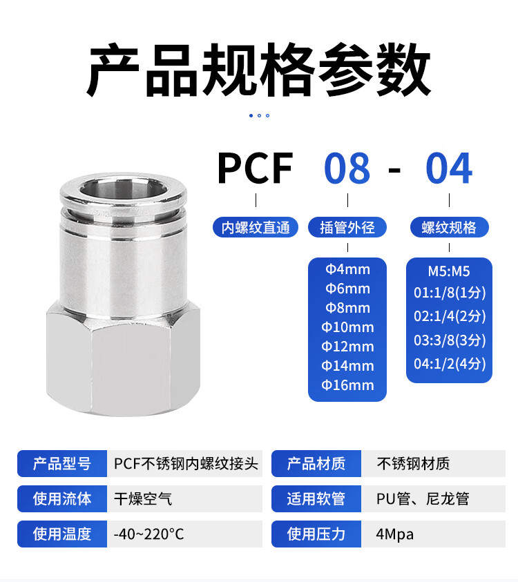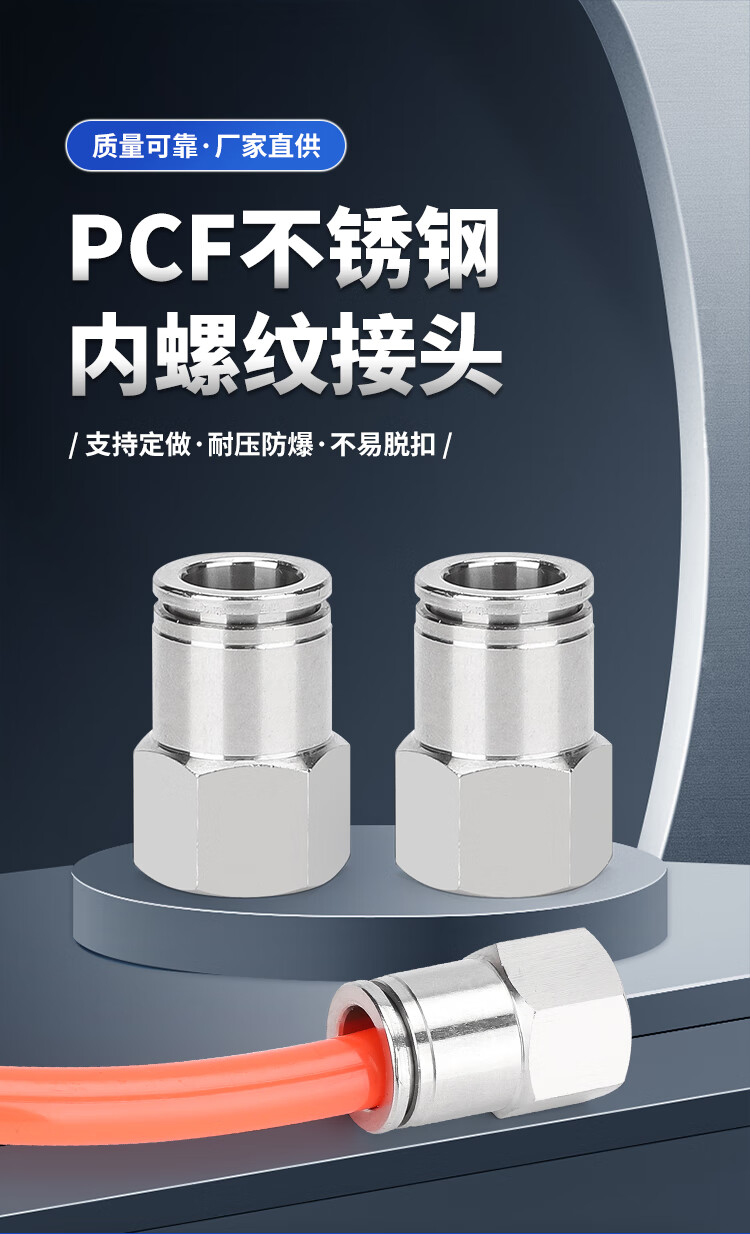 EXSN 304 stainless steel internal thread joint pneumatic joint PCF air pipe joint straight metal joint PCF16-04