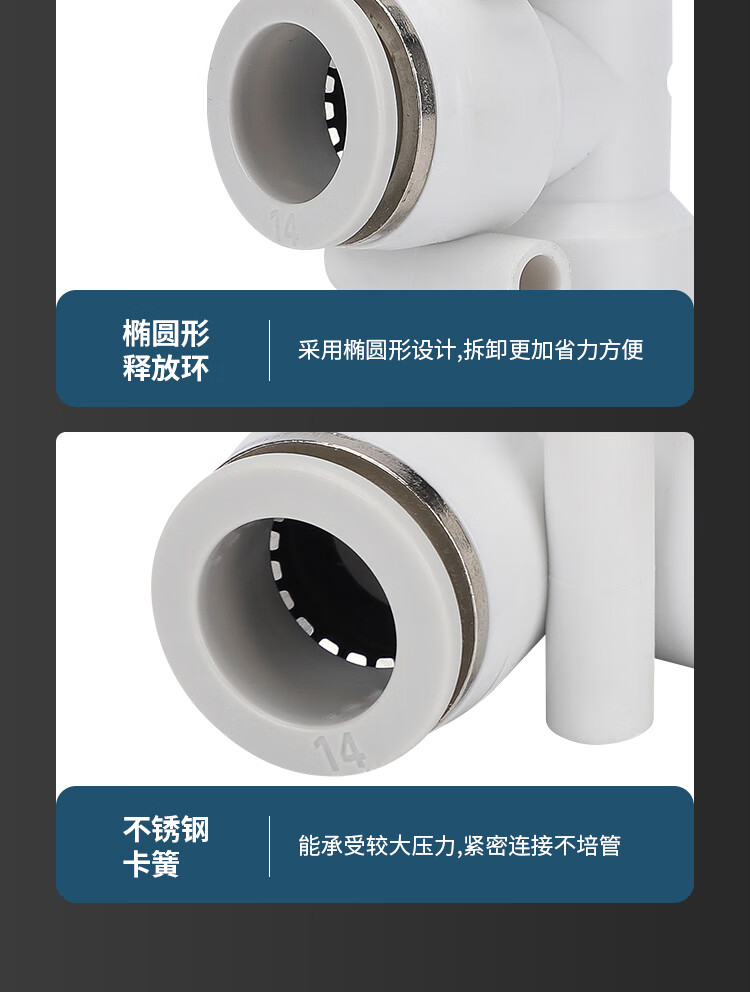 EXSN T-type PE tracheal tee quick-plug connector 4/6/8/10/12/14/16mm pneumatic quick connector plastic tracheal connector white PE-16