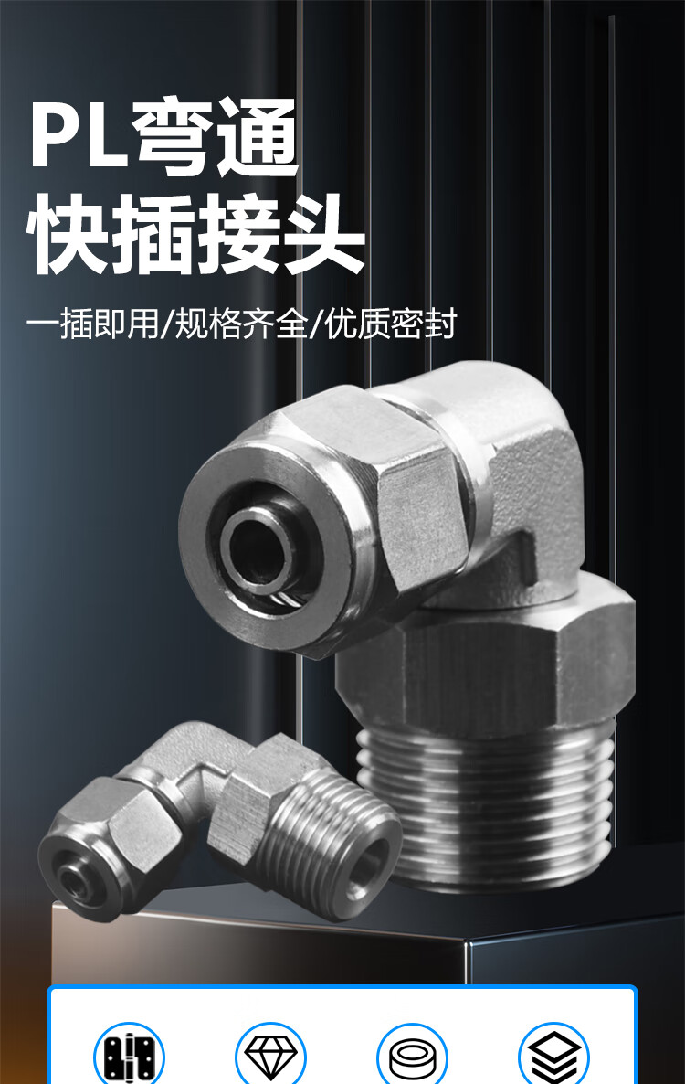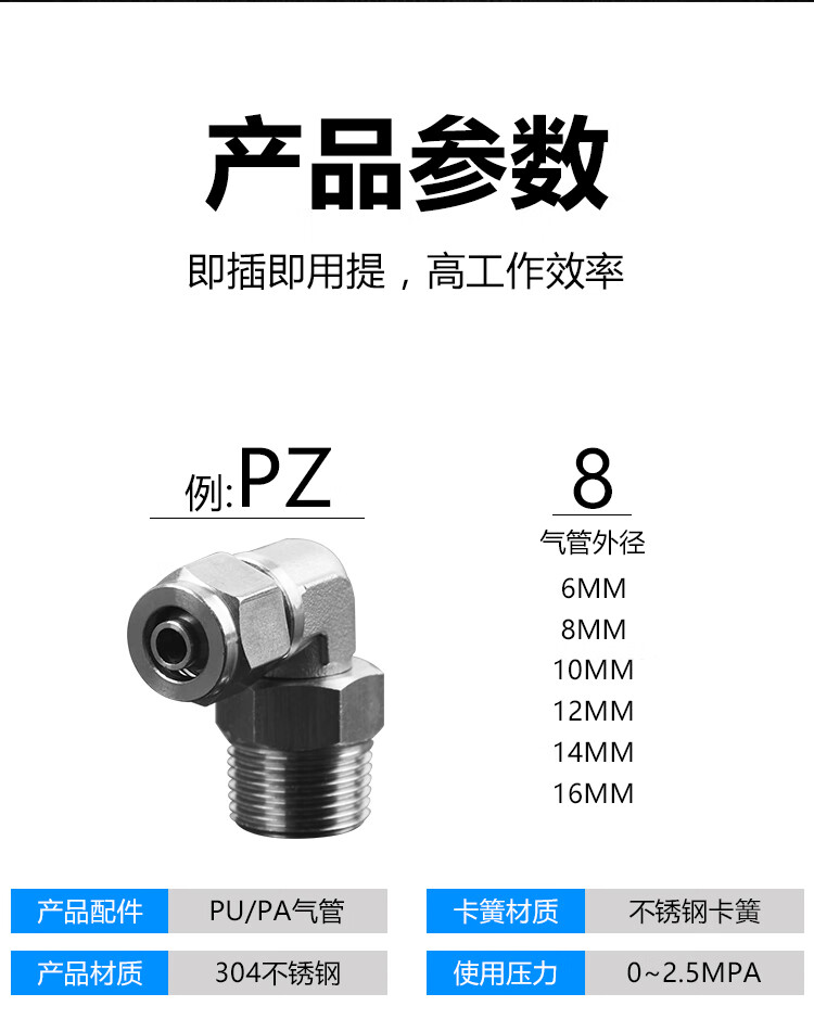 EXSN 304 stainless steel PL threaded elbow right-angle L-shaped rotating outer wire pneumatic trachea quick-twist joint high temperature resistance PL6-01