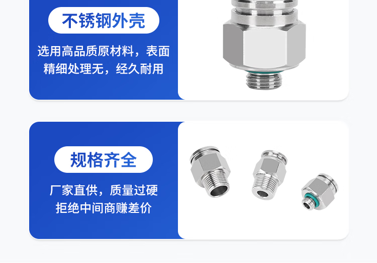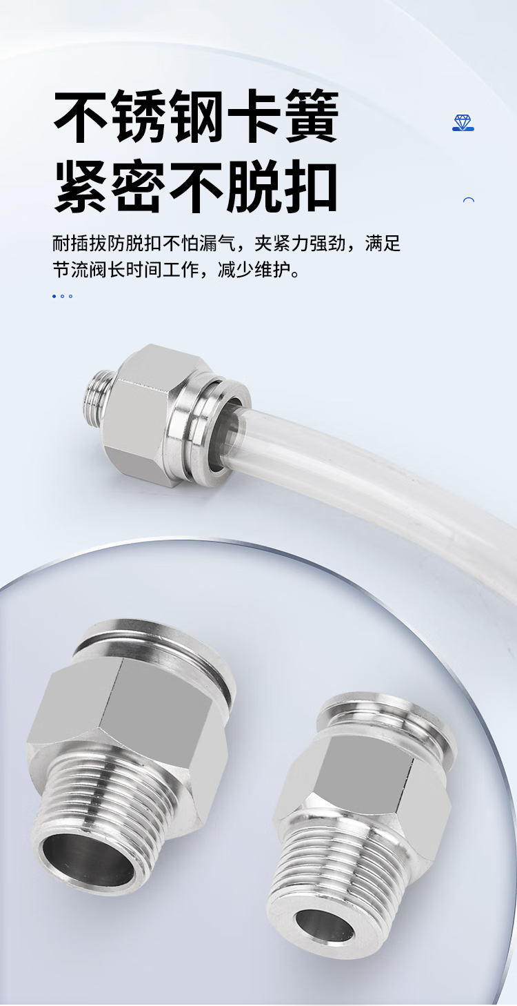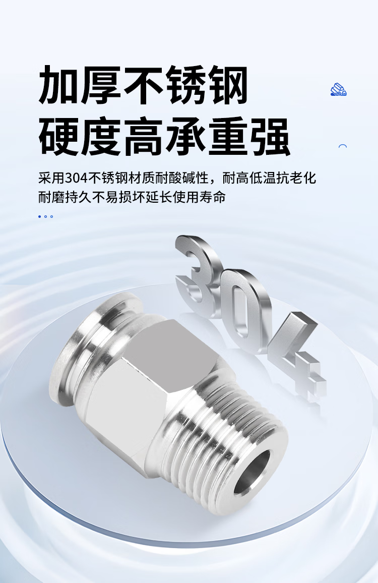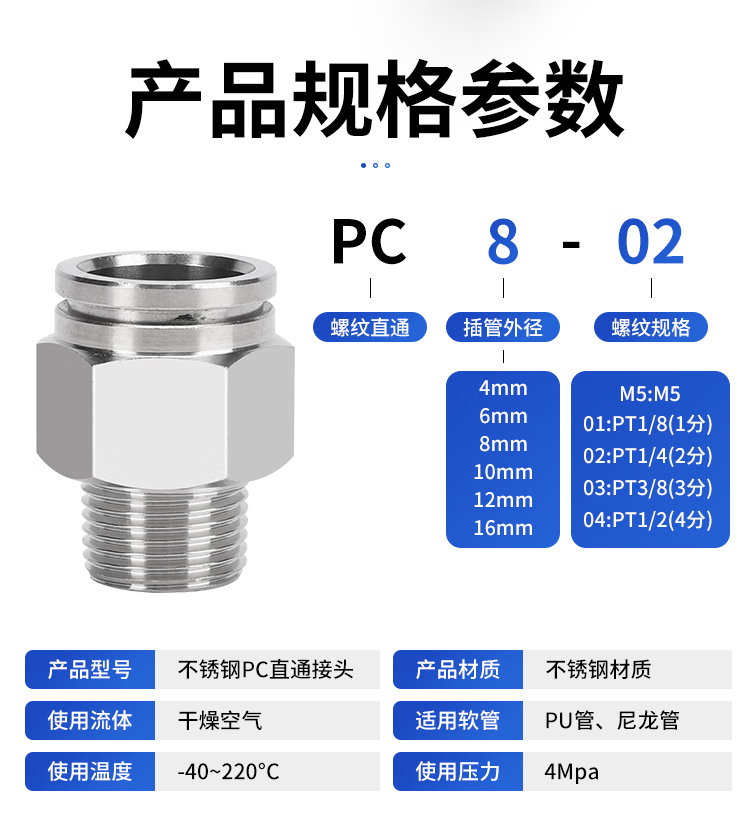 EXSN 304 stainless steel pneumatic connector PC male thread straight air pipe connector quick plug male thread connector PC16-04