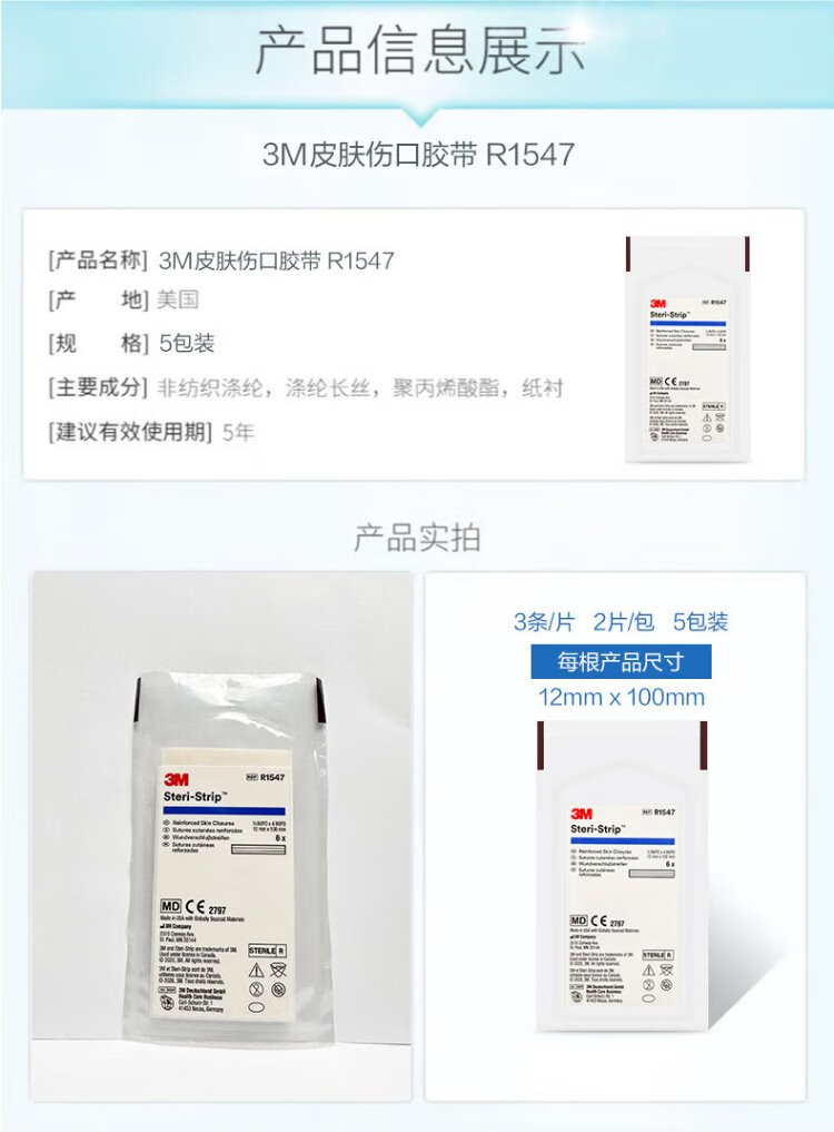 3M Skin Wound Tape Reduction and Seam-free Tape R1547 Tension Reduction Beauty Tape for C-section 5 packs