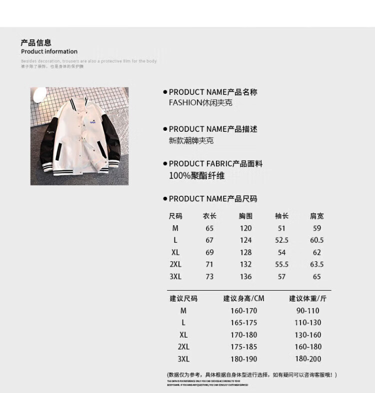 China (cm) 165 / 88-90 170 / 96-98 175 / 108-110 180 / 118-122 185 / 126-130