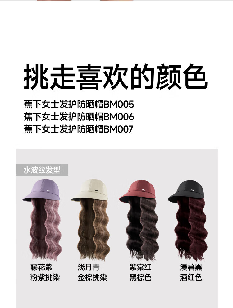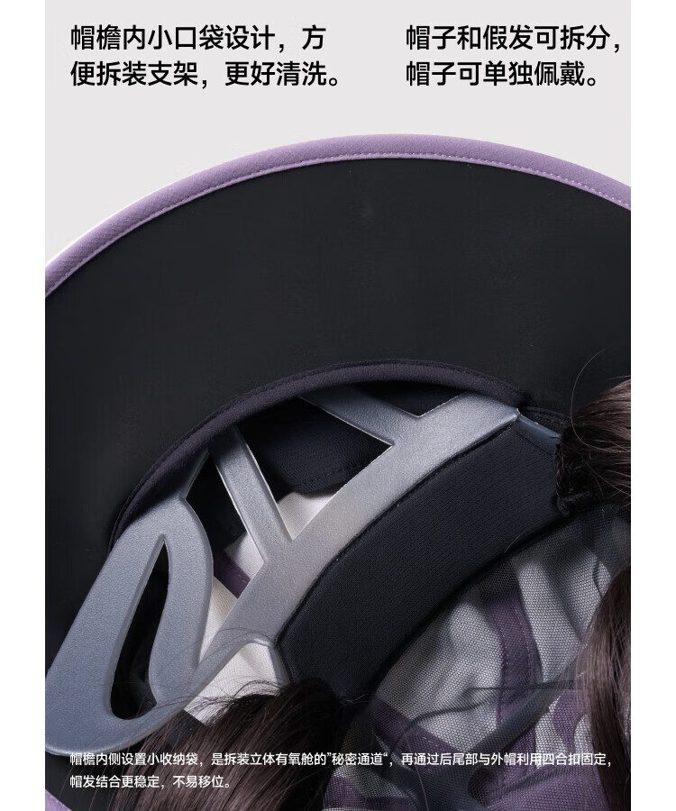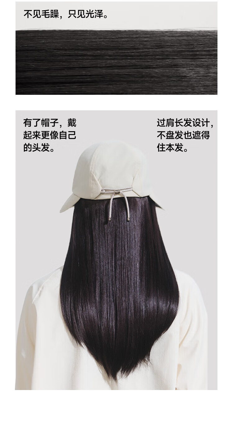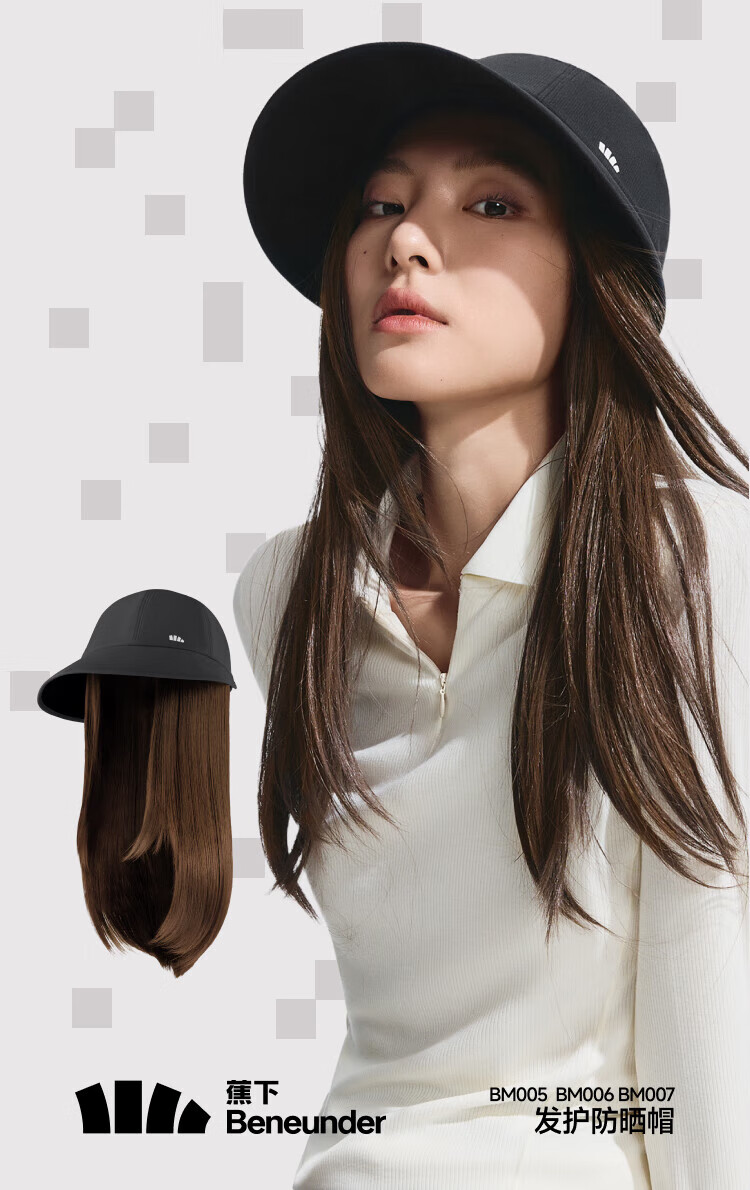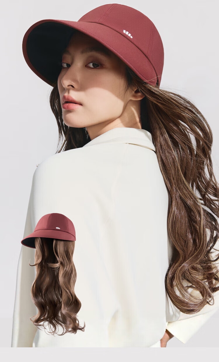 Beneunder sun hat women's sun hat 25 new detachable hair protection wig hat long straight hair peaked hat sun hat fashion