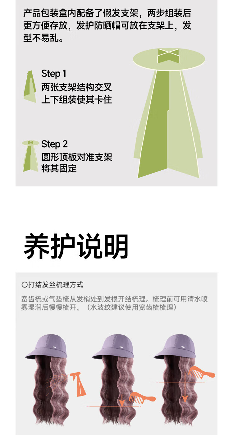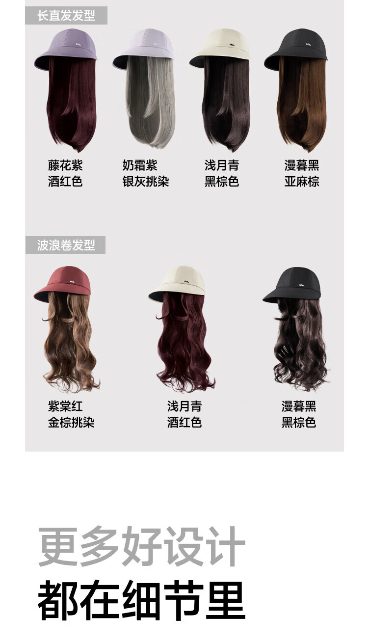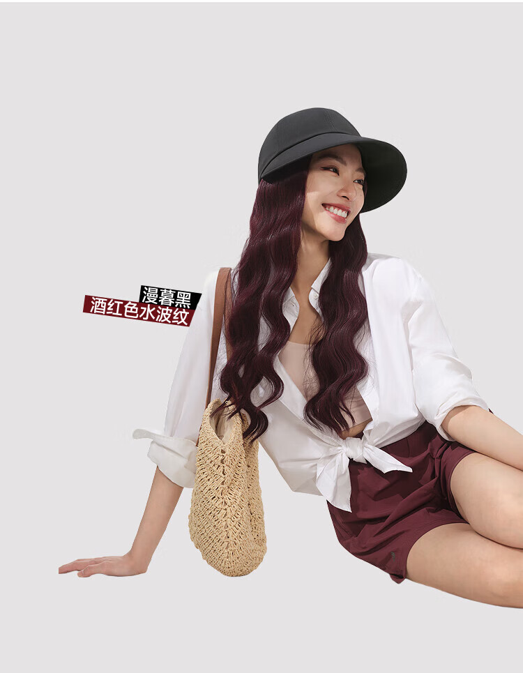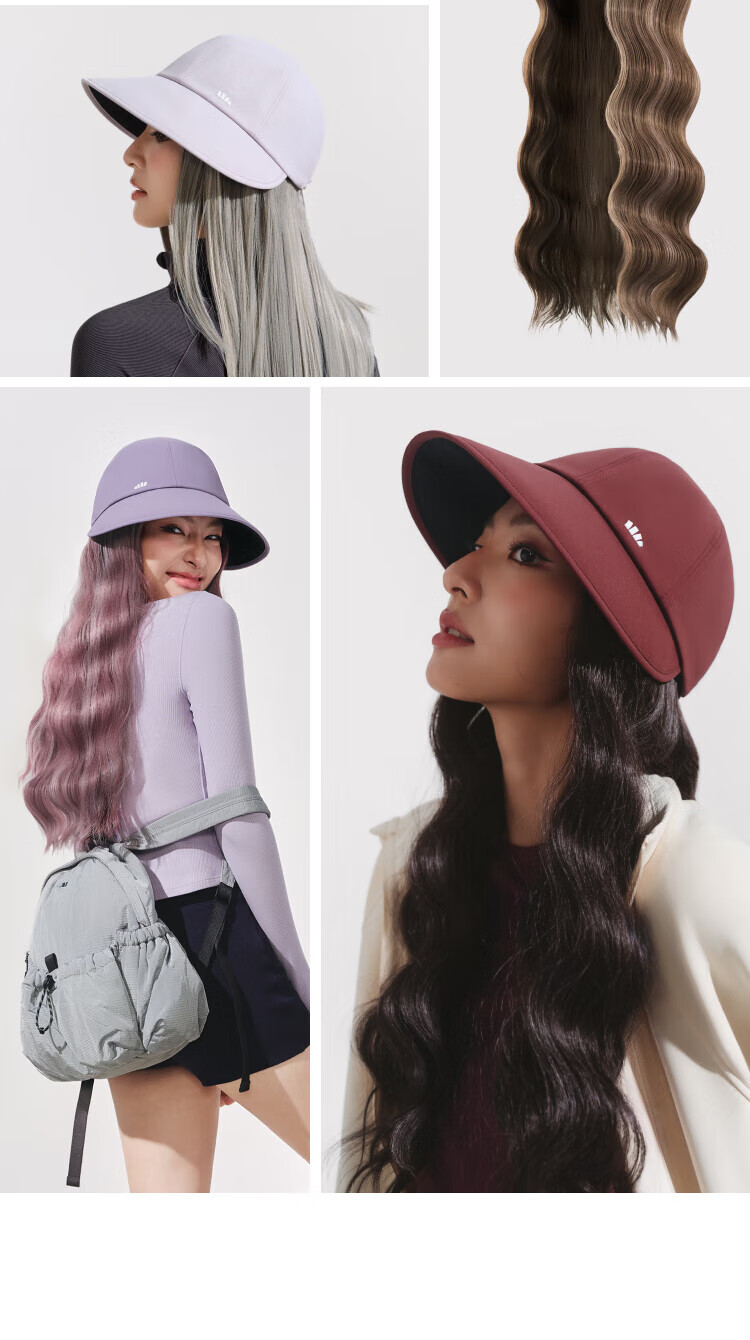 Beneunder sun hat women's sun hat 25 new detachable hair protection wig hat long straight hair peaked hat sun hat fashion