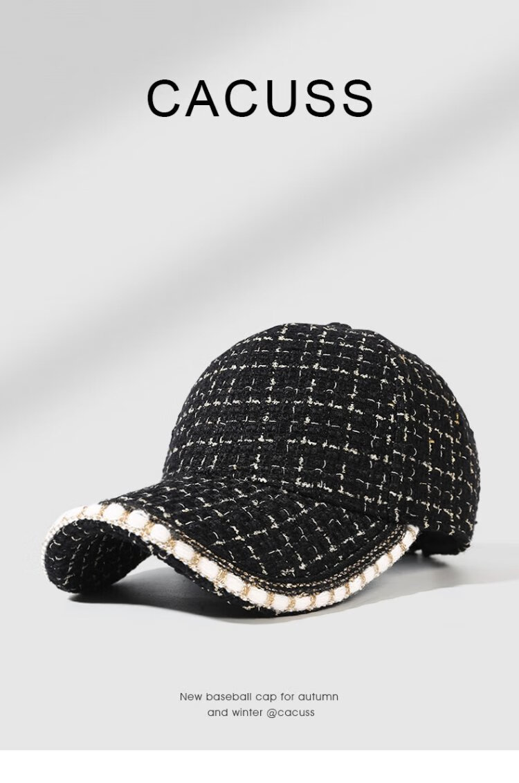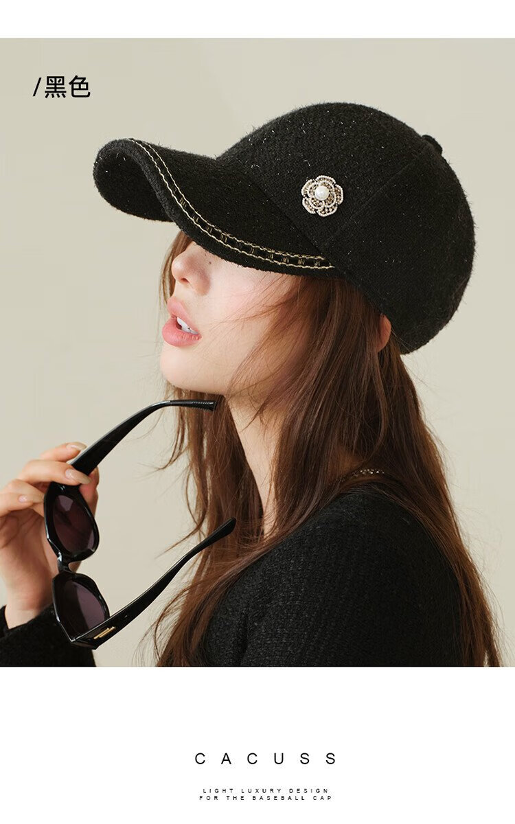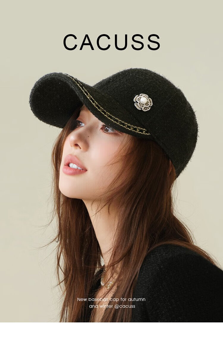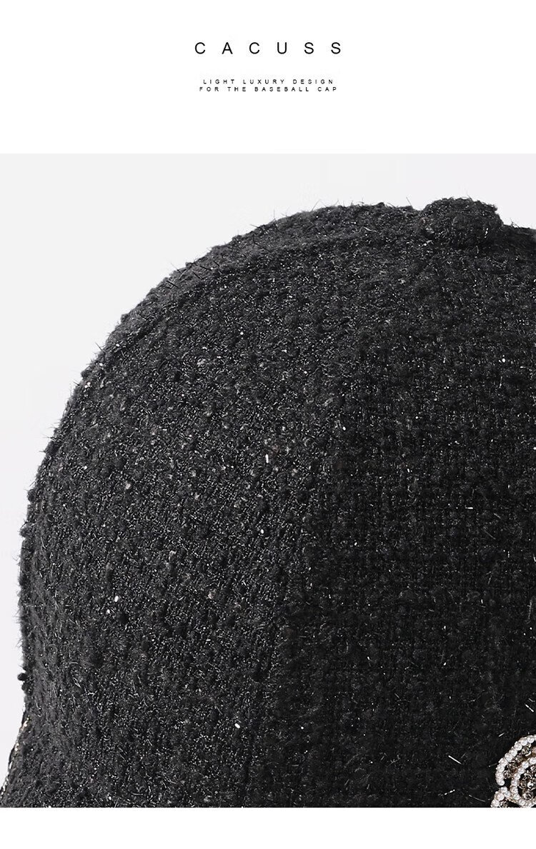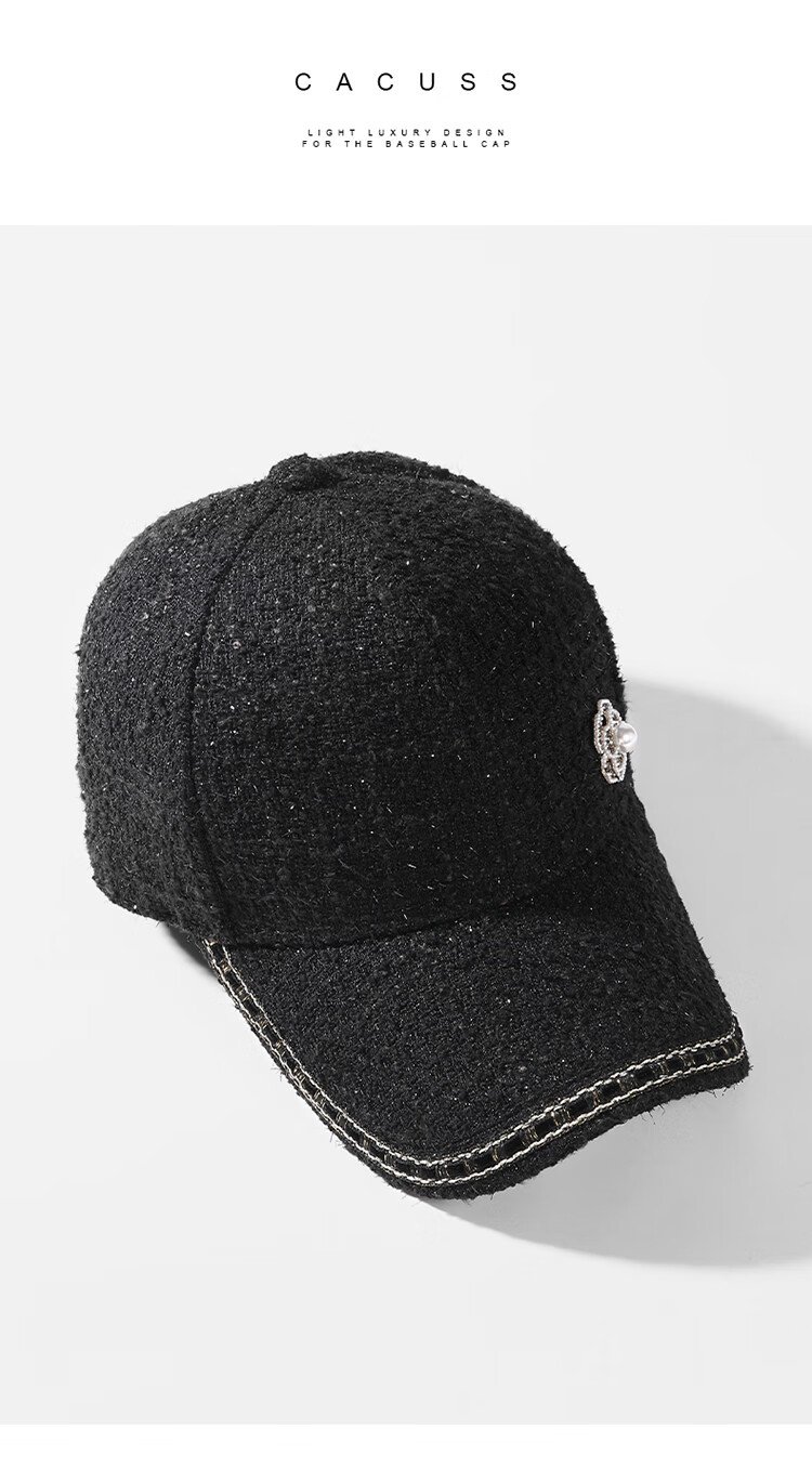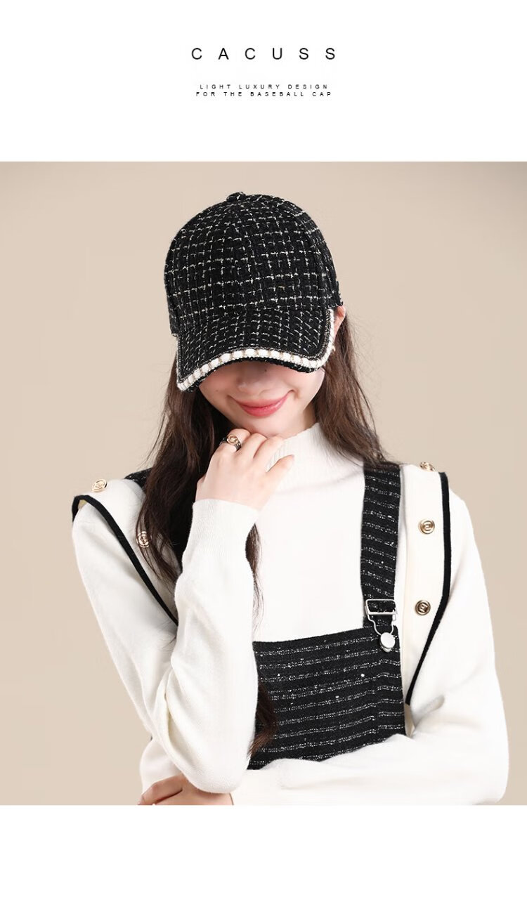 CACUSS Hat Women's Autumn and Winter Baseball Cap Fashion Small Fragrance Face Showing Small Peaked Hat Women Black