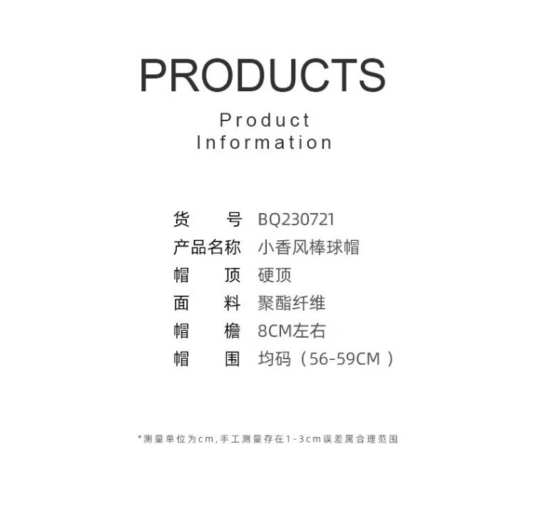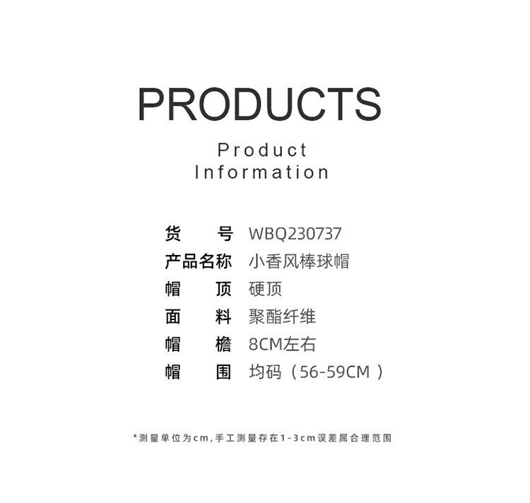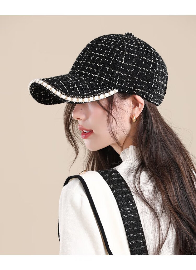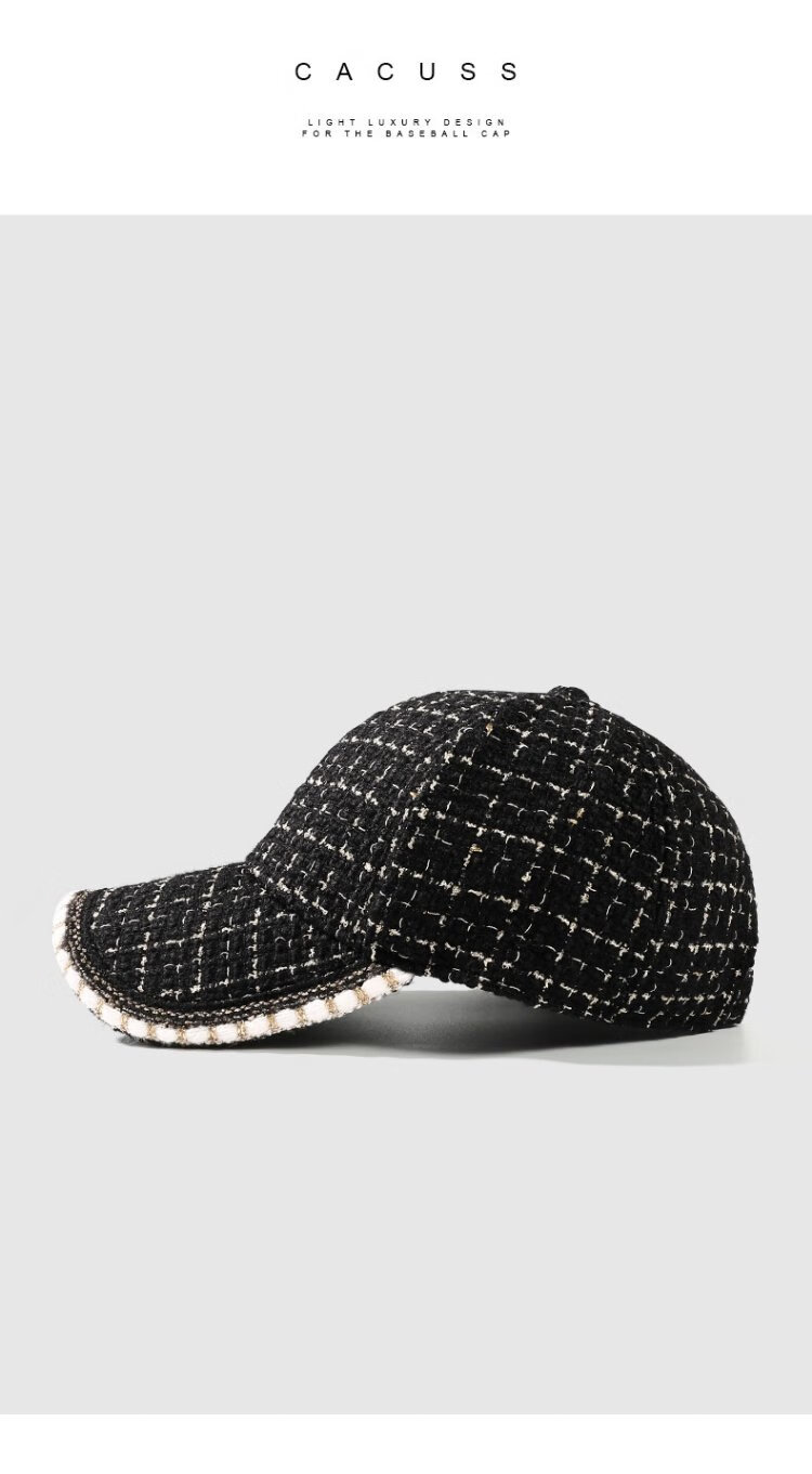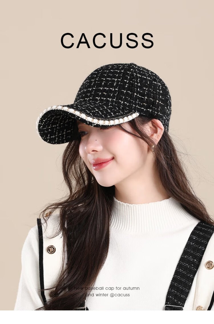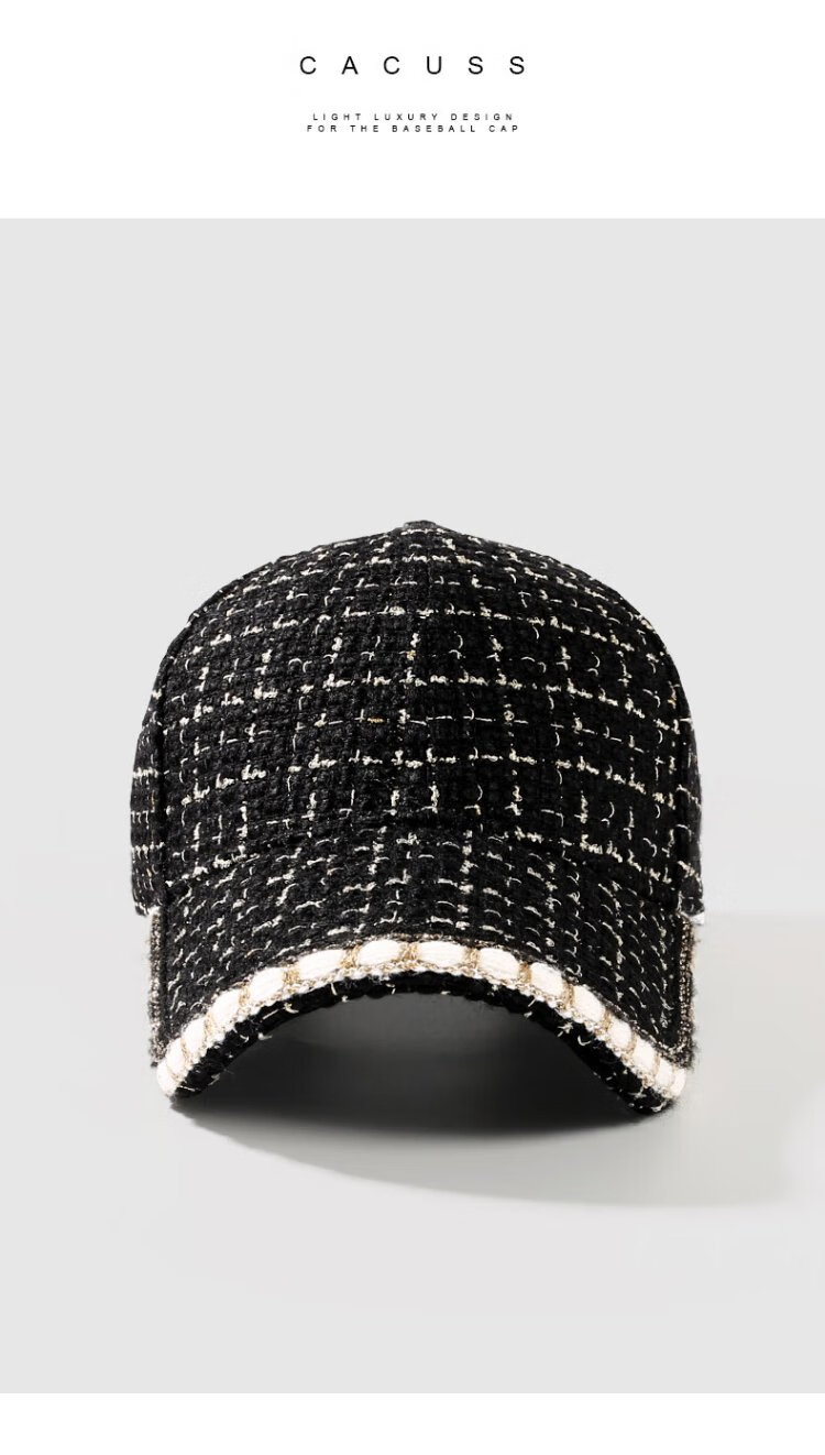 CACUSS Hat Women's Autumn and Winter Baseball Cap Fashion Small Fragrance Face Showing Small Peaked Hat Women Black