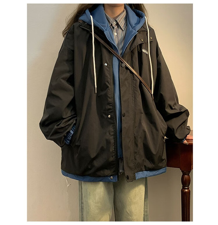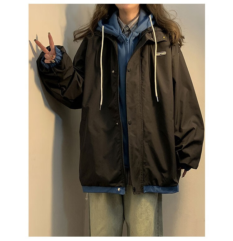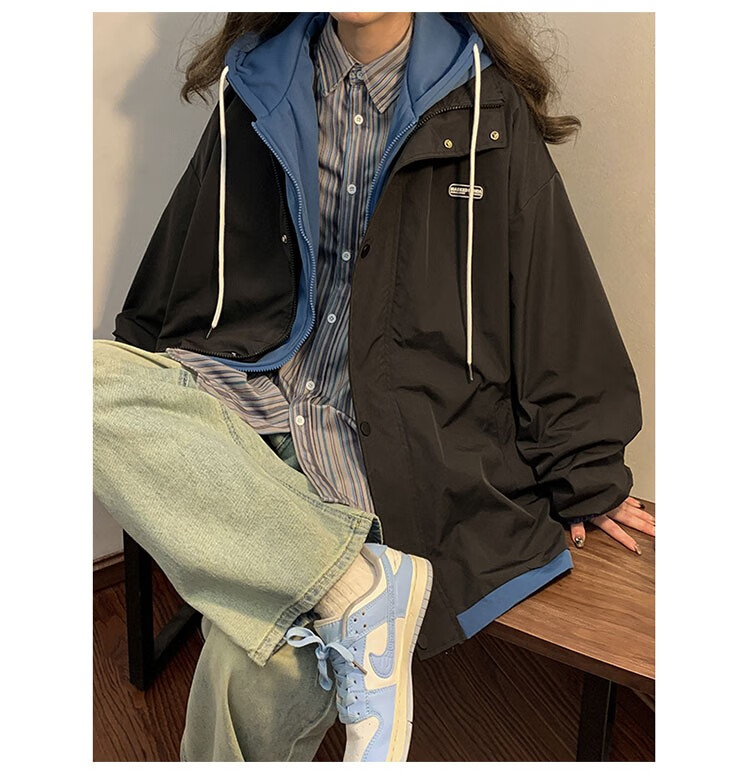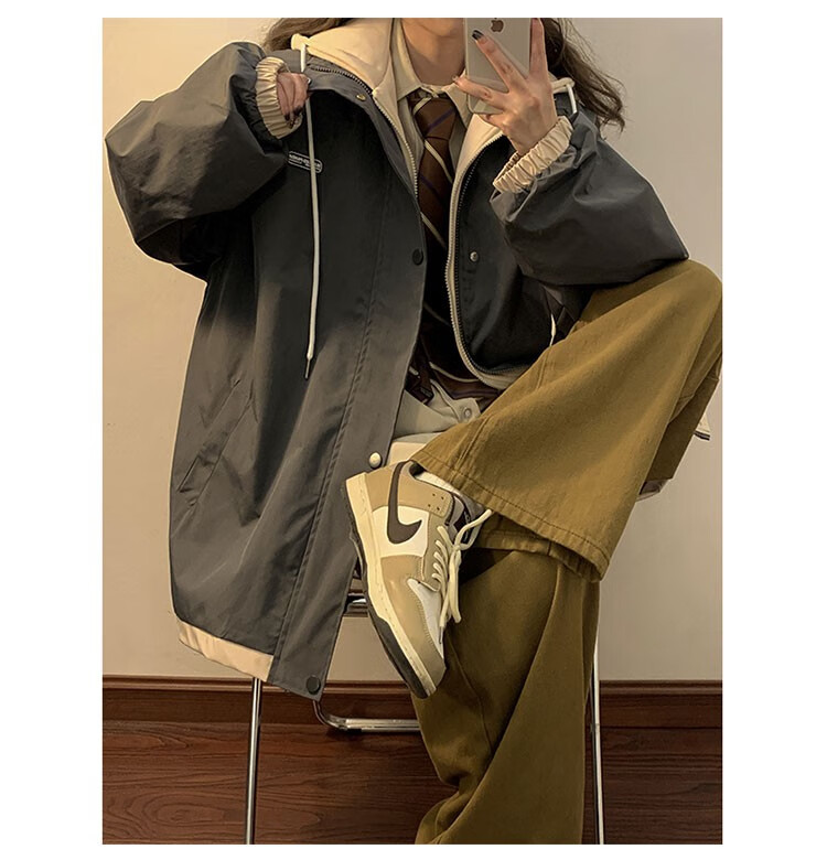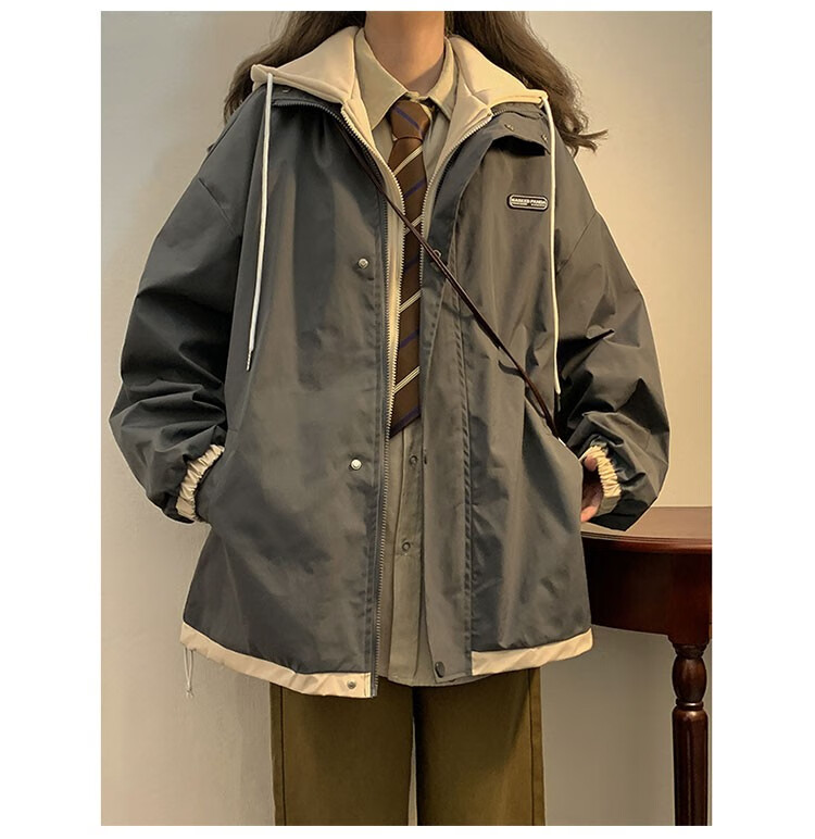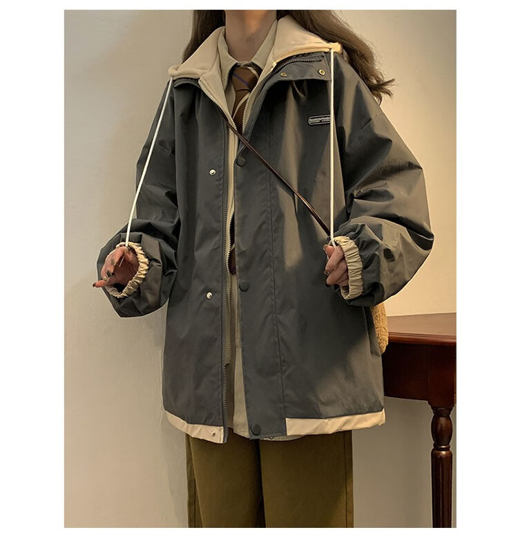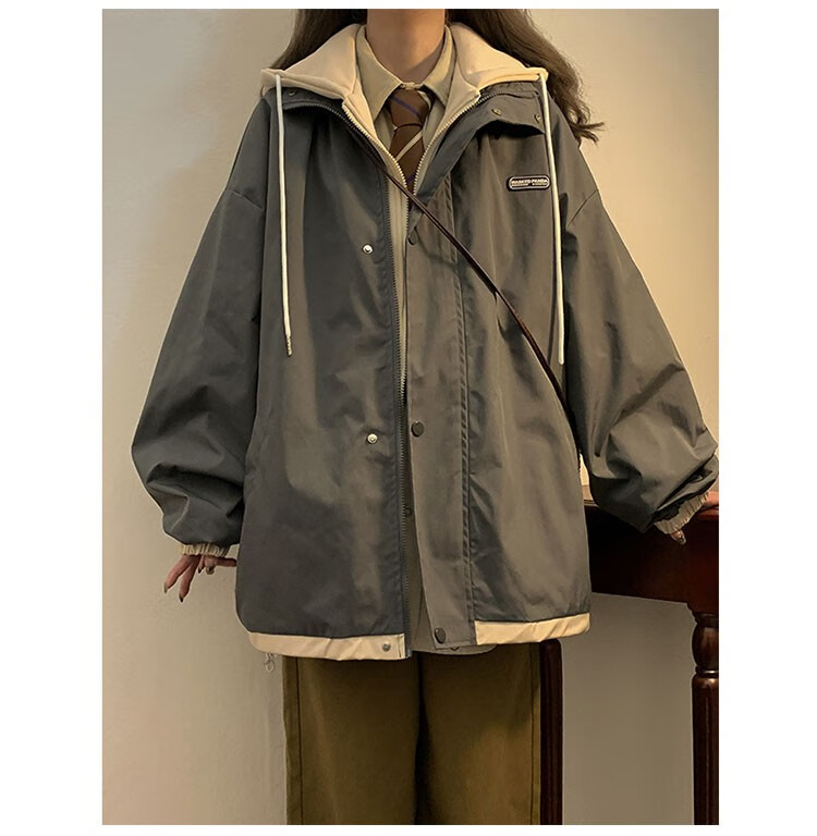 QGF fake two-piece assault top jacket for women spring and autumn thin small loose casual new baseball uniform trend jacket gray M
