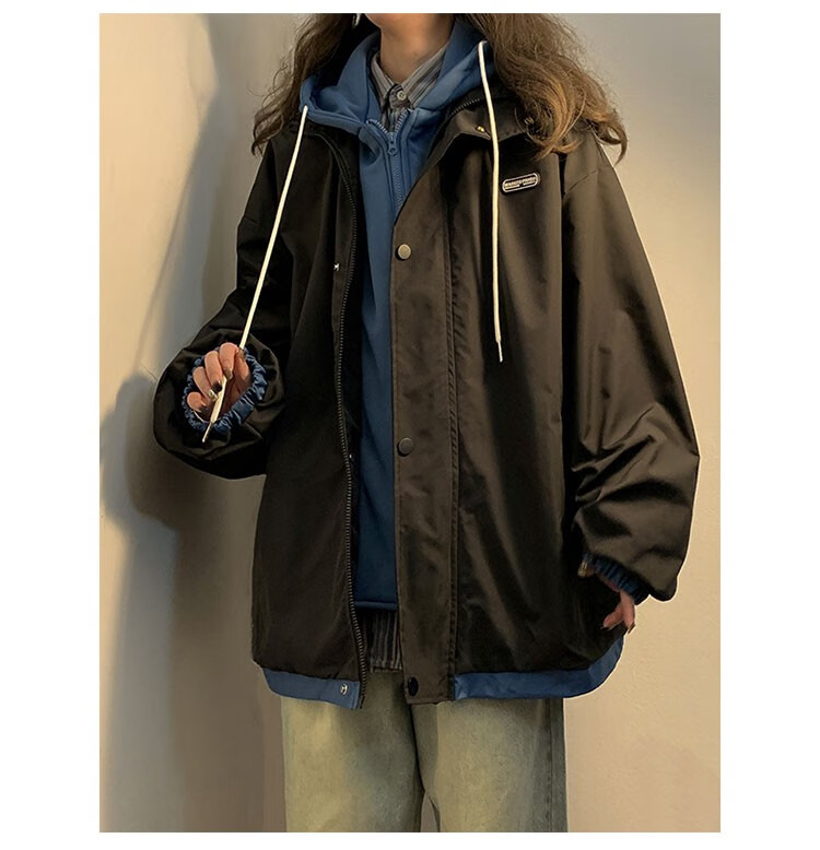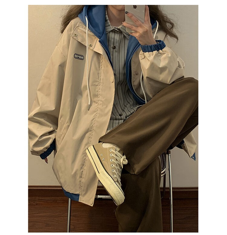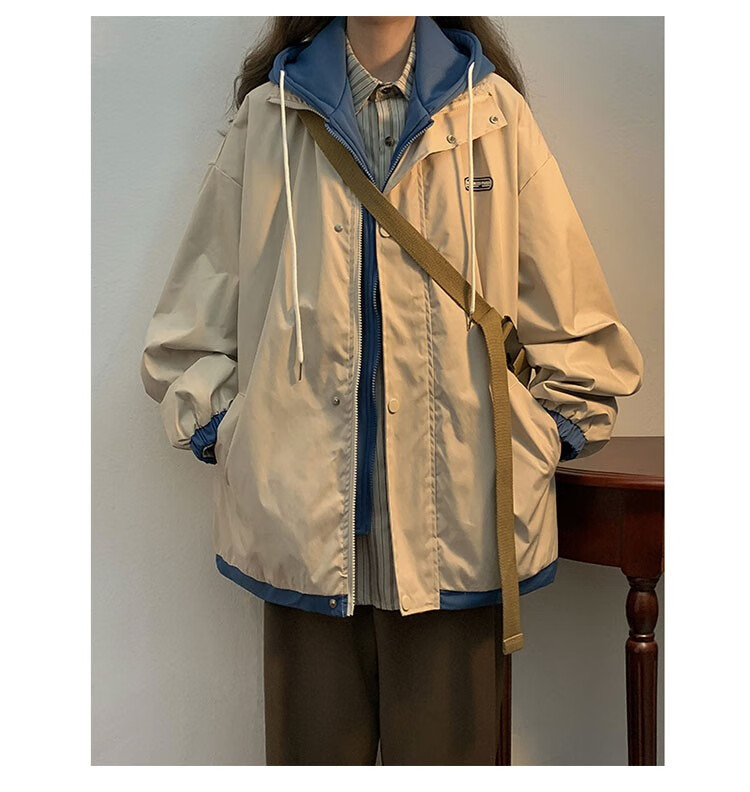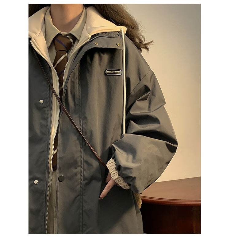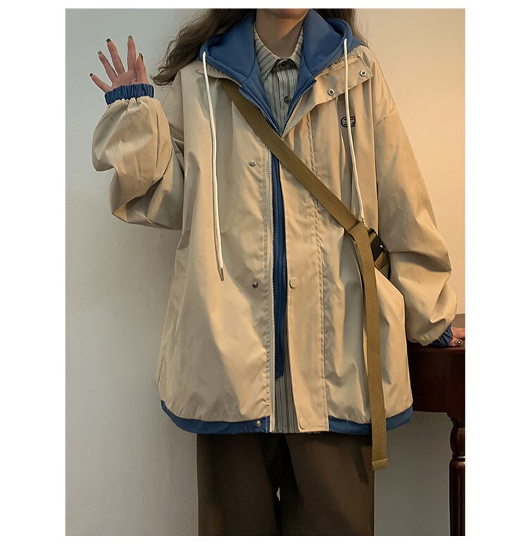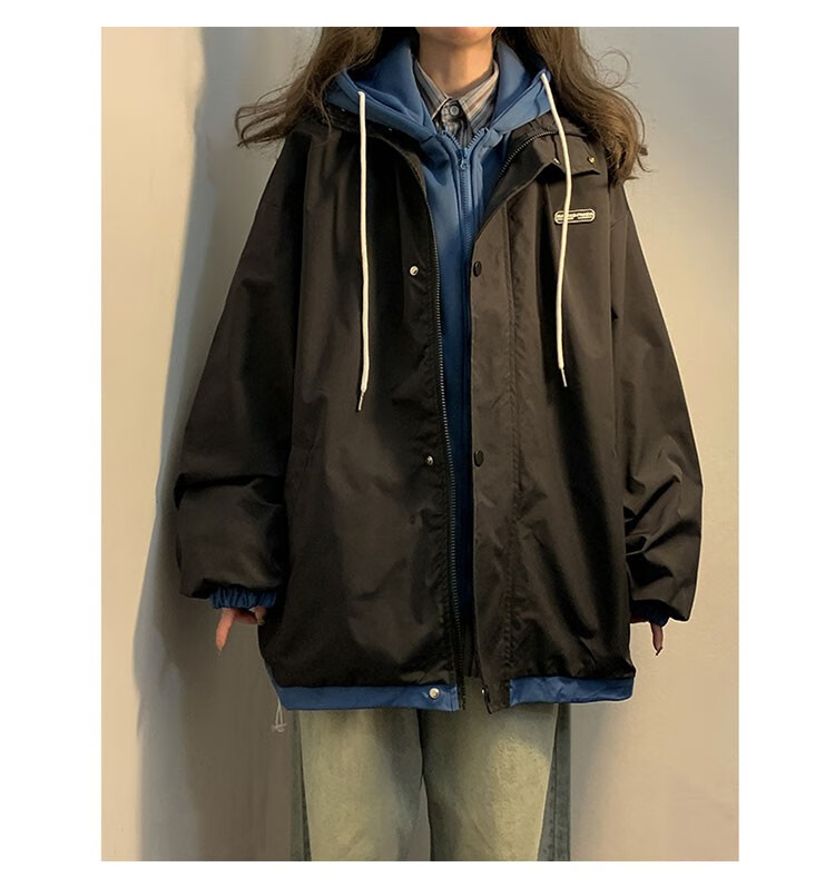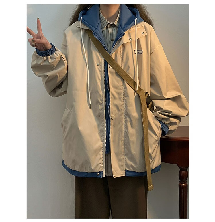 QGF fake two-piece assault top jacket for women spring and autumn thin small loose casual new baseball uniform trend jacket gray M