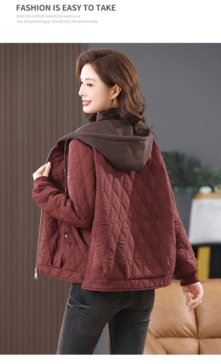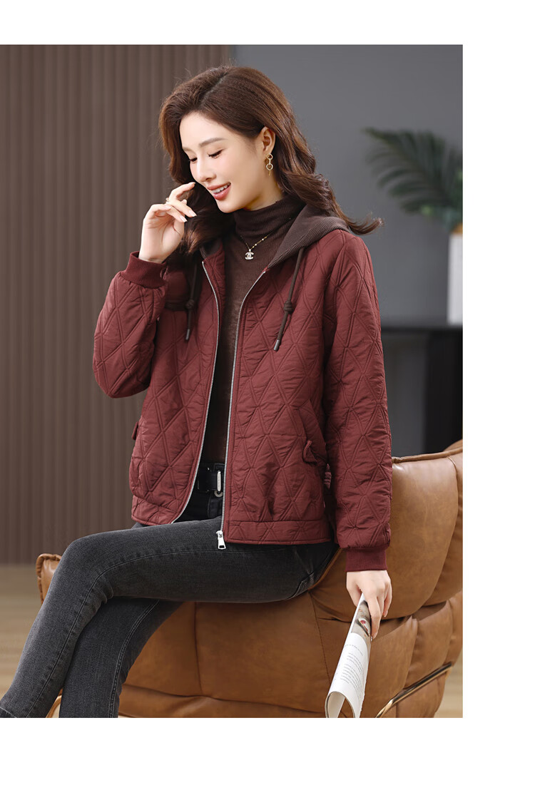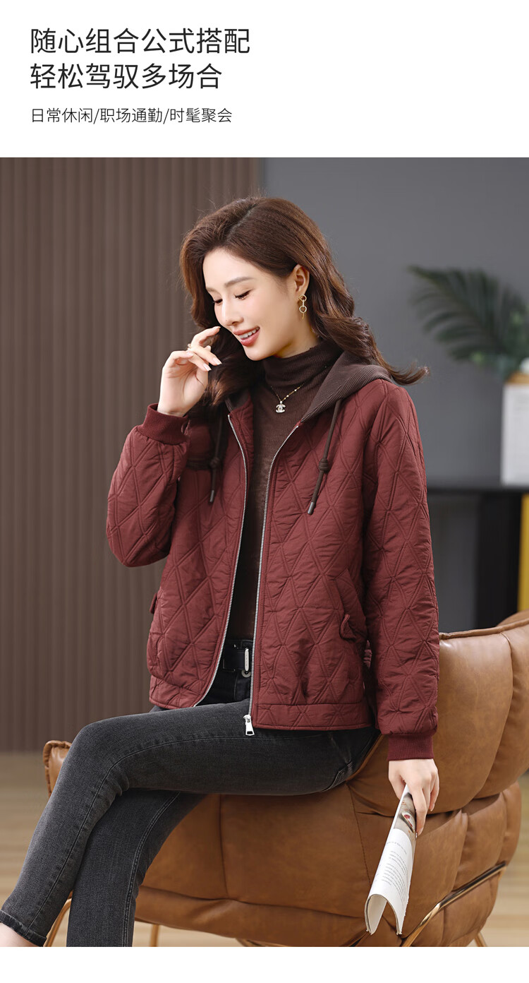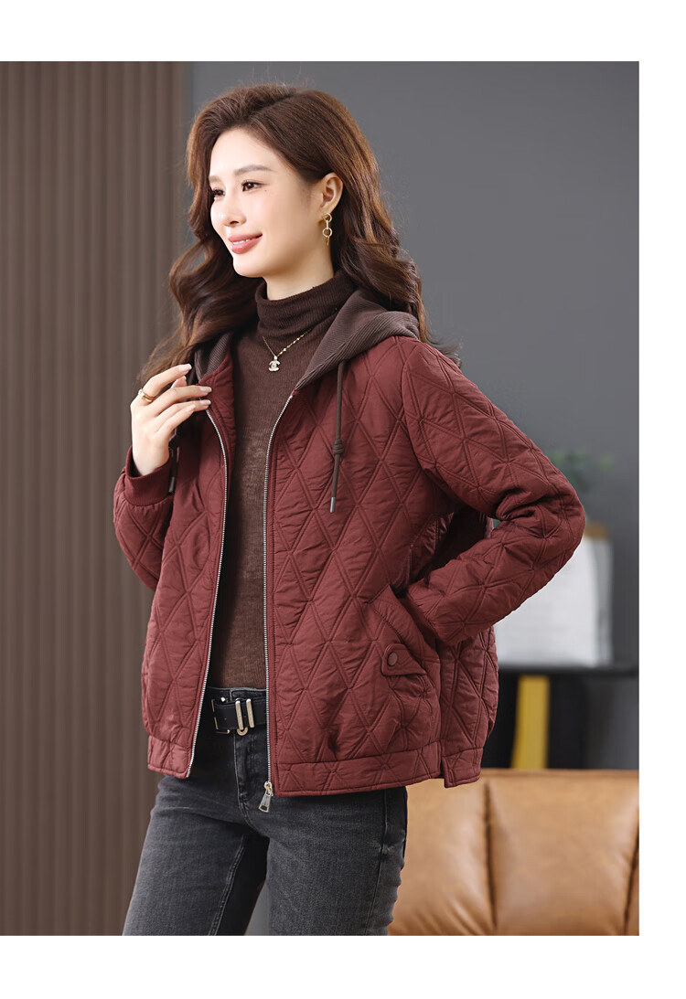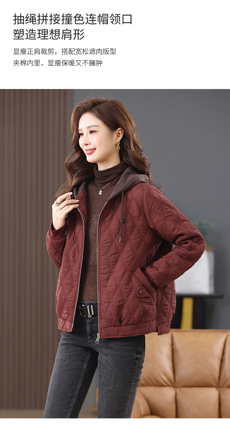 LEDIALYI fashion hooded middle-aged quilted baseball jacket for women 2025 winter new high-end casual thin cotton jacket maroon M (recommended 95-120 Jin Jin equals 0.5 kg)