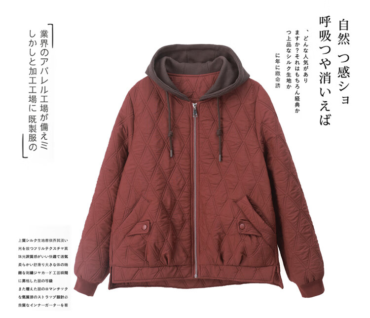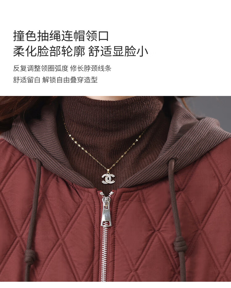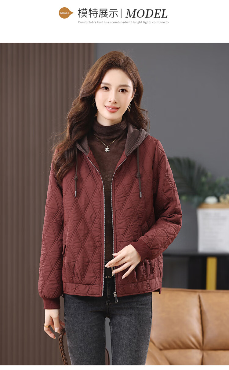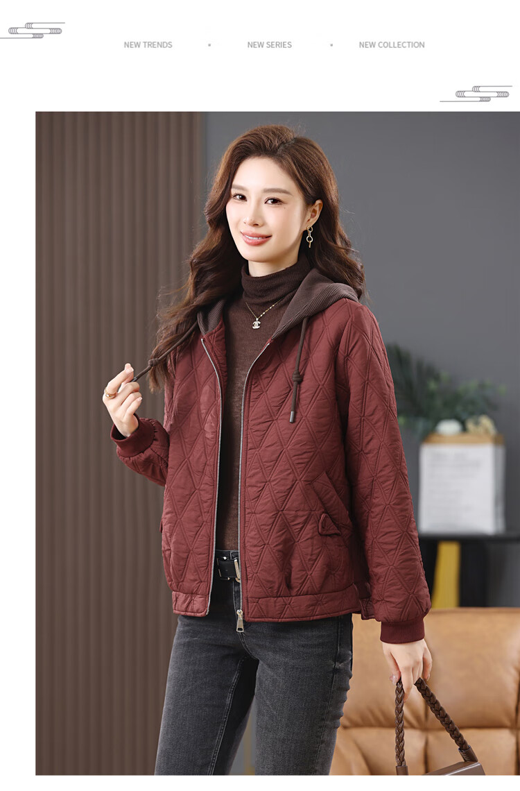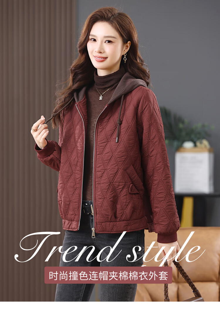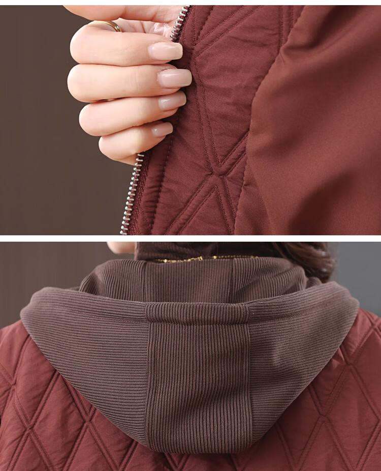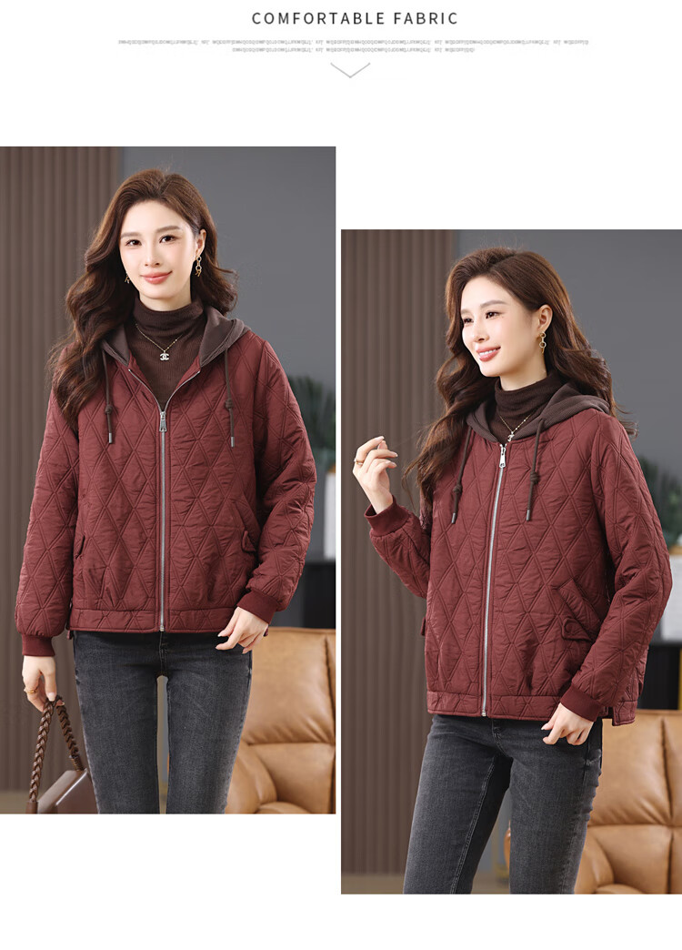 LEDIALYI fashion hooded middle-aged quilted baseball jacket for women 2025 winter new high-end casual thin cotton jacket maroon M (recommended 95-120 Jin Jin equals 0.5 kg)