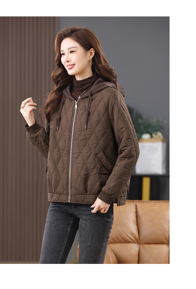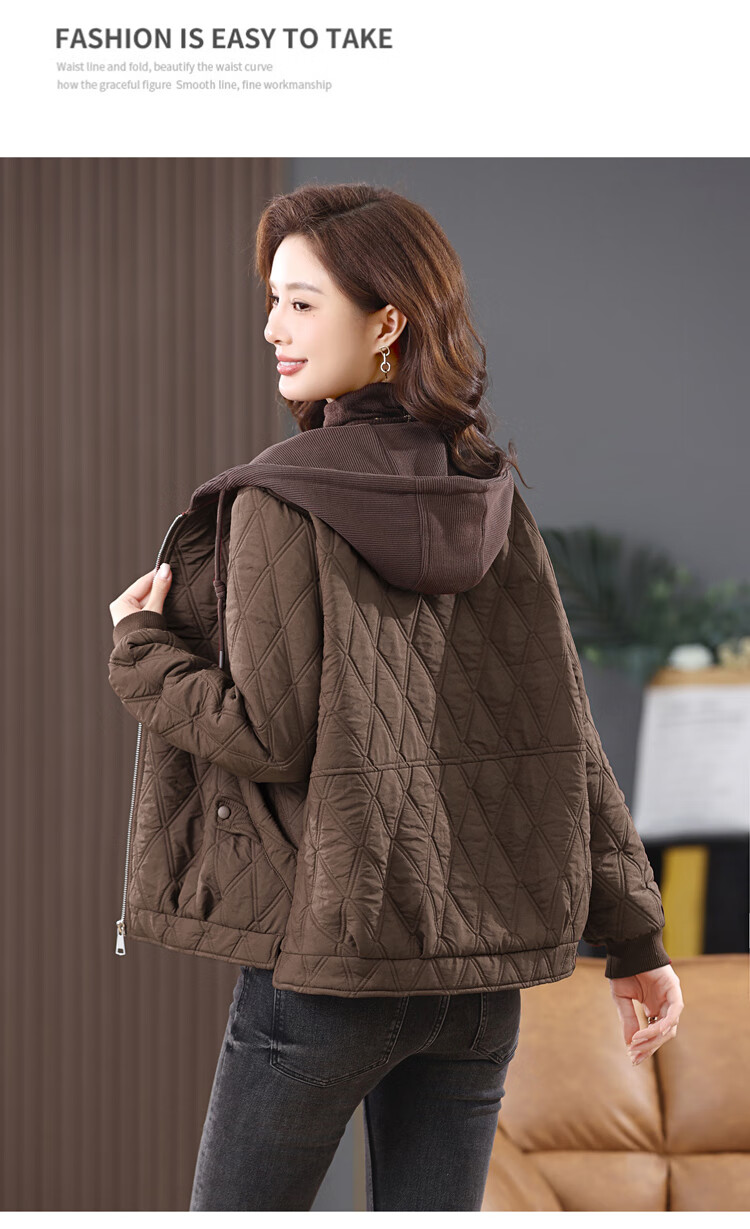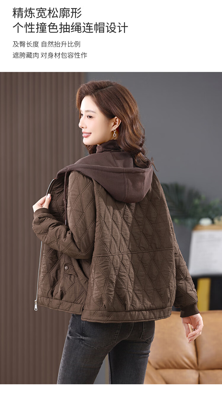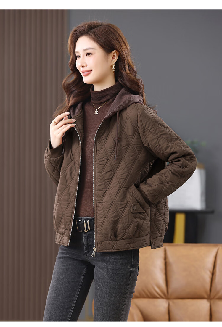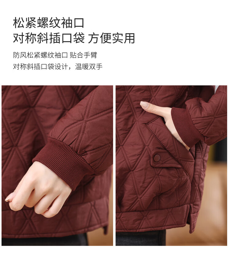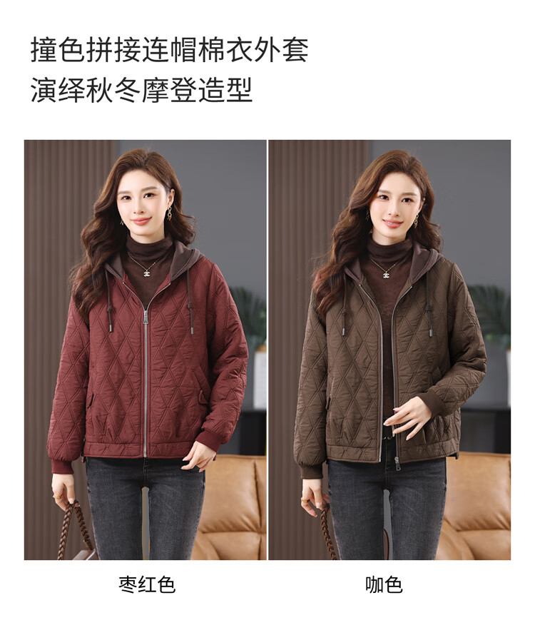 LEDIALYI fashion hooded middle-aged quilted baseball jacket for women 2025 winter new high-end casual thin cotton jacket maroon M (recommended 95-120 Jin Jin equals 0.5 kg)