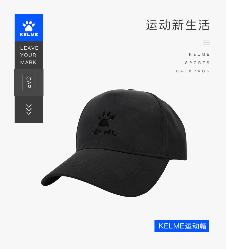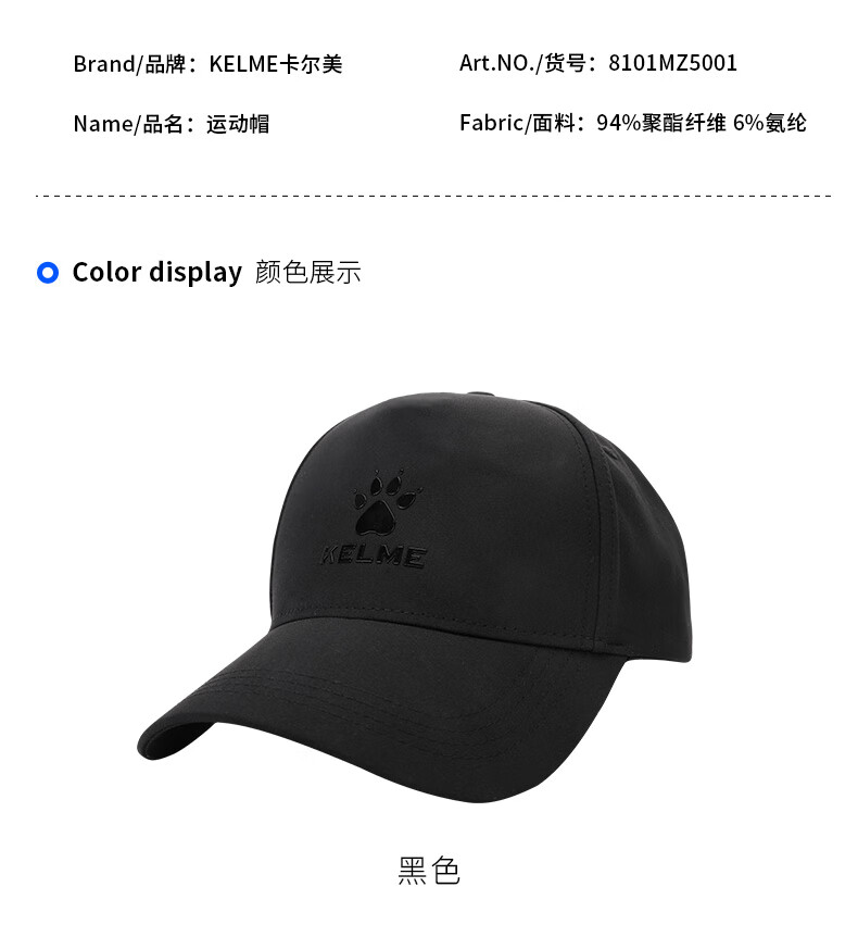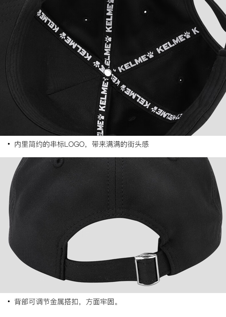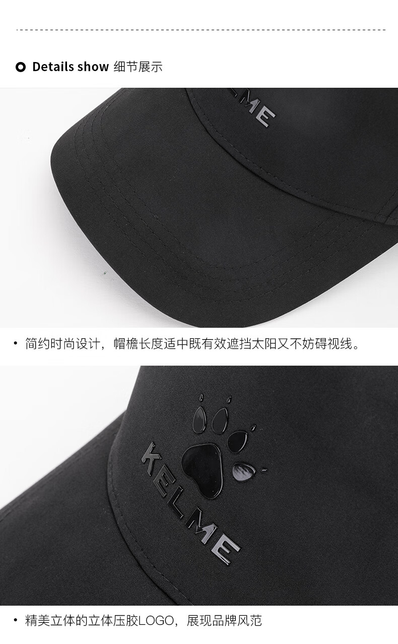 KELME baseball cap for men, peaked cap for women, 2024 new fashion sun hat, outdoor sports hat for couples, black, head circumference 56-60cm, one size fits all