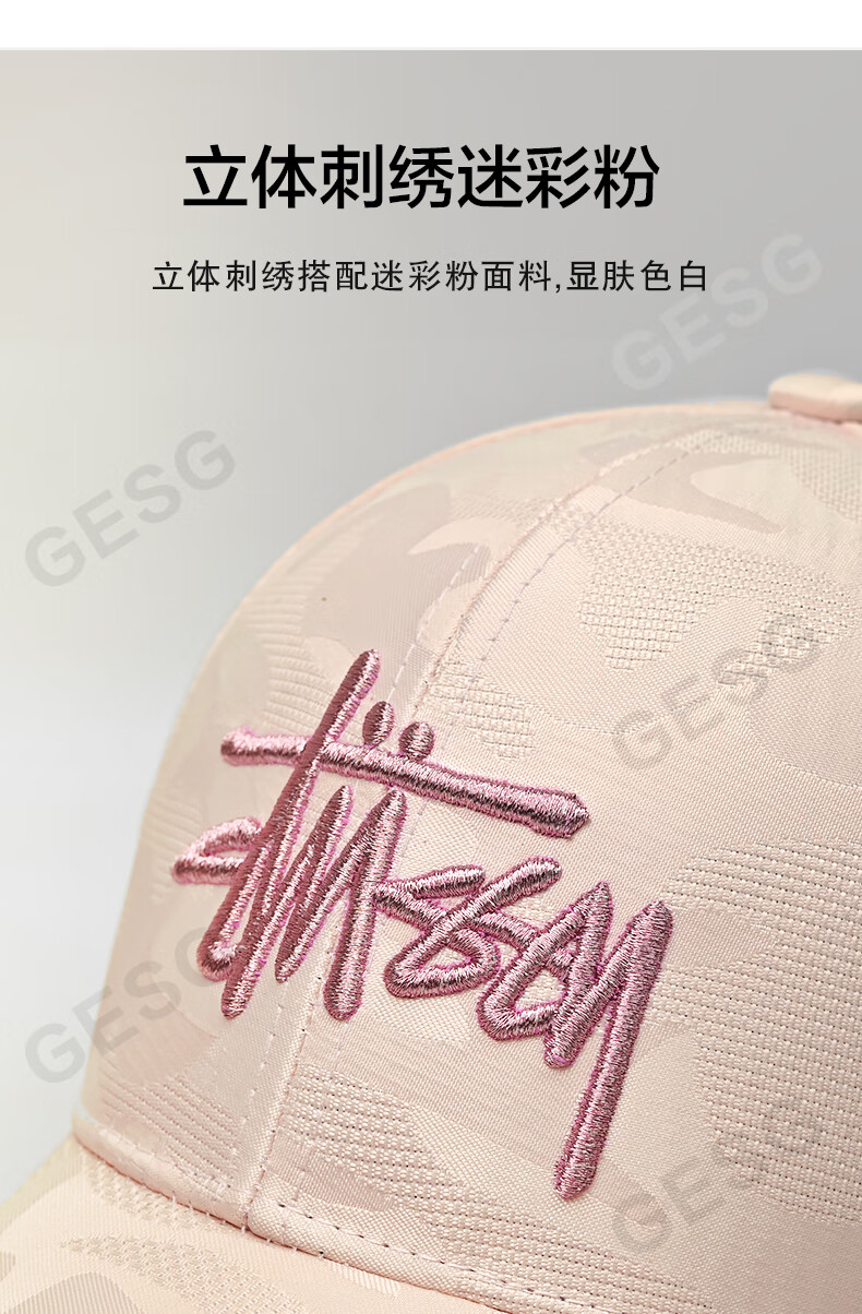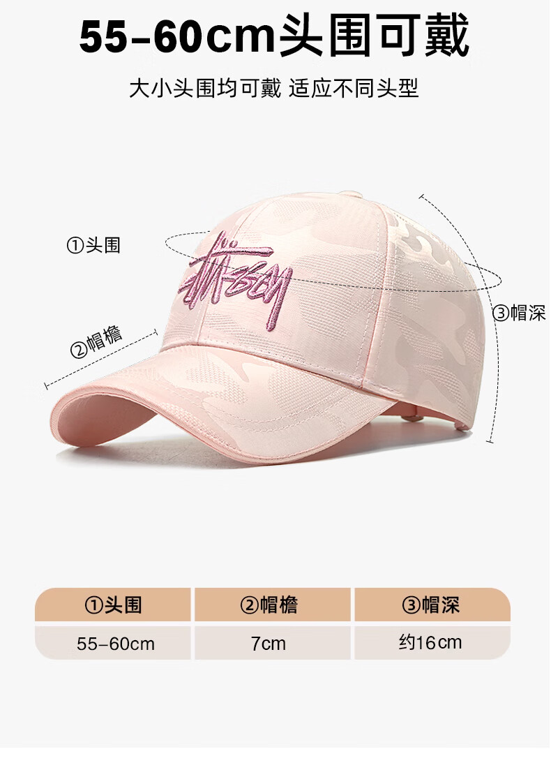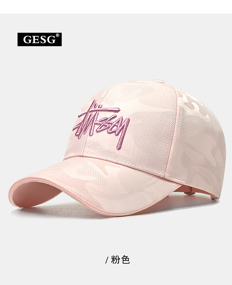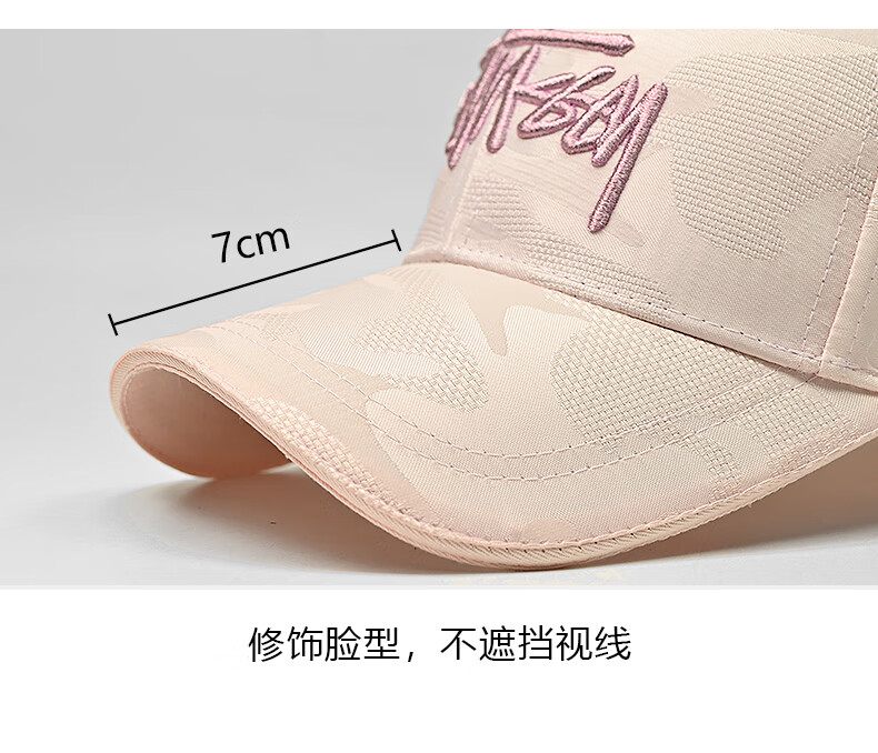 Japanese light pink and white hat women's fashionable baseball cap hard top, stylish and face-friendly, versatile peaked cap that can be worn in all seasons GESG-dome camouflage Martian text, black and white full cloth M L (55-60c)