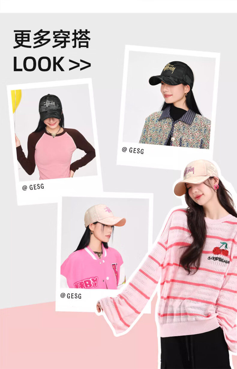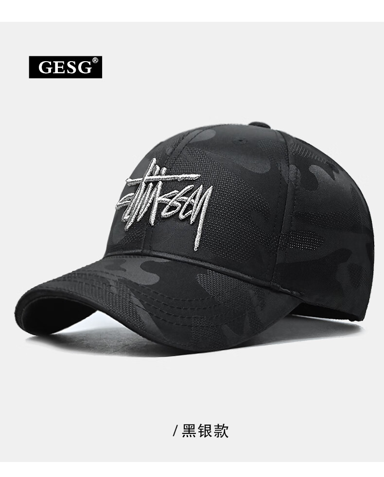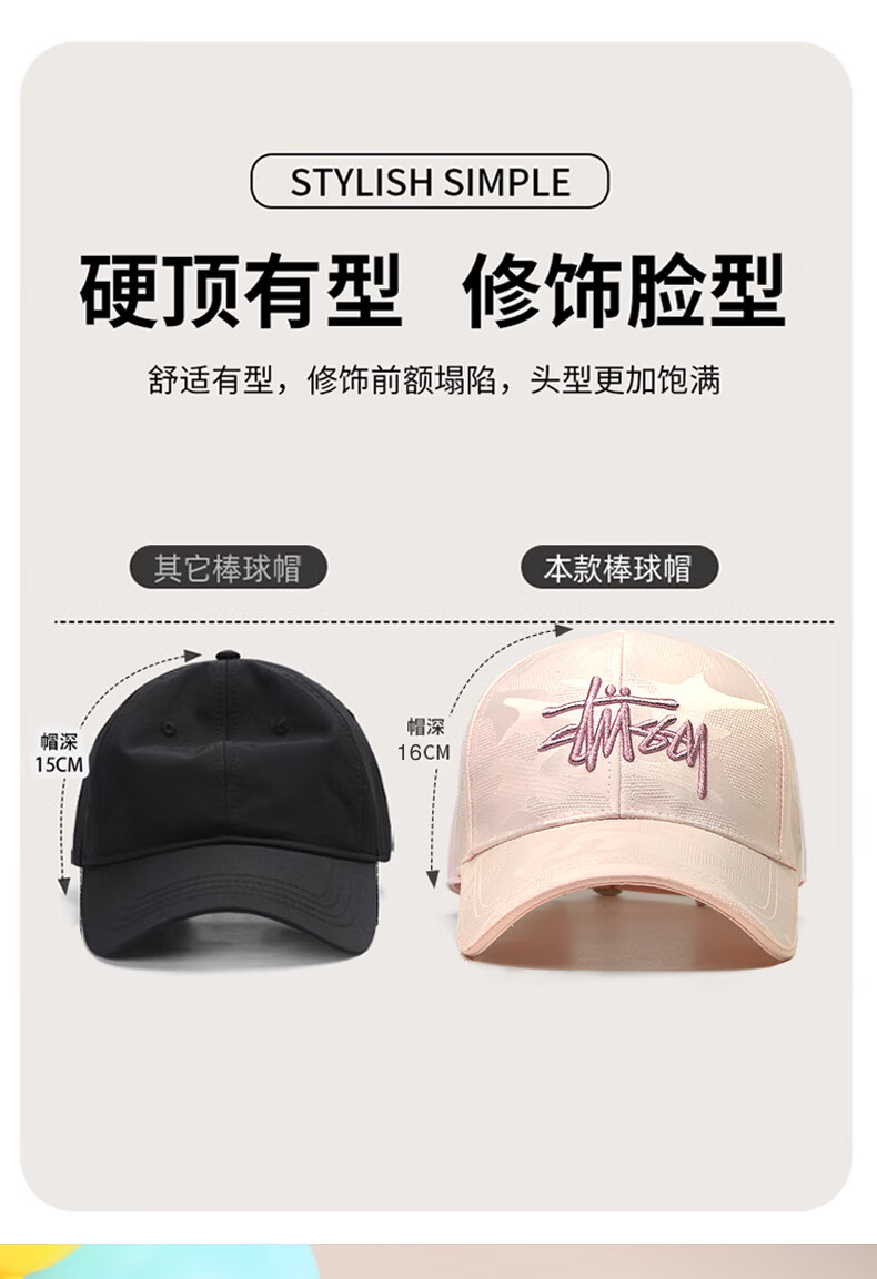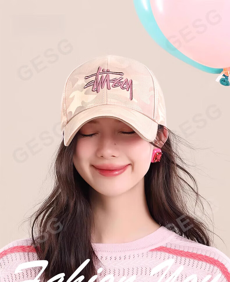 Japanese light pink and white hat women's fashionable baseball cap hard top, stylish and face-friendly, versatile peaked cap that can be worn in all seasons GESG-dome camouflage Martian text, black and white full cloth M L (55-60c)