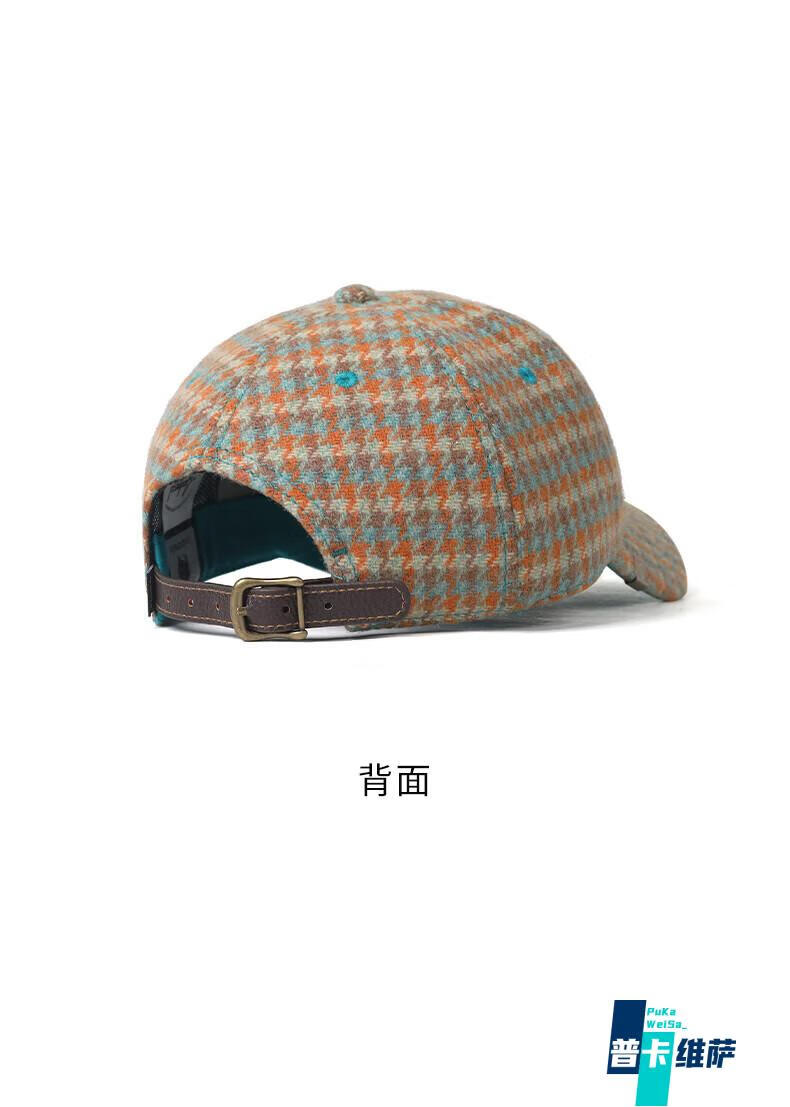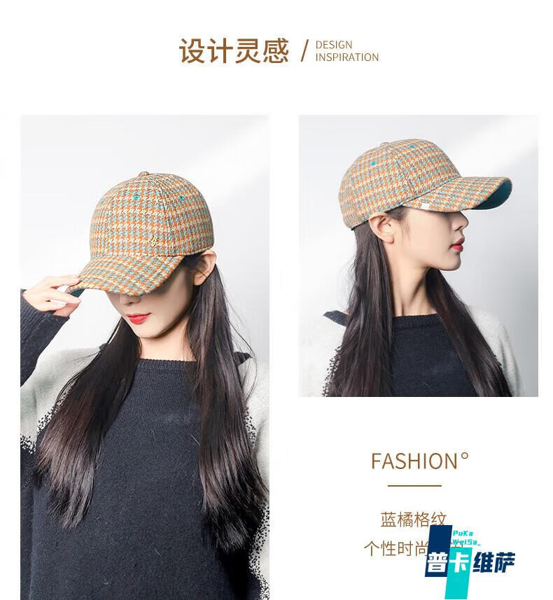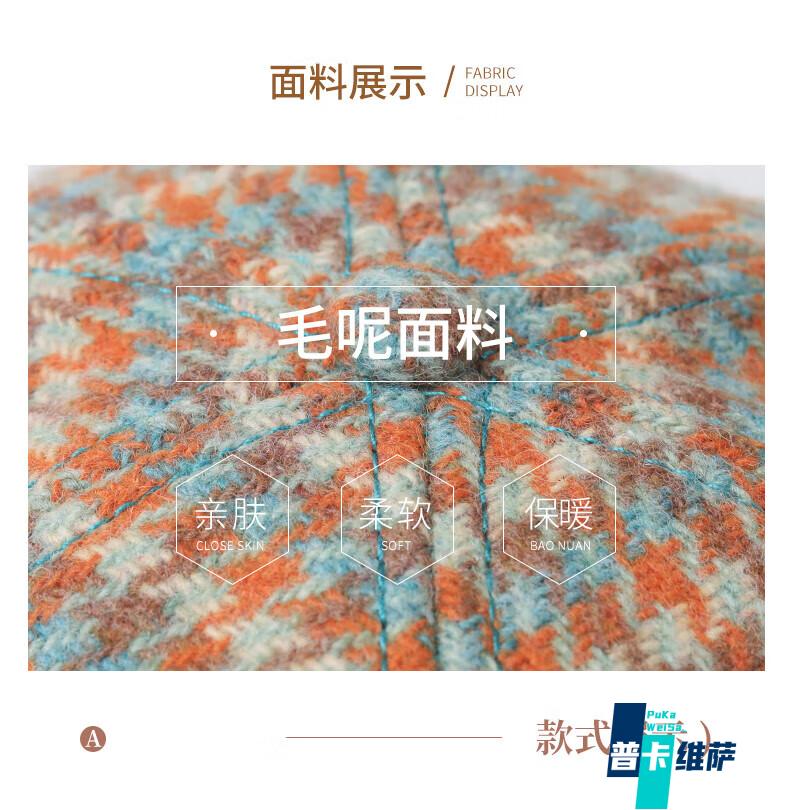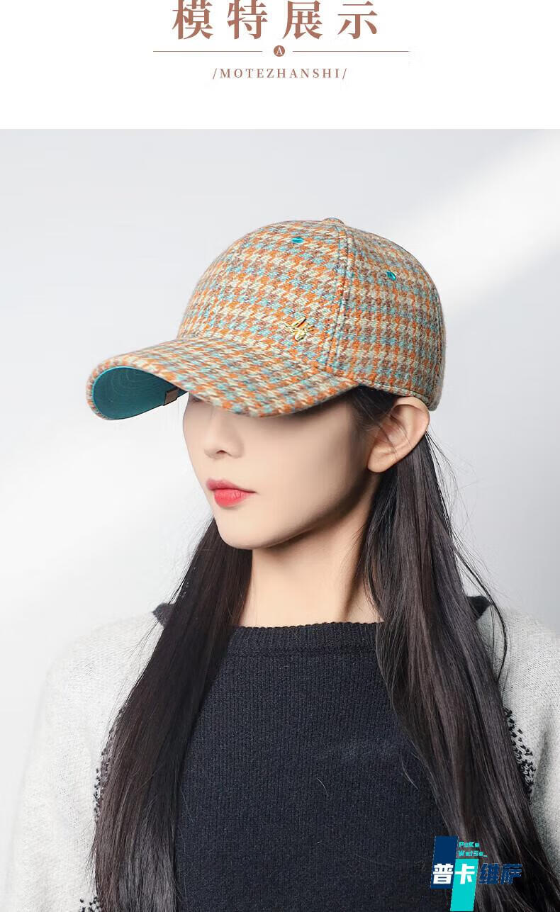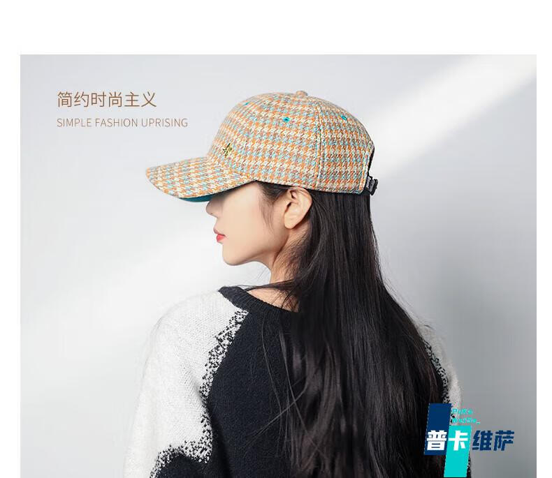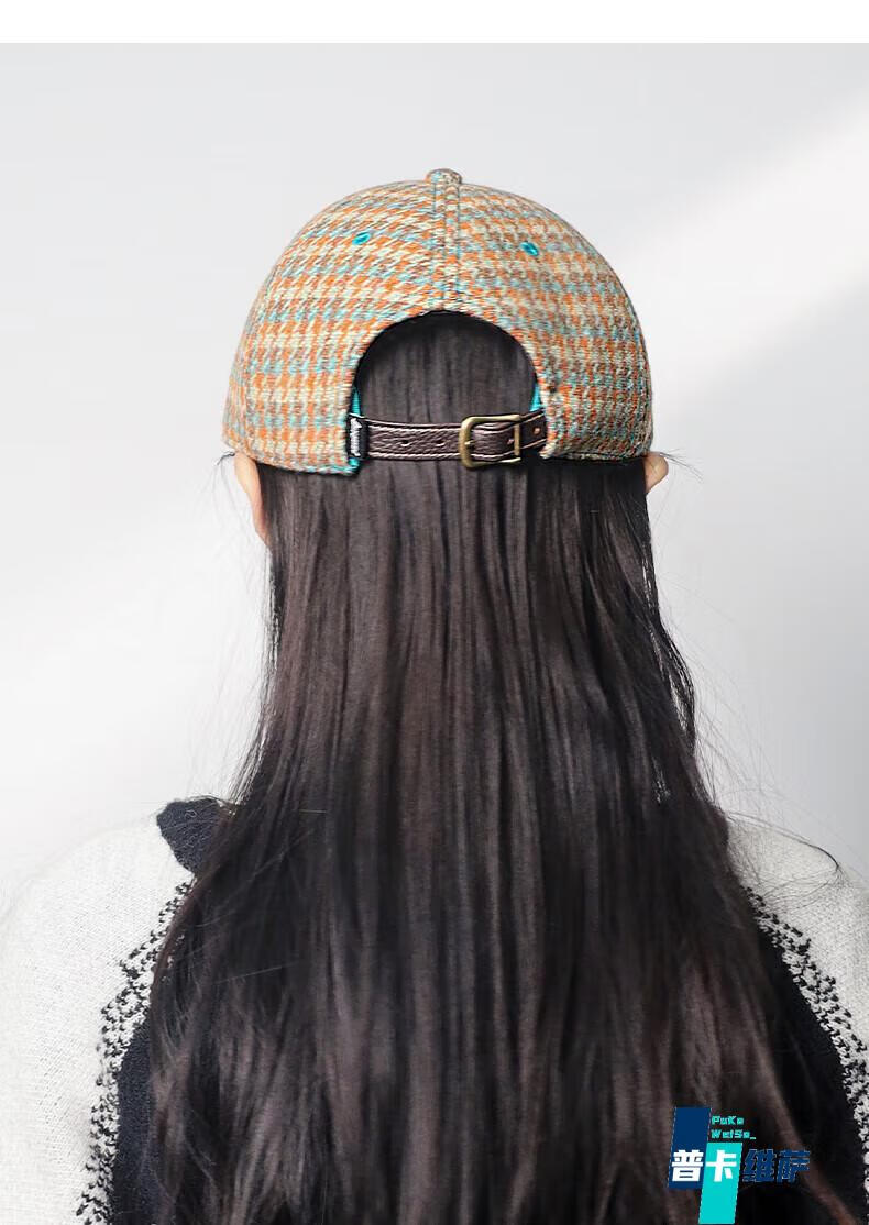 Pukaweisa brand fashionable houndstooth warm woolen baseball cap women's autumn and winter face-showing small duck cap soft top casual hat blue and orange check one size adjustable