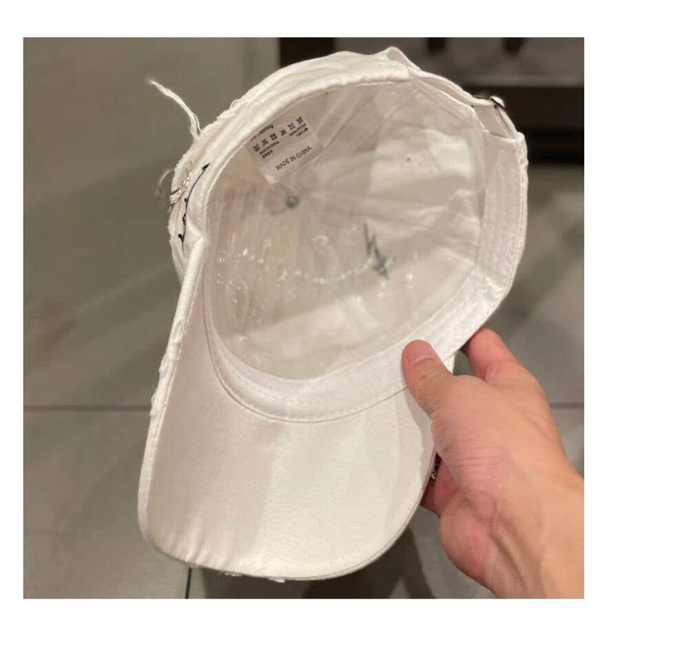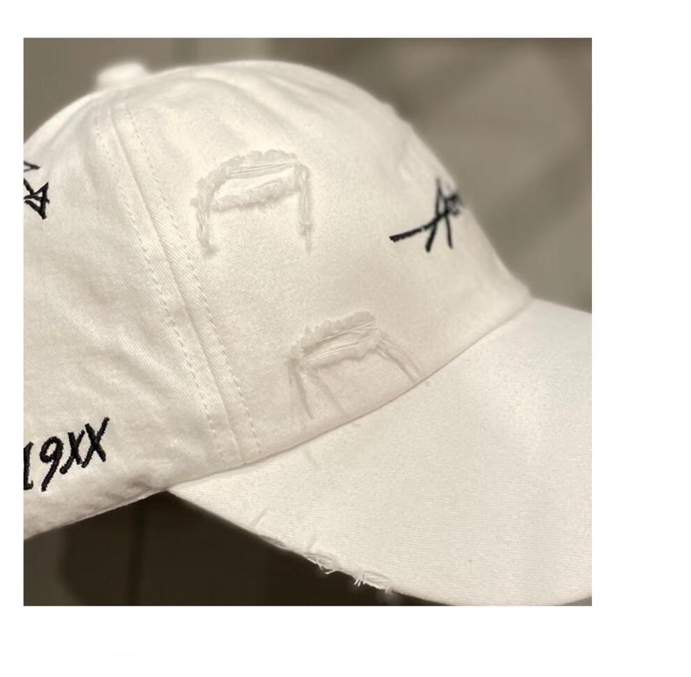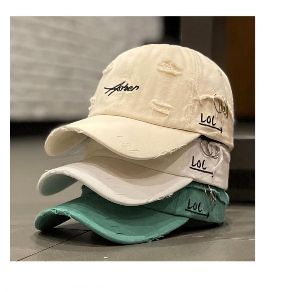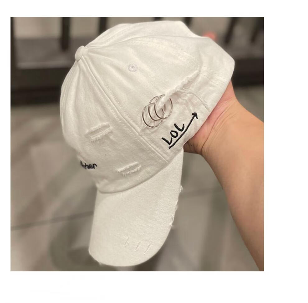 Shijanu Korean version ins retro ripped peaked cap for women spring and autumn fashion sun protection baseball cap trendy white_three circles on the side of the peaked cap (54-58cm) adjustable