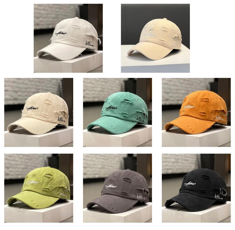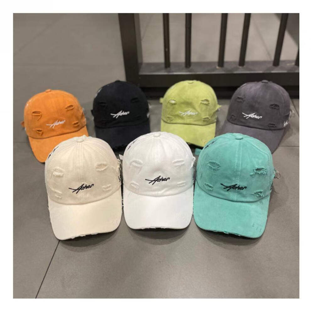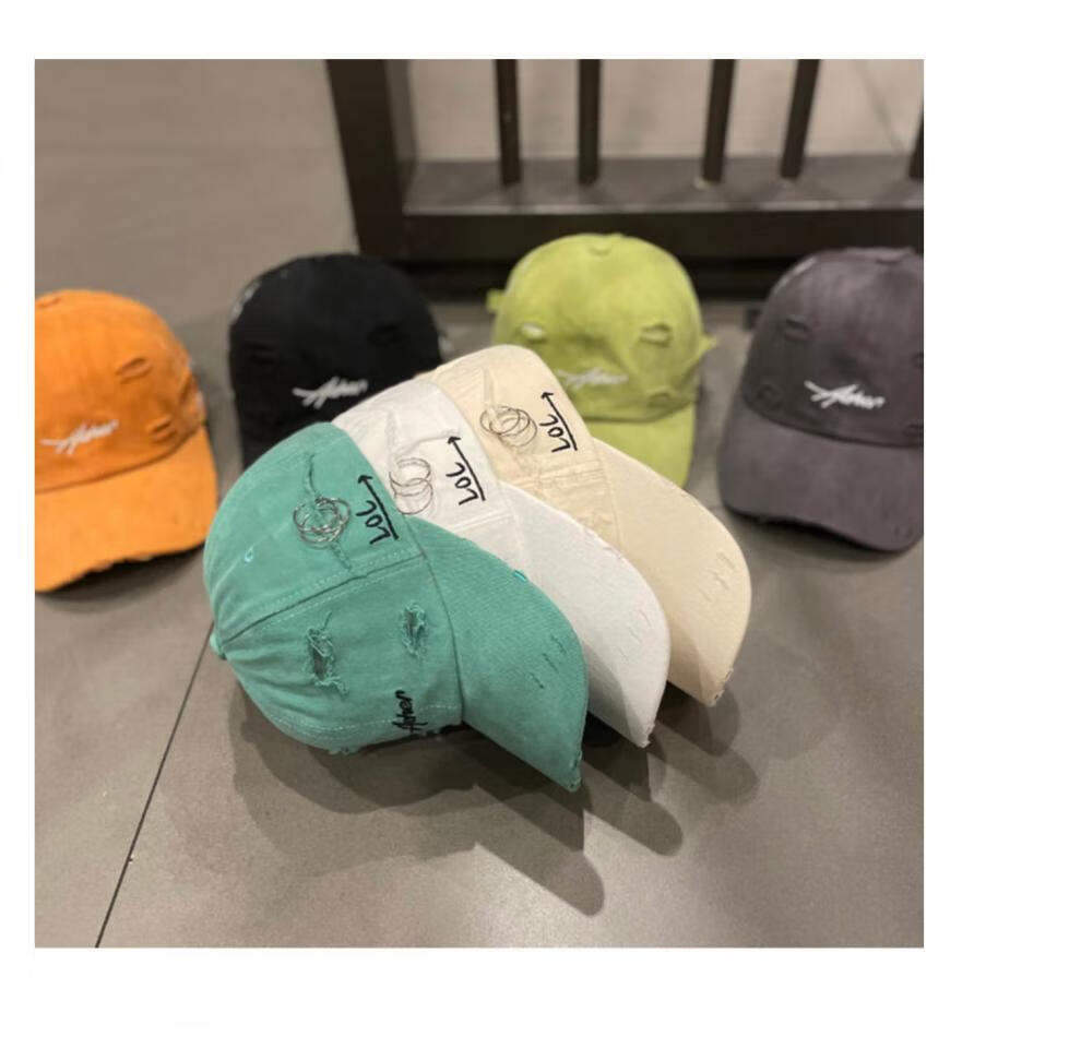 Shijanu Korean version ins retro ripped peaked cap for women spring and autumn fashion sun protection baseball cap trendy white_three circles on the side of the peaked cap (54-58cm) adjustable