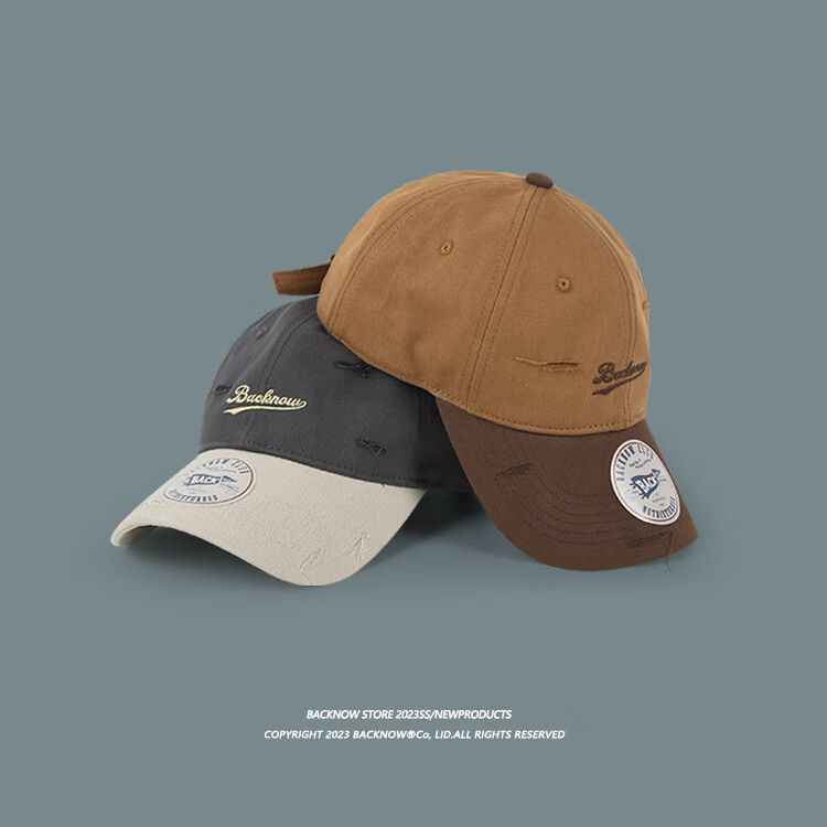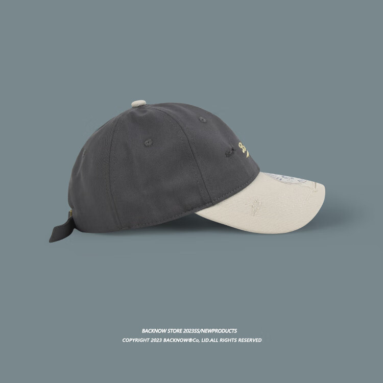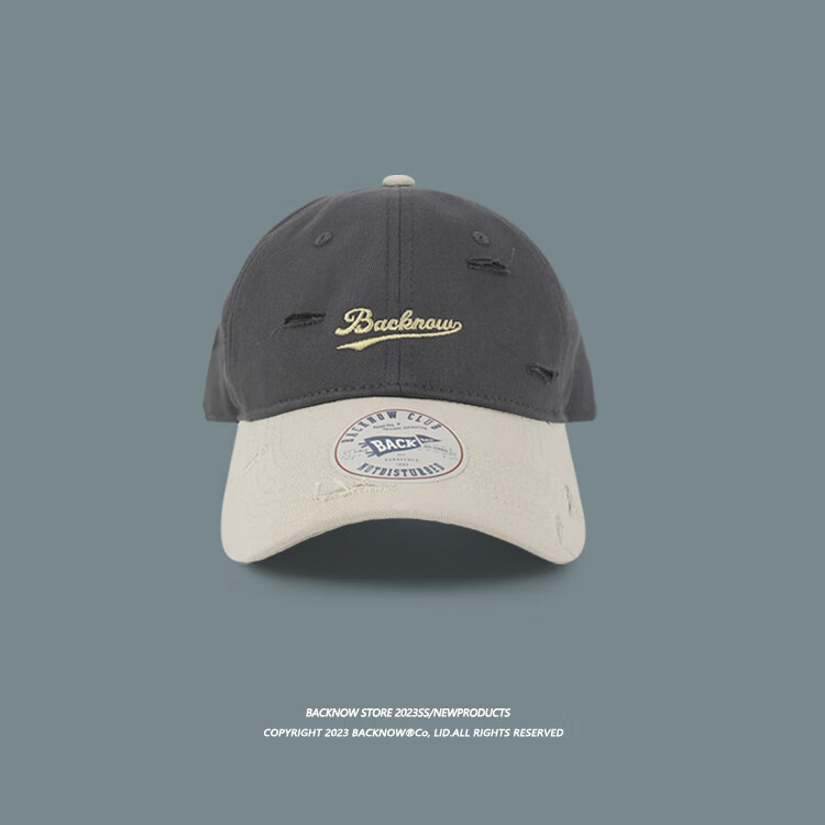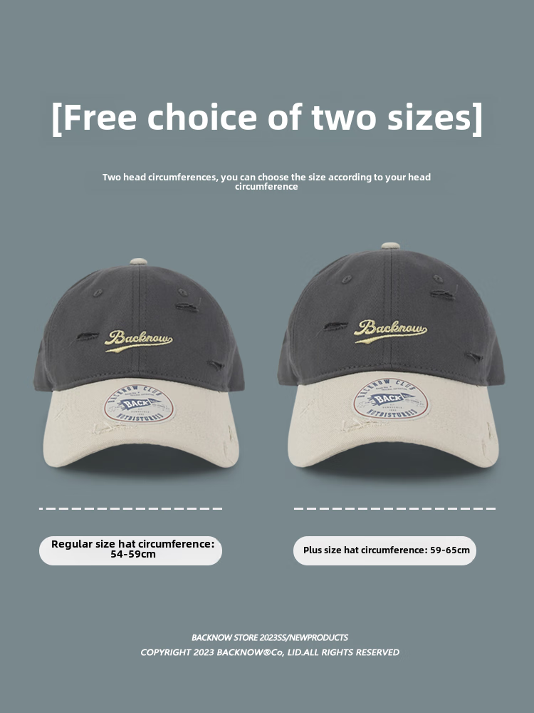 Big head circumference hat trendy brand niche design ripped baseball cap men's personality fashion ins Korean style peaked cap women's gray regular size (54-59cm)