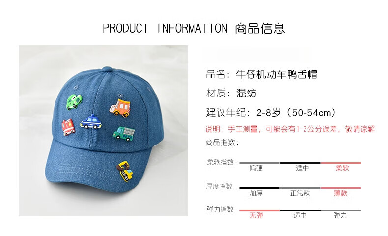 Disney children's hat spring and autumn baseball cap baby outdoor summer sun protection hat boys and girls fashionable baseball cap light blue (denim motorcycle peaked cap) 2-8 years old (50-54cm) x (adjustable hat girth)