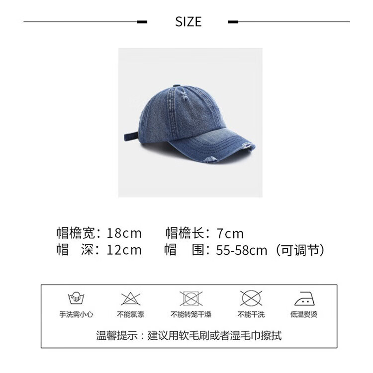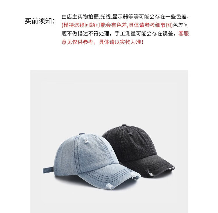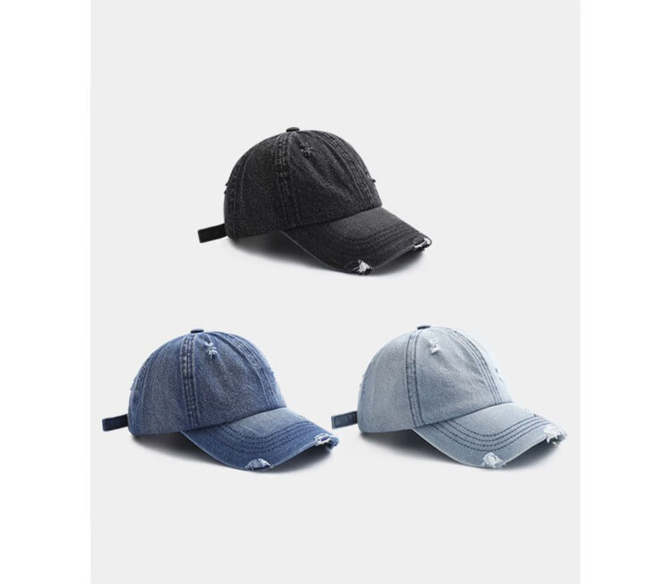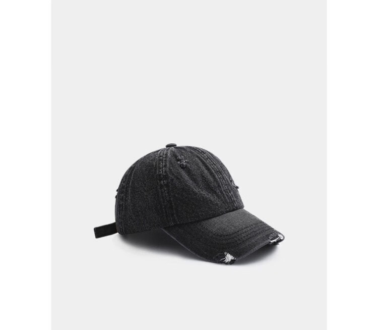 Distressed Soft Top Baseball Cap for Women Summer Vintage Casual Fashion Versatile Peaked Cap Black (55-58cm)