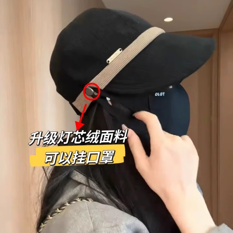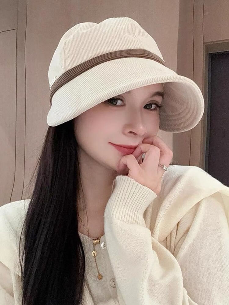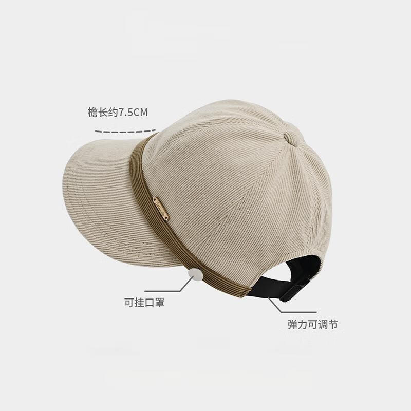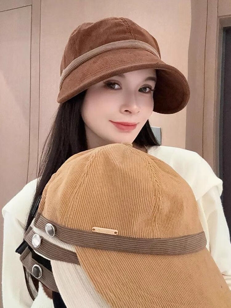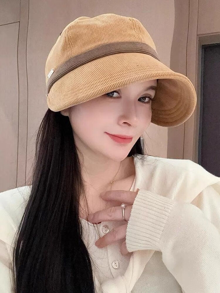 Cata Beast Duck Hat Women's Fashionable and Versatile Spring and Autumn Retro Hepburn Style Corduroy Shopping and Outing Baseball Cap Khaki One Size