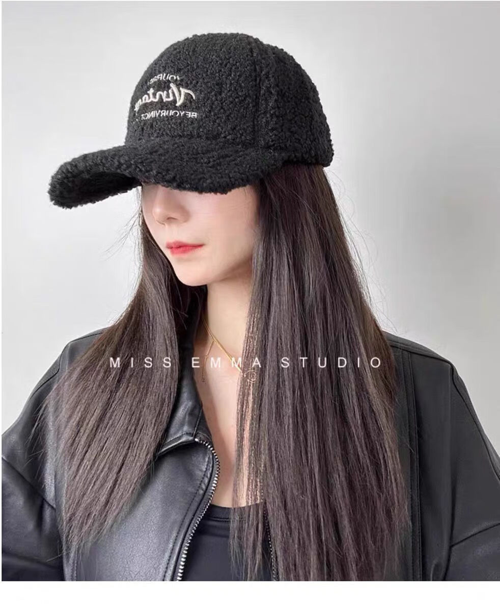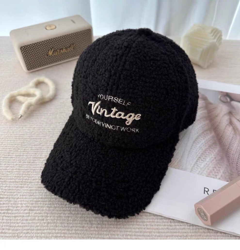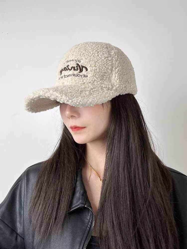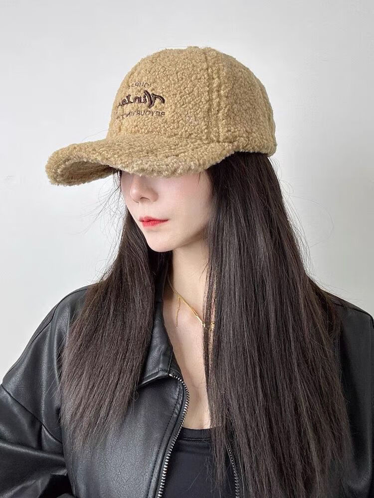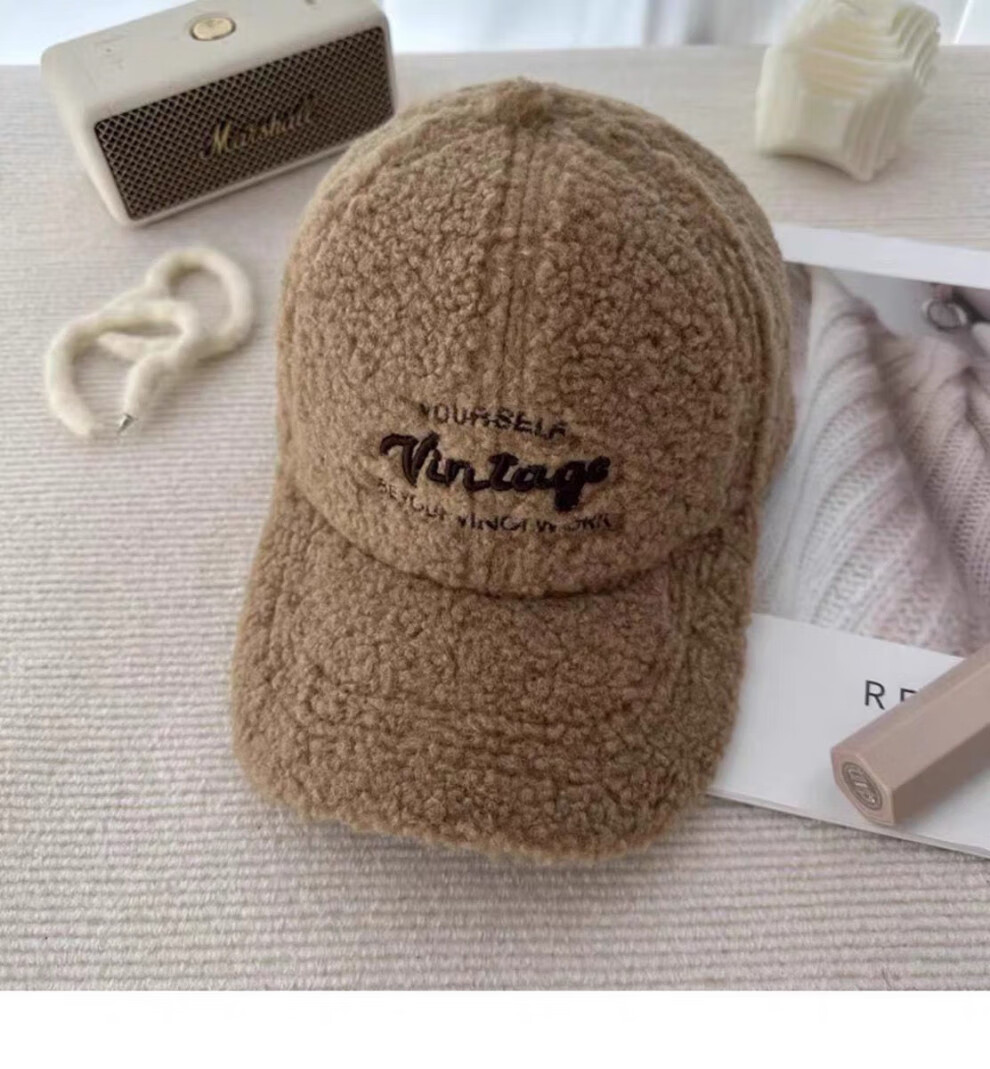 Yinqi Starling Lamb Wool Baseball Cap Women's 2025 New Autumn and Winter Fashionable Warm Thick Peaked Cap Showing Face Small Plush Hat Brown One Size