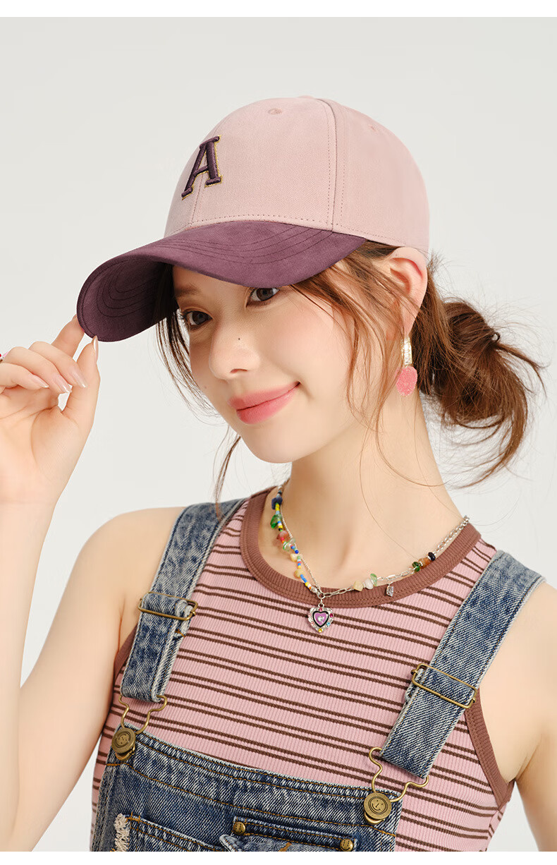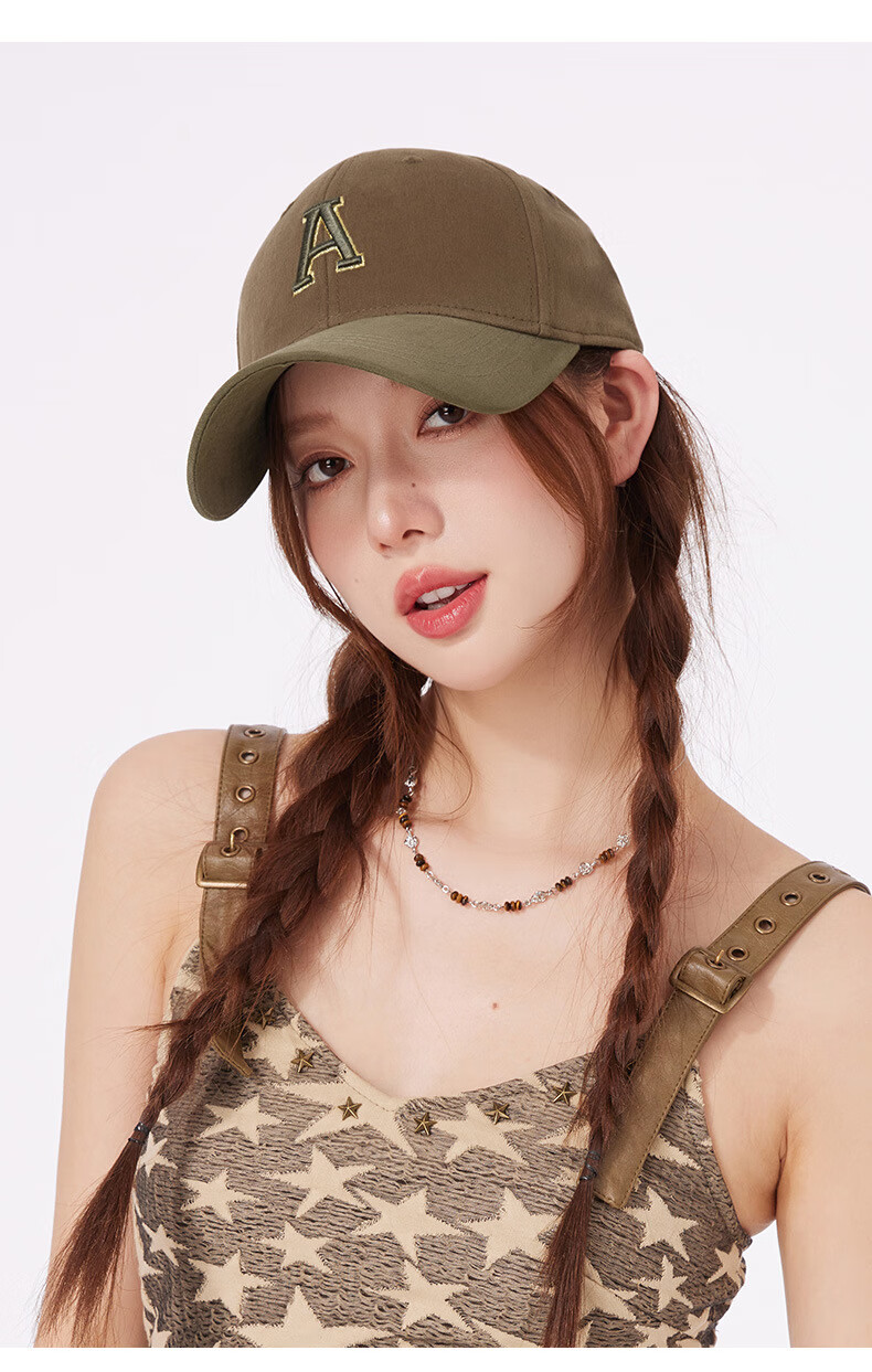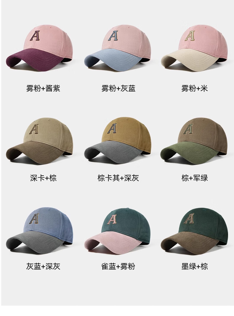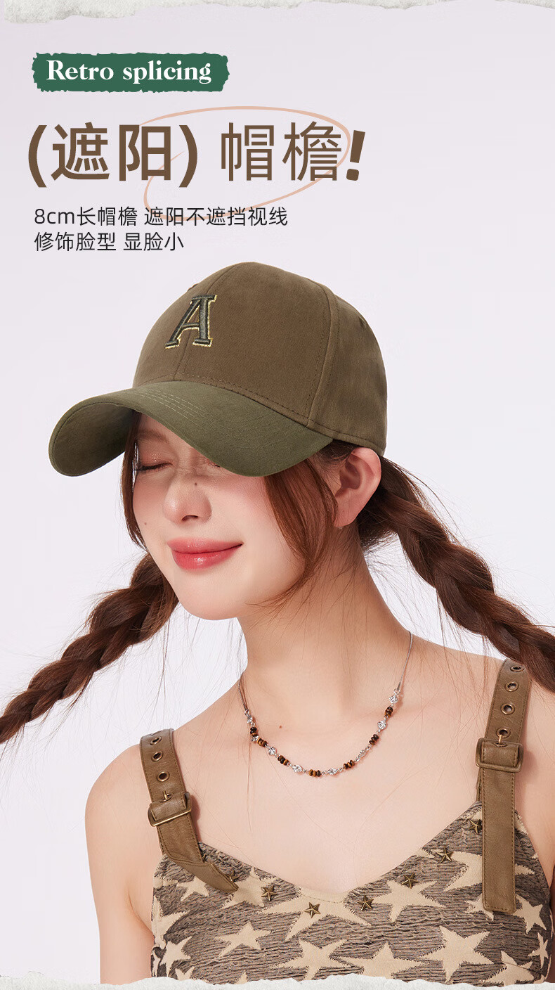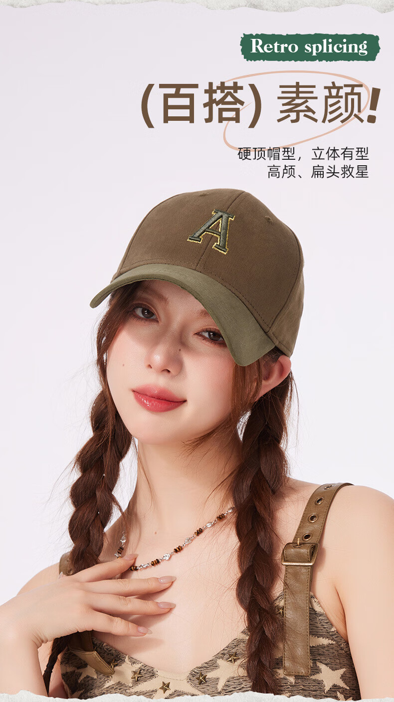 Spring and summer new style baseball cap fashionable contrasting color face small peaked cap for women pure cotton hard top sun hat outdoor casual hat brown khaki + dark gray M (57-59cm
