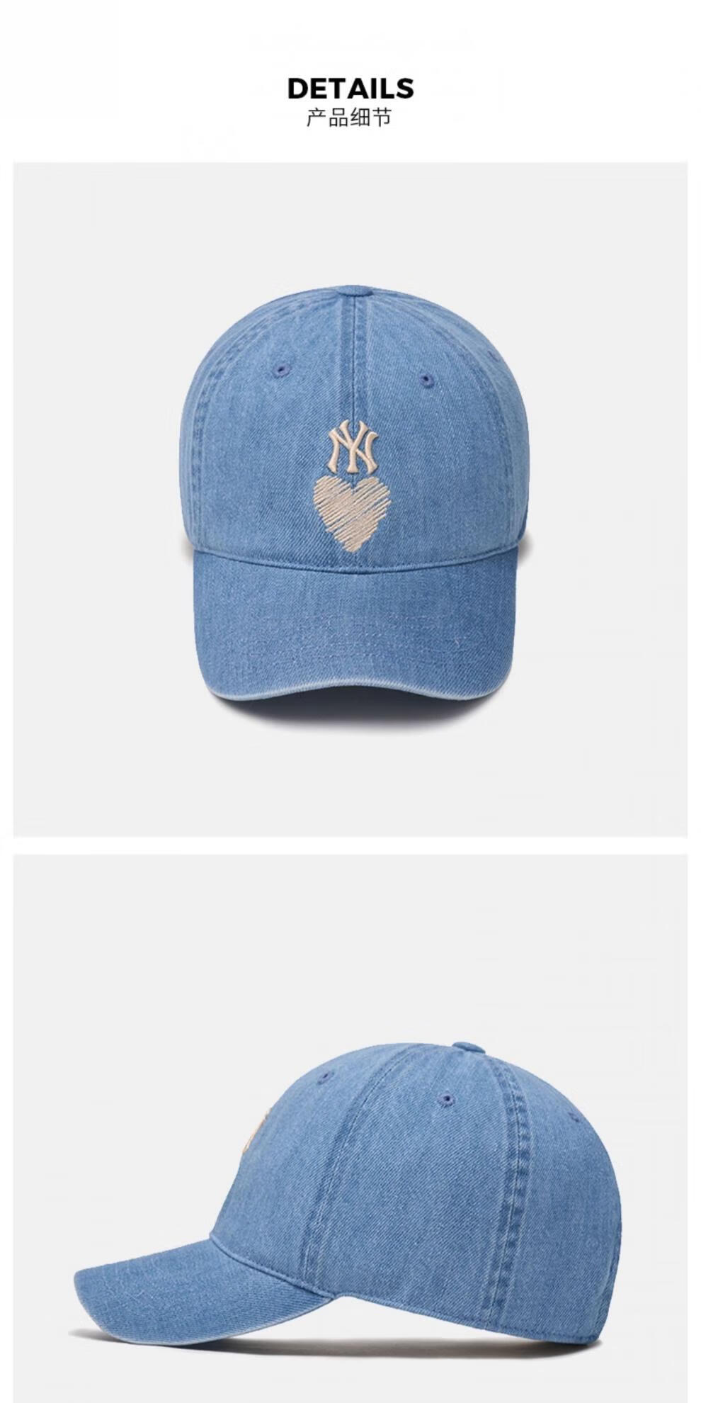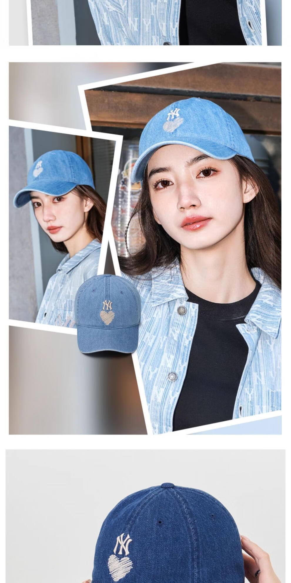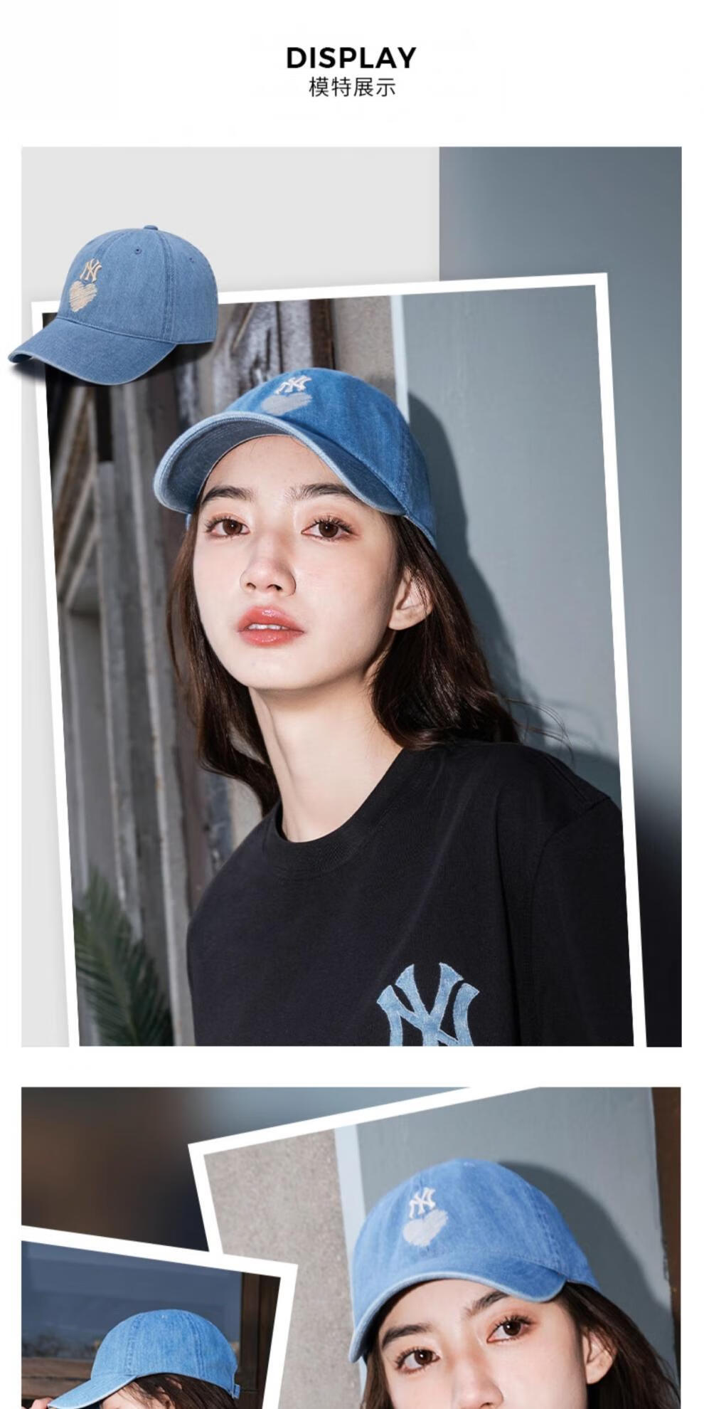 MLB men's and women's couple baseball caps, fashionable and versatile, loving denim soft-top sun hat CPH02 New York Yankees/Indigo Blue, One Size