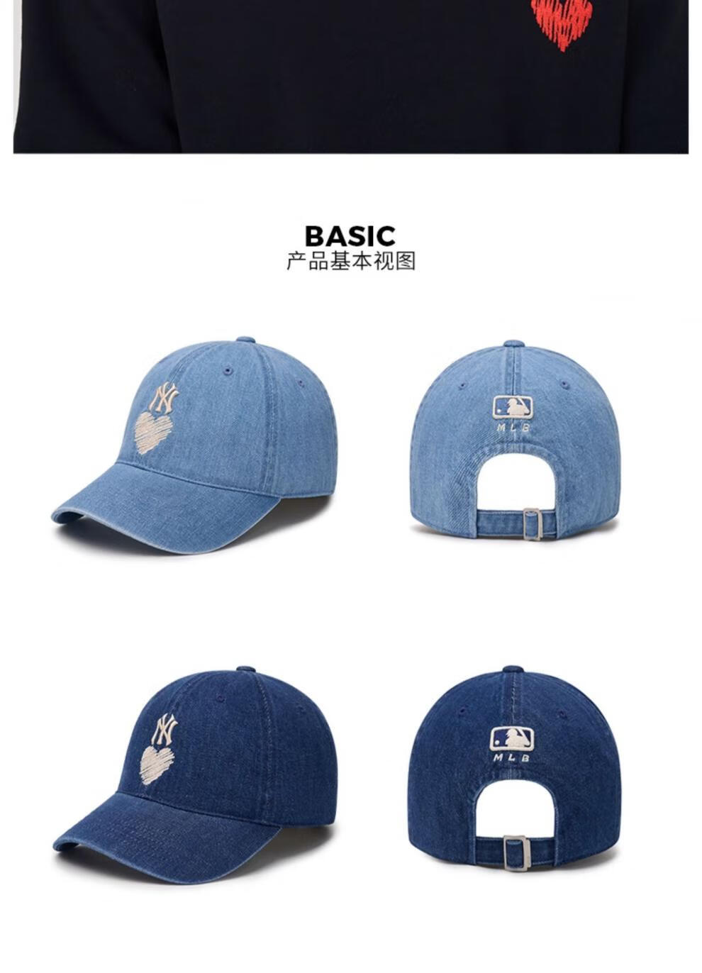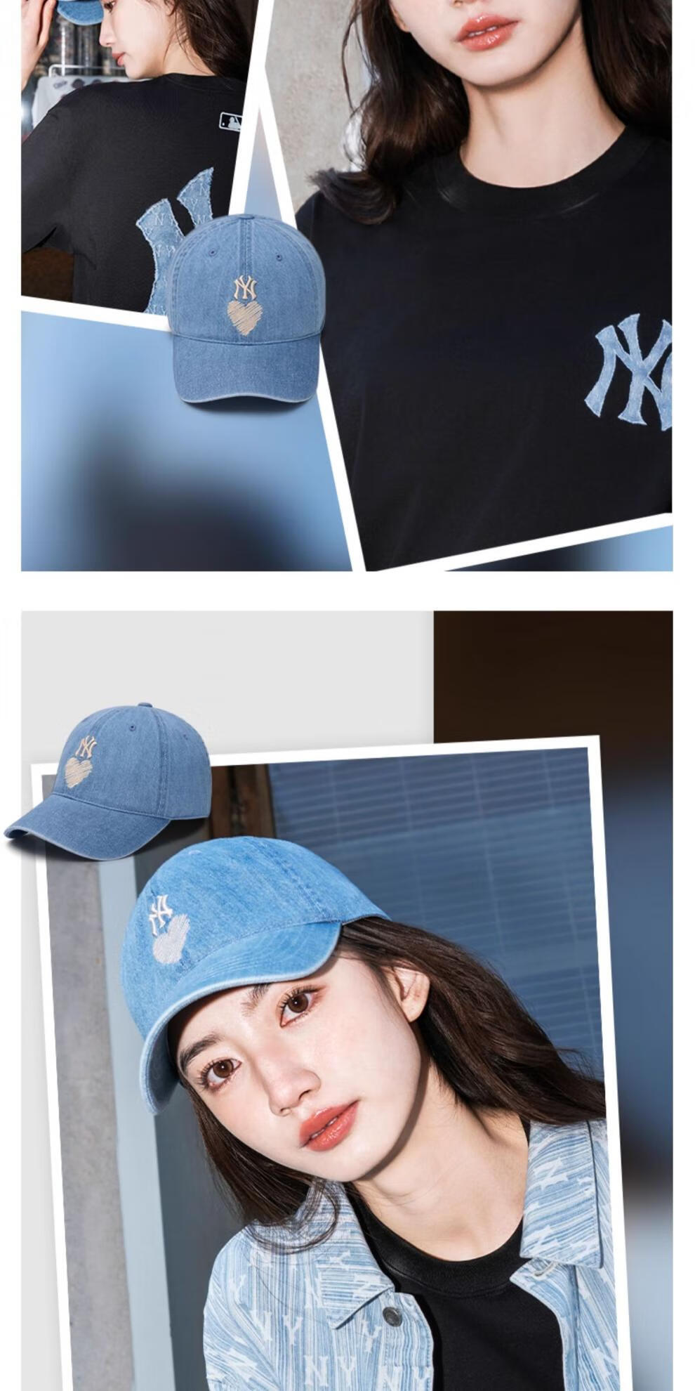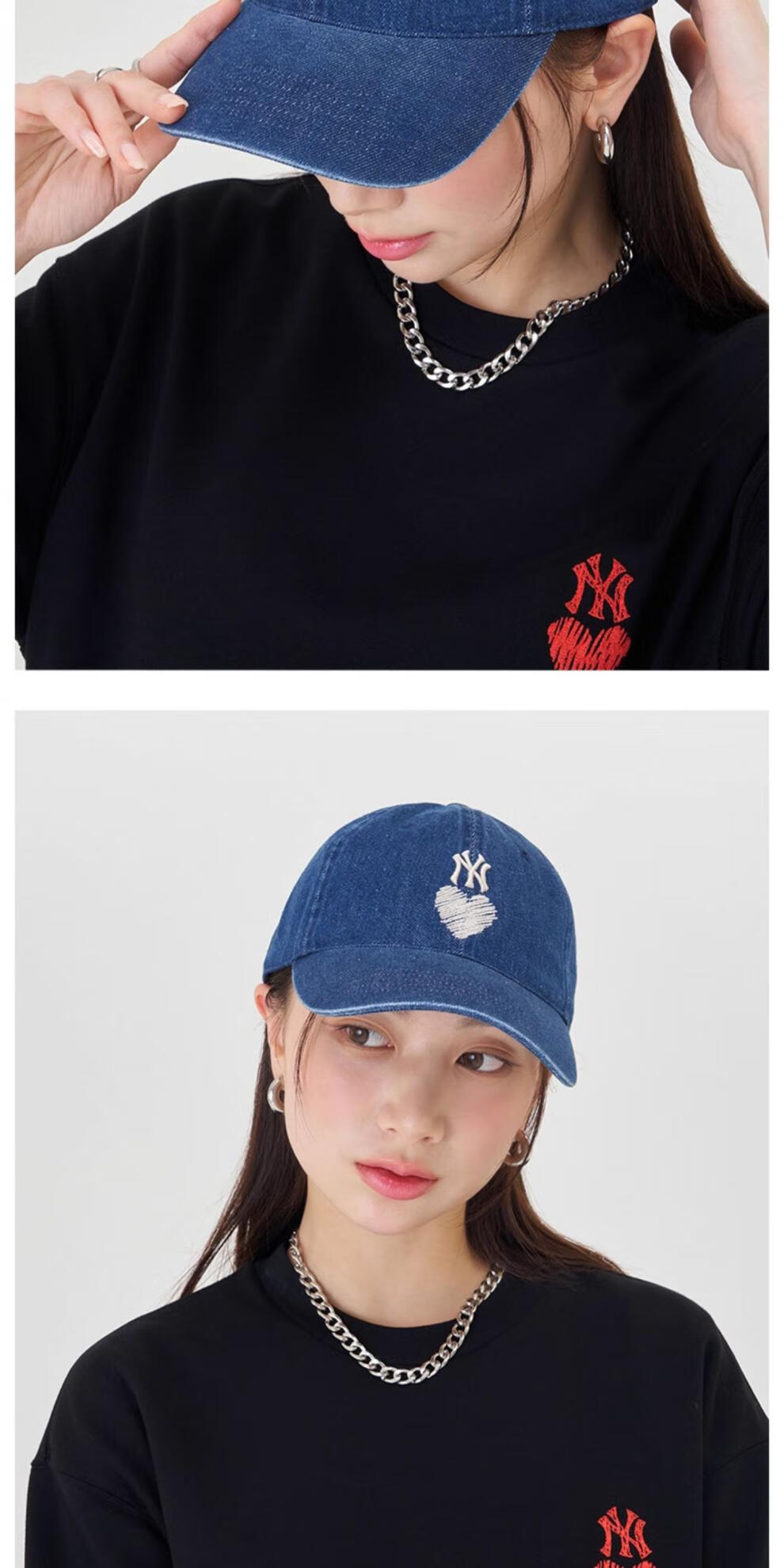 MLB men's and women's couple baseball caps, fashionable and versatile, loving denim soft-top sun hat CPH02 New York Yankees/Indigo Blue, One Size