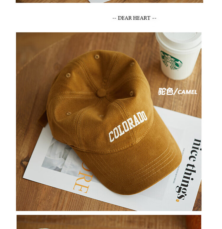 Four seasons sun protection peaked hat for men and women, deepened and widened to show face, small soft top hat, Korean style trendy baseball cap, khaki color, one size fits all (-cm), adjustable head circumference