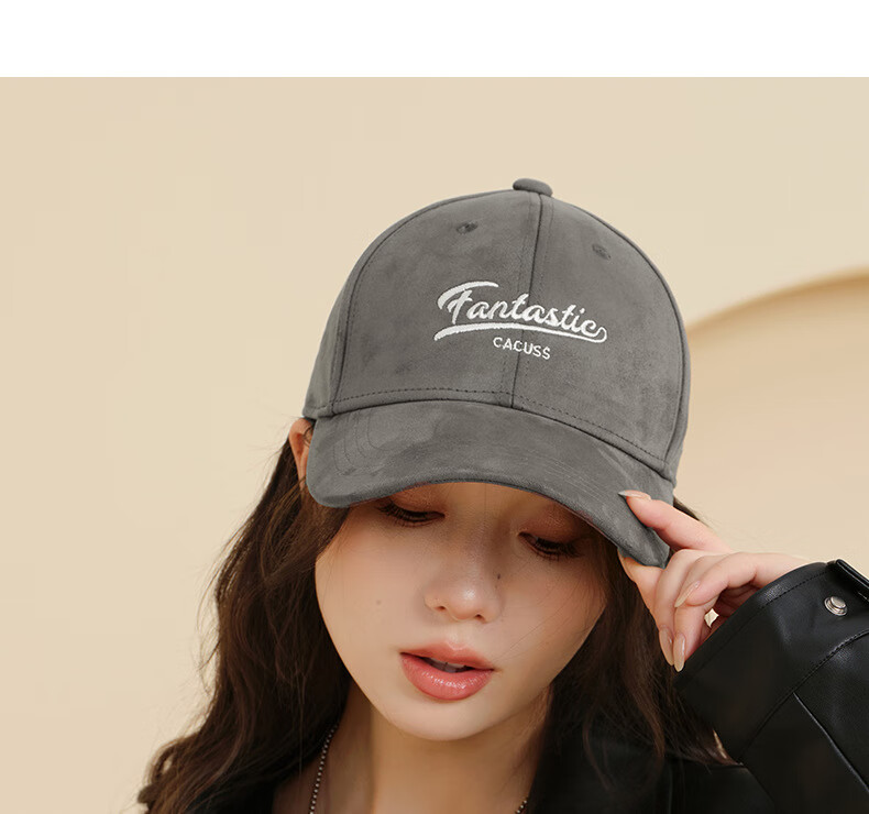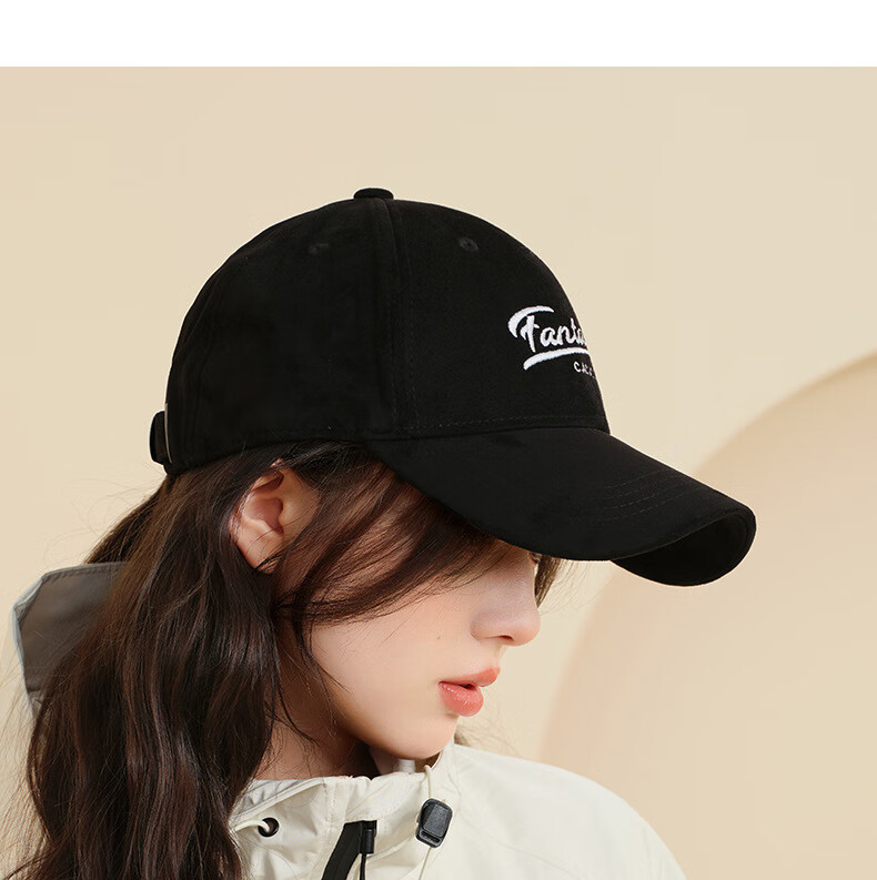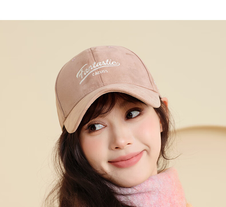 Autumn and winter hard-top baseball cap for women, Korean style embroidery, fashionable suede cap, large head circumference, face-showing small hat, pink M (57-59cm