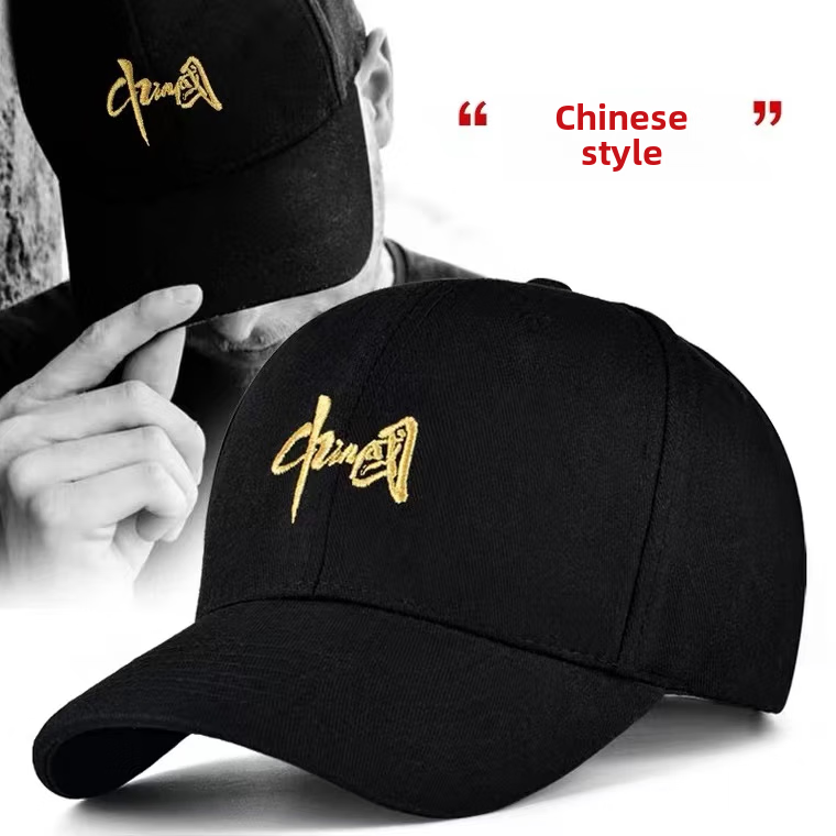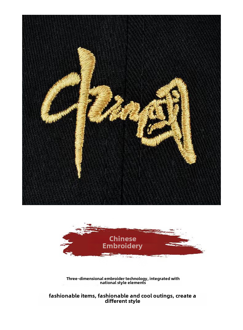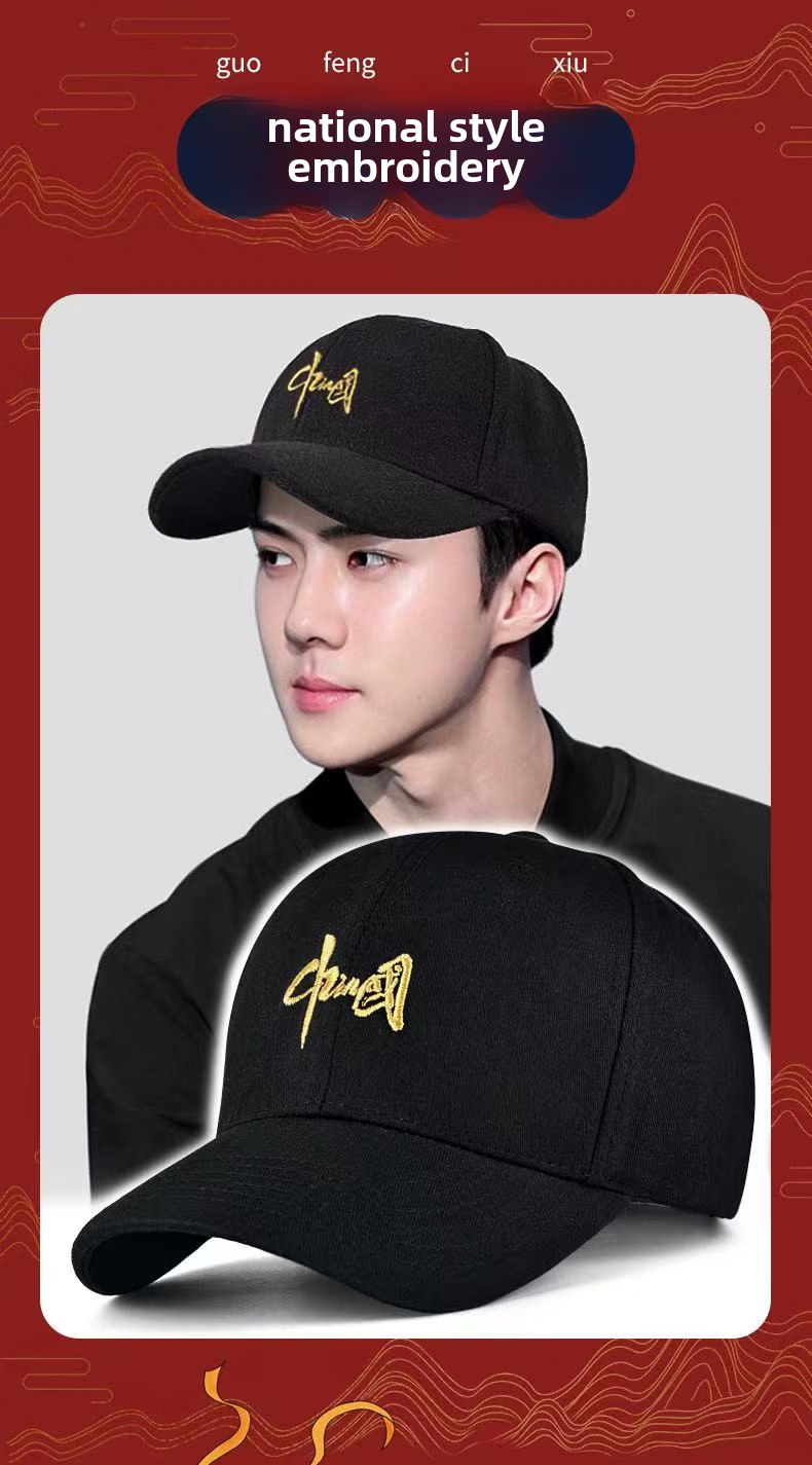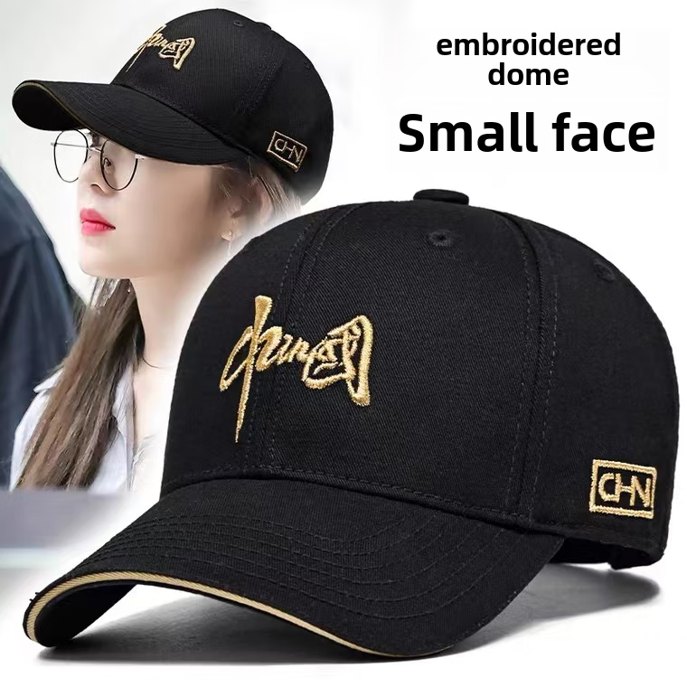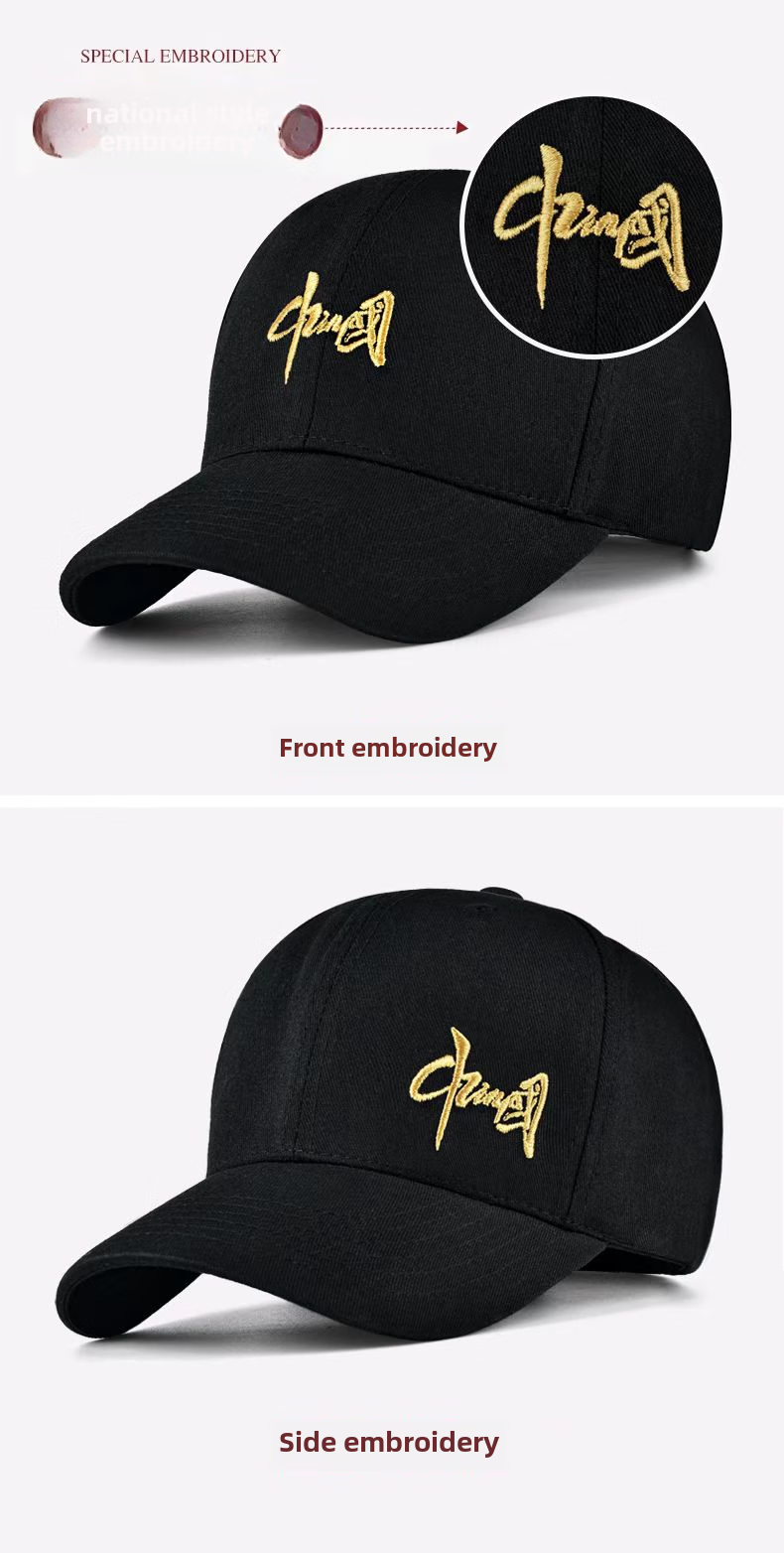 Hats for men with wide brim and large circumference, nationally popular fashionable embroidered baseball caps for women, easy to match with sunshade and sunshade, national standard embroidery - platinum characters, small size, adjustable hat circumference 55-59 cm