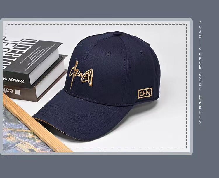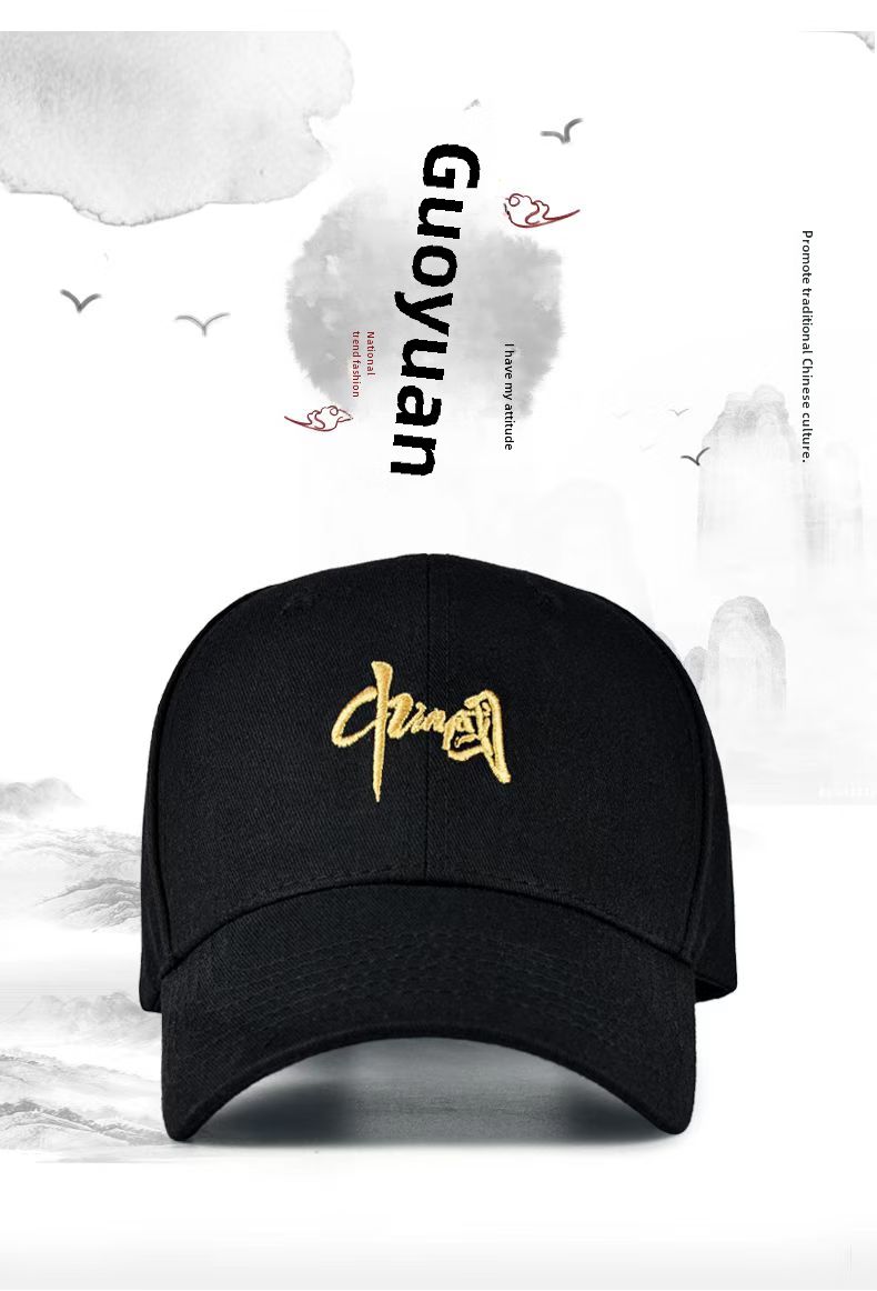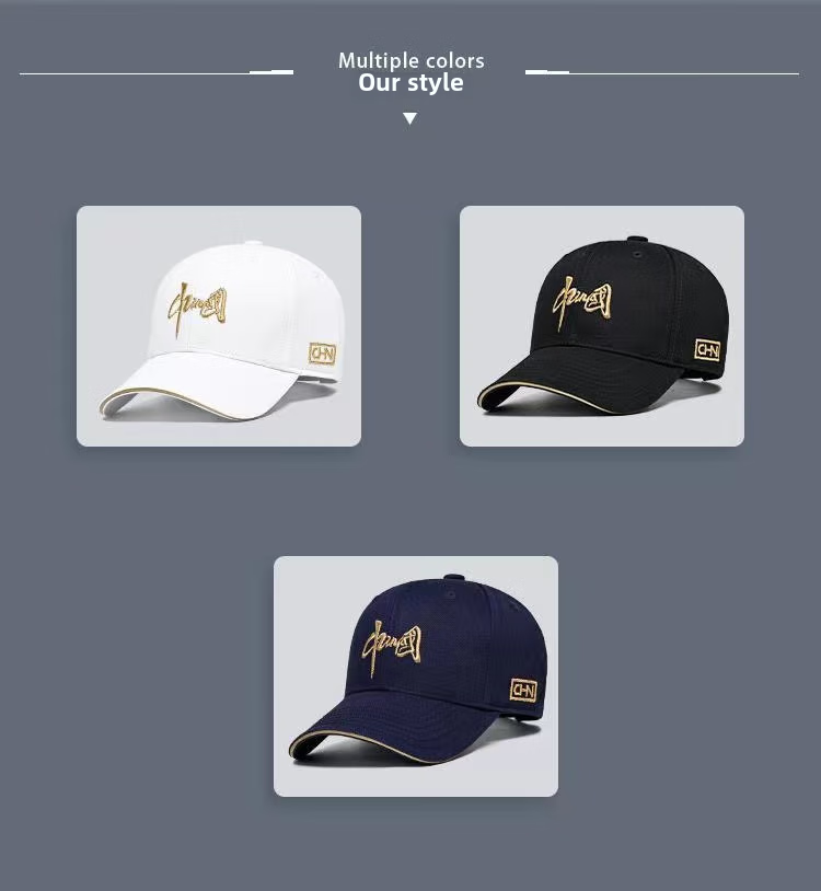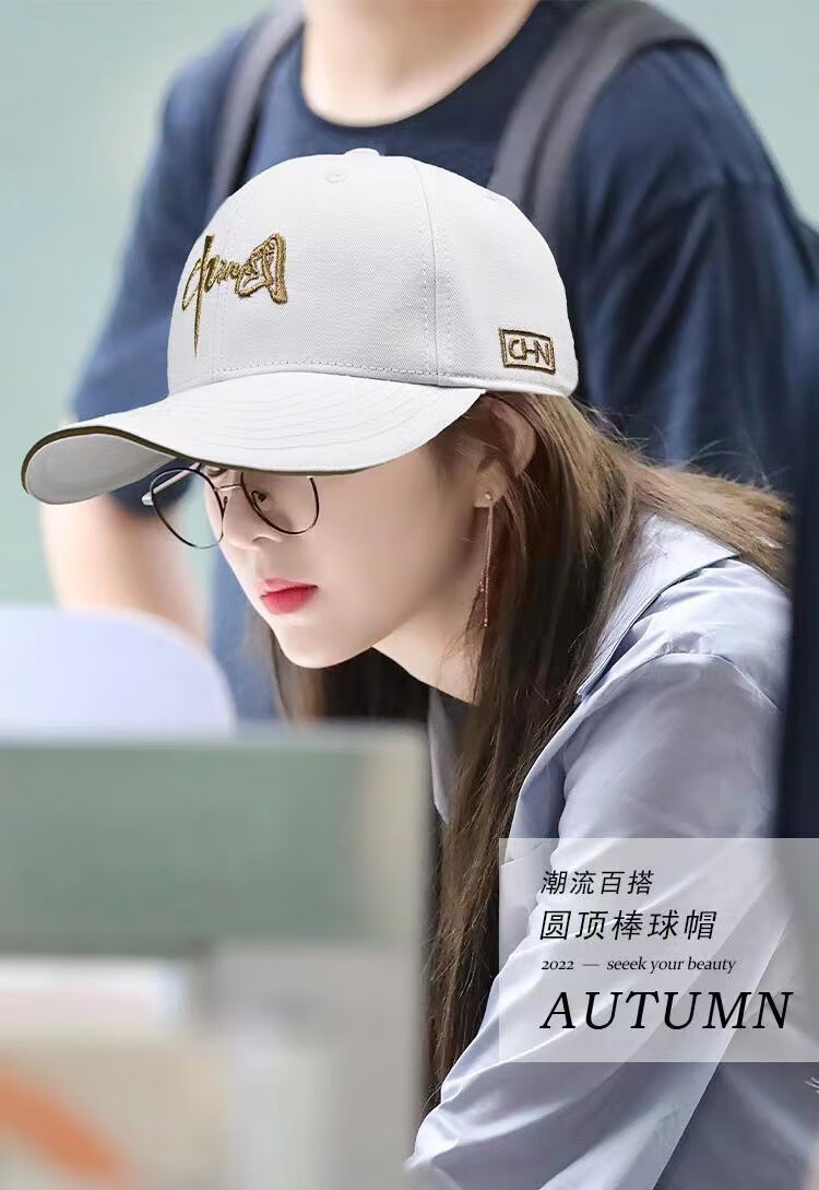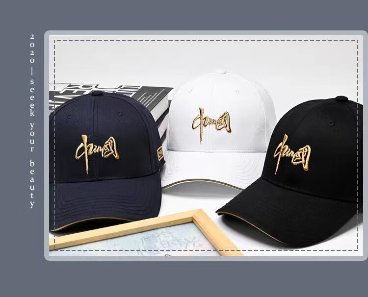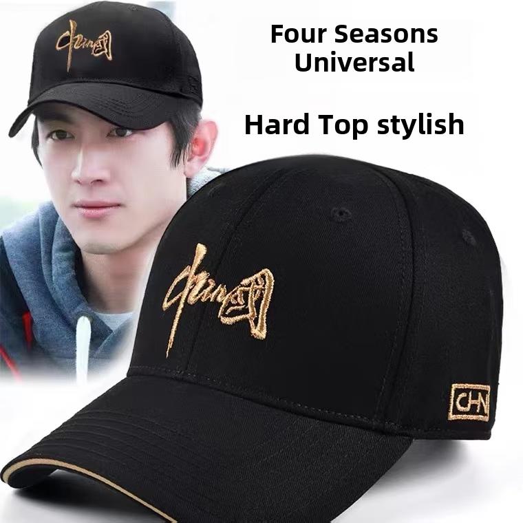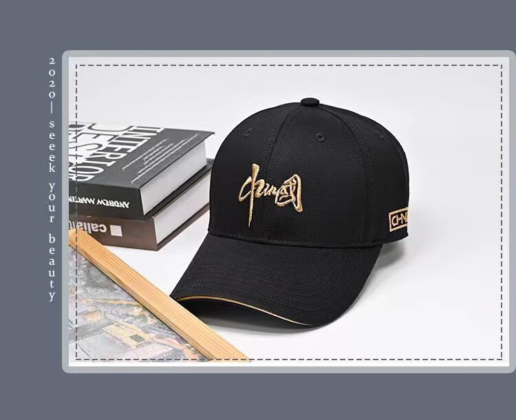 Hats for men with wide brim and large circumference, nationally popular fashionable embroidered baseball caps for women, easy to match with sunshade and sunshade, national standard embroidery - platinum characters, small size, adjustable hat circumference 55-59 cm