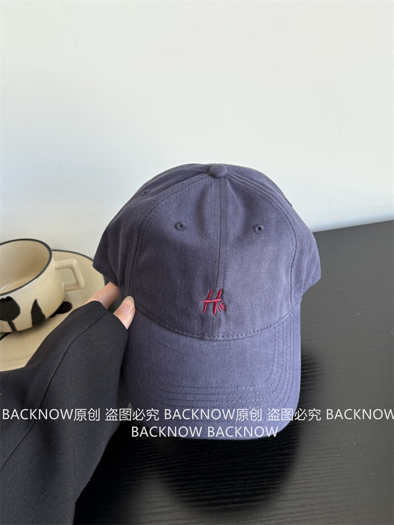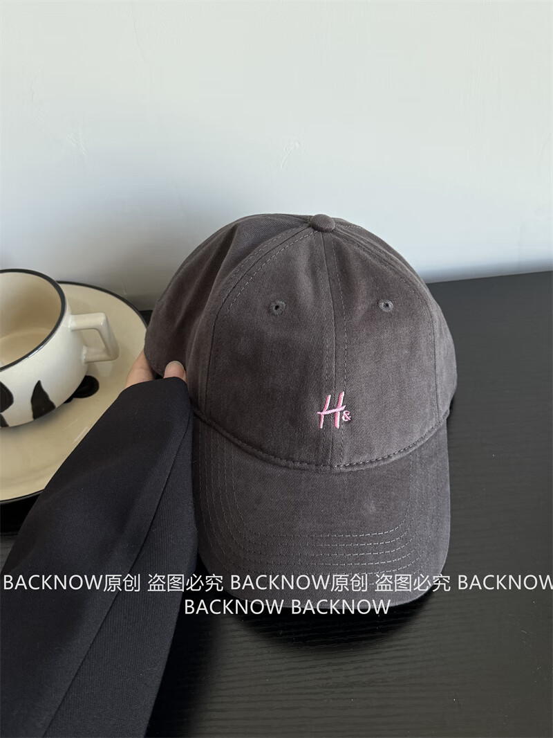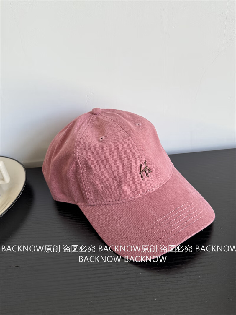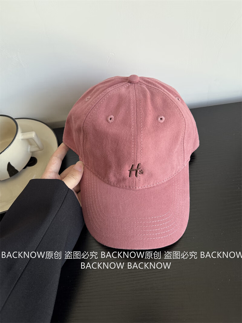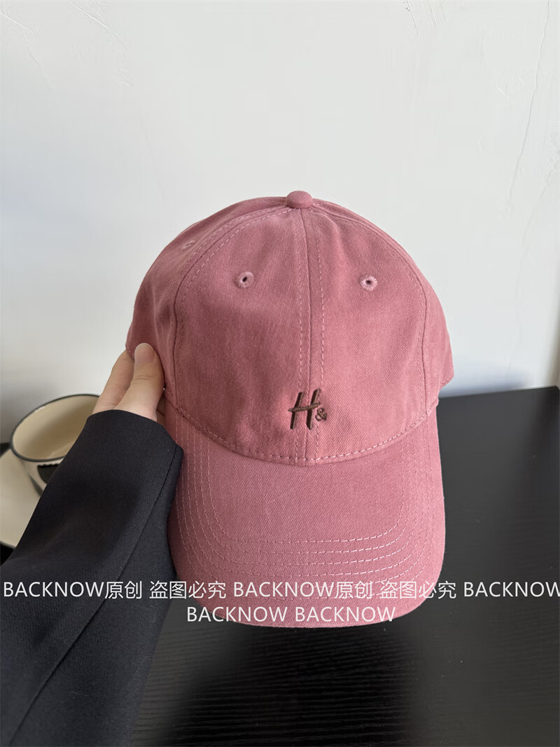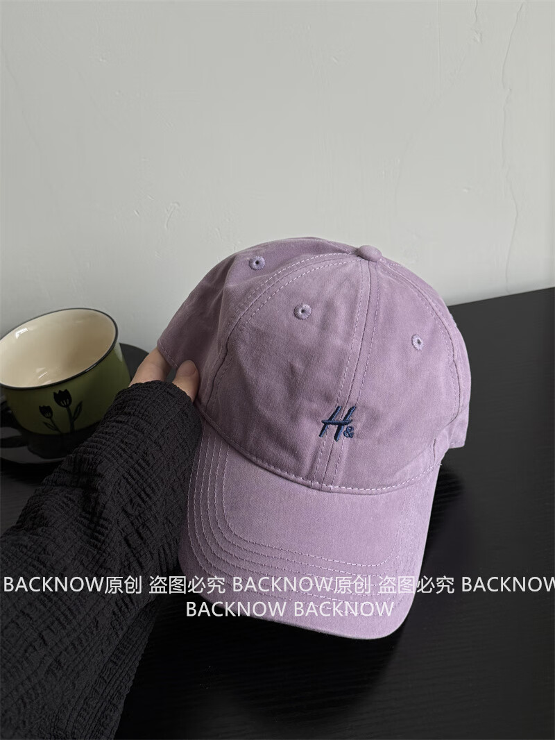 Purple H baseball cap letter girls fashion large head circumference wide brim peaked cap Korean style casual hat for men raspberry pink regular size (54-59cm)