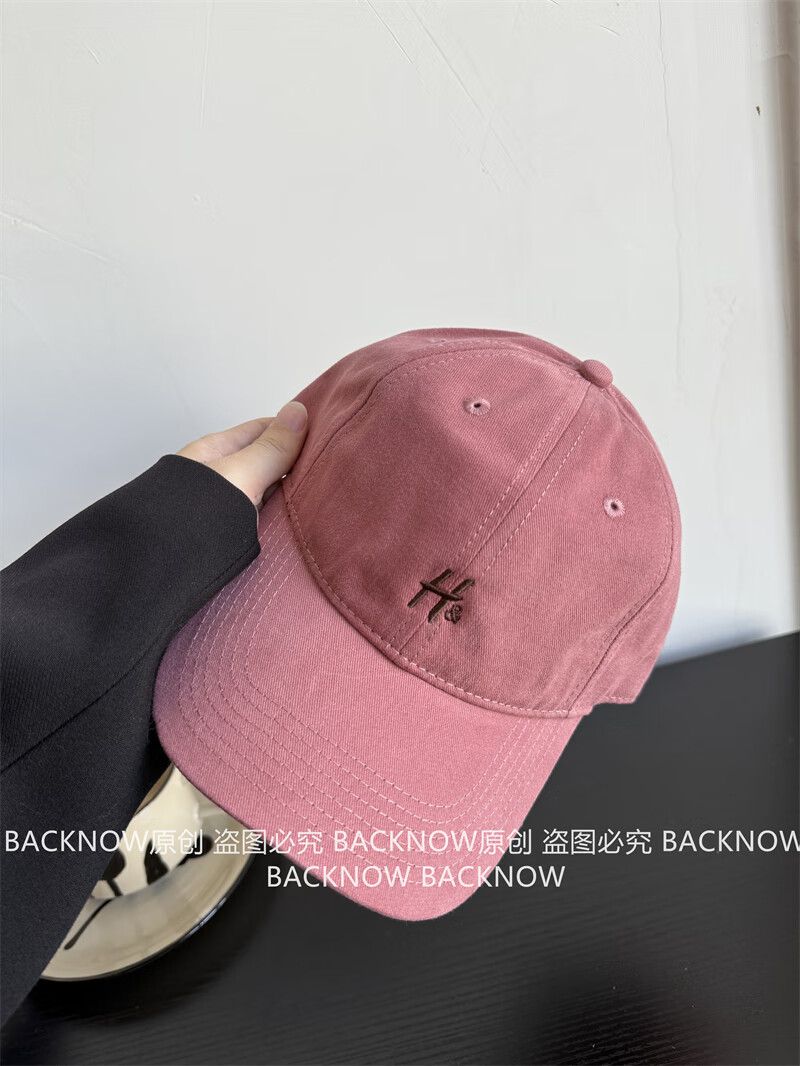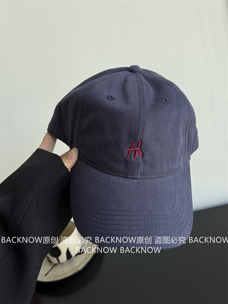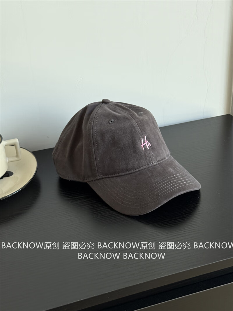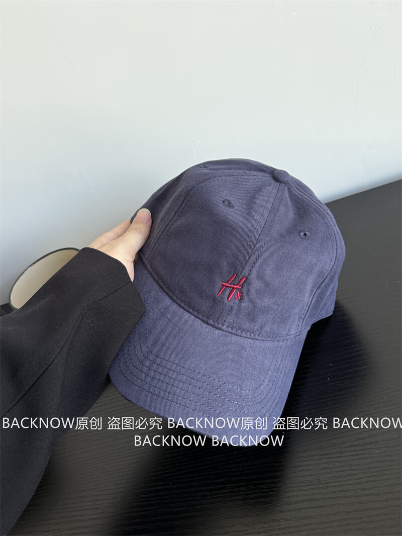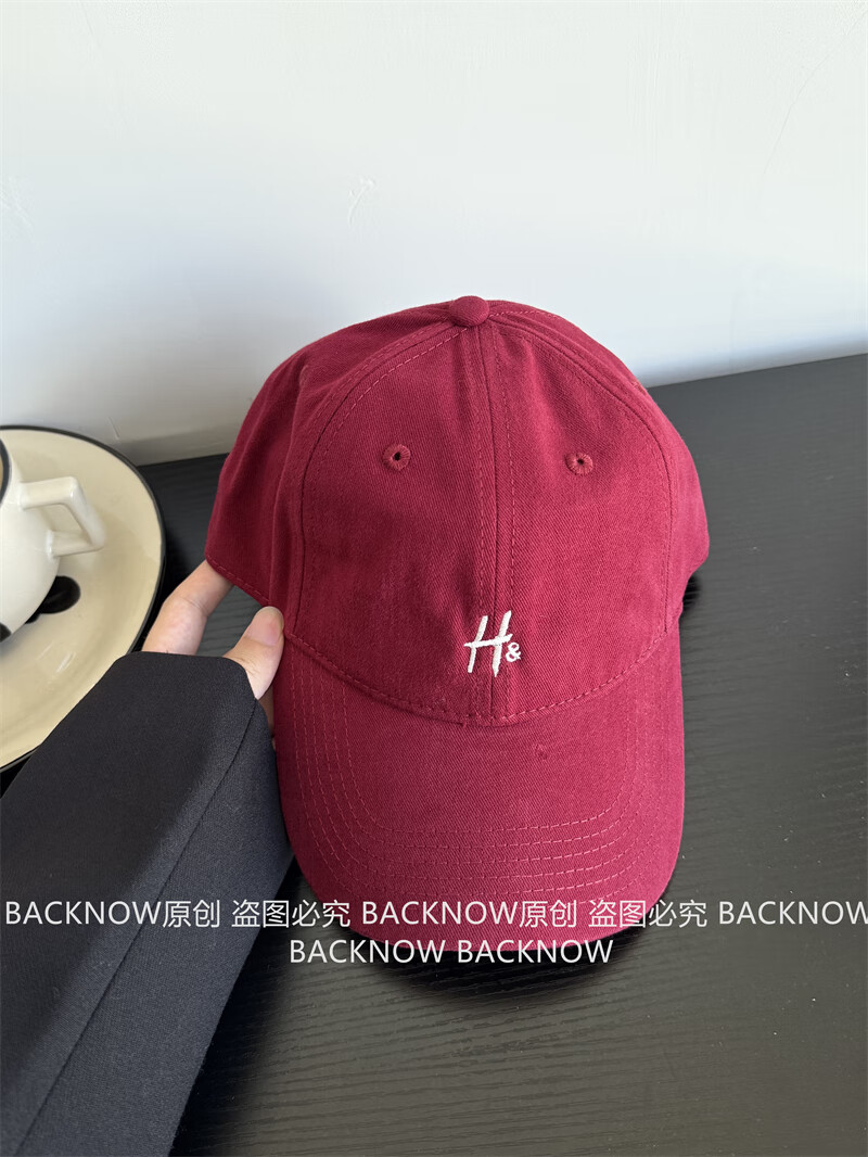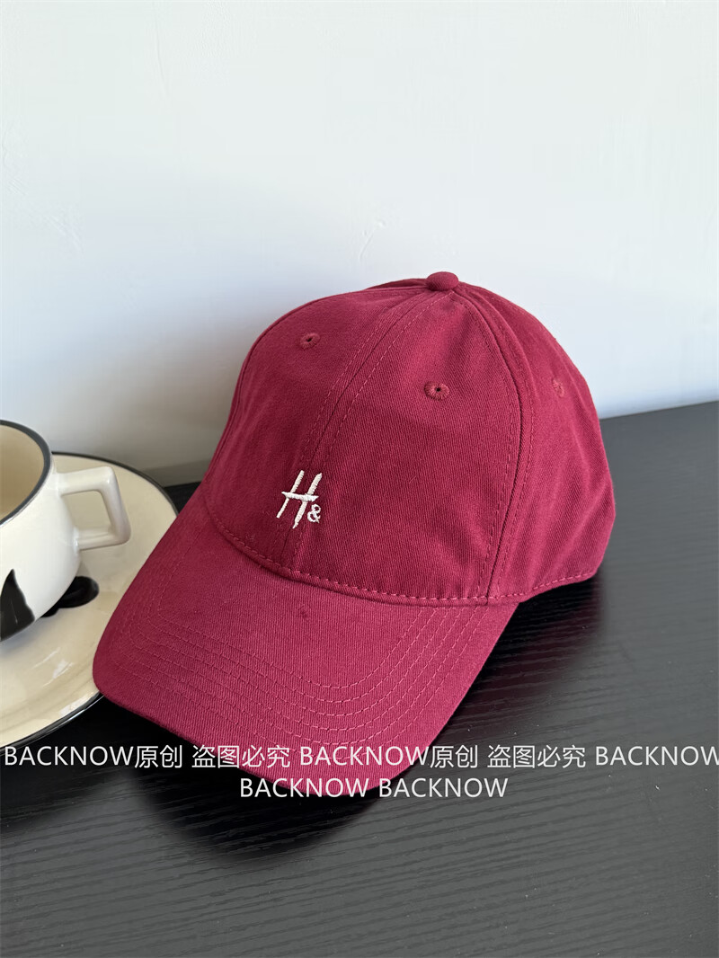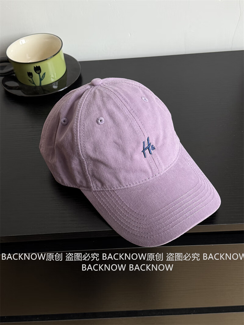 Purple H baseball cap letter girls fashion large head circumference wide brim peaked cap Korean style casual hat for men raspberry pink regular size (54-59cm)