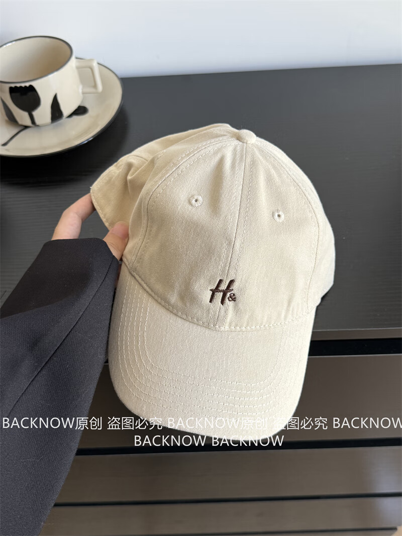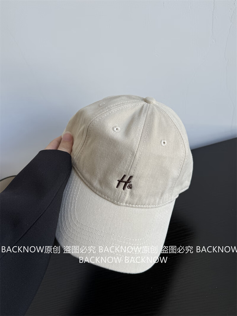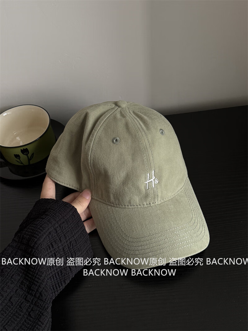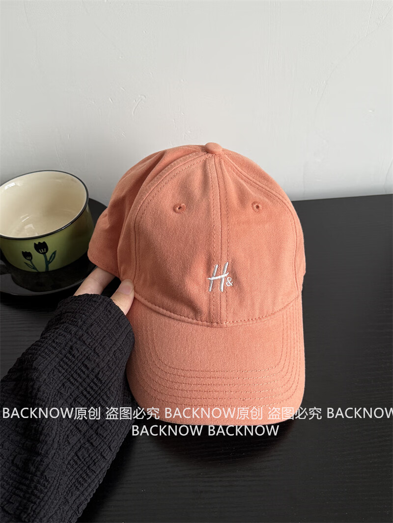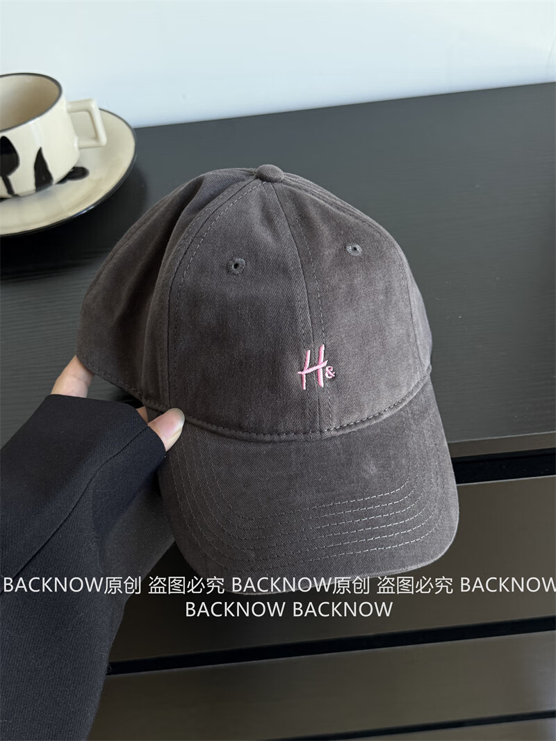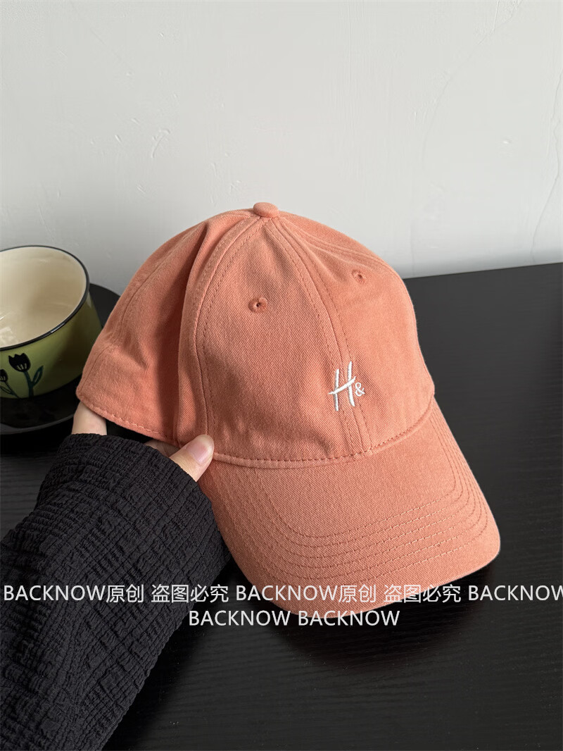 Purple H baseball cap letter girls fashion large head circumference wide brim peaked cap Korean style casual hat for men raspberry pink regular size (54-59cm)